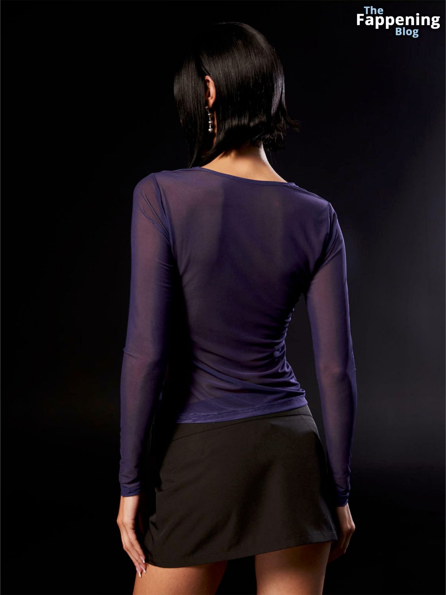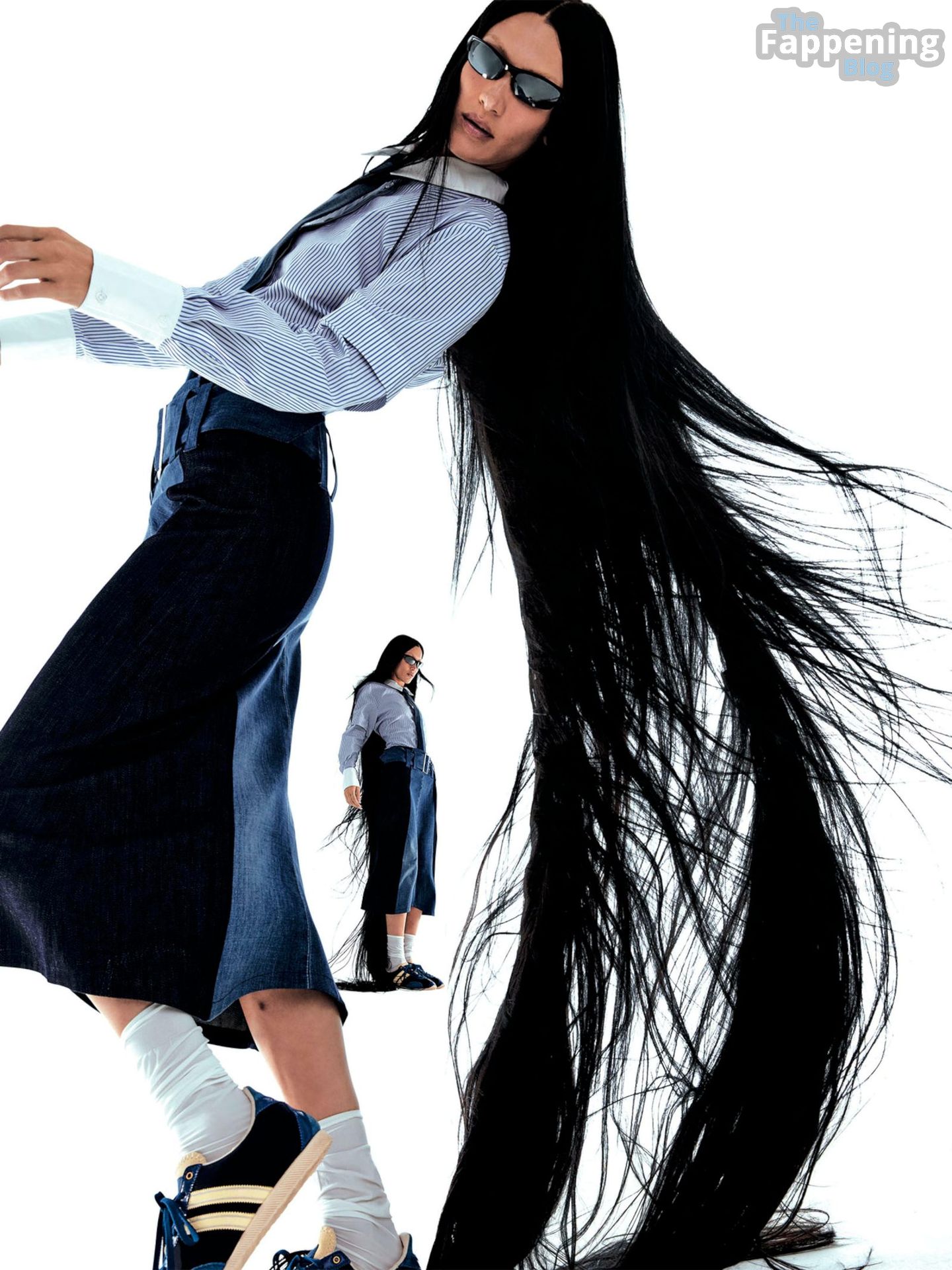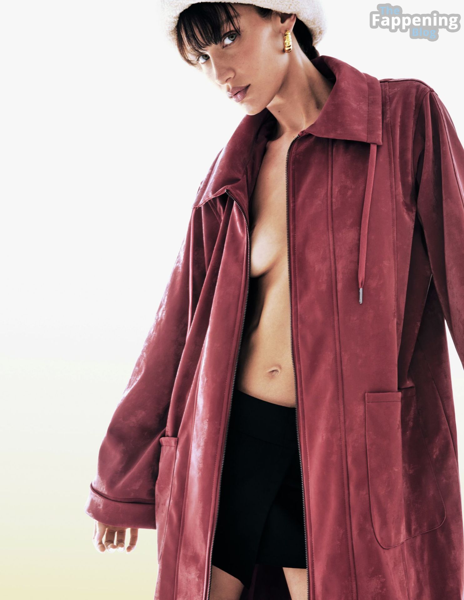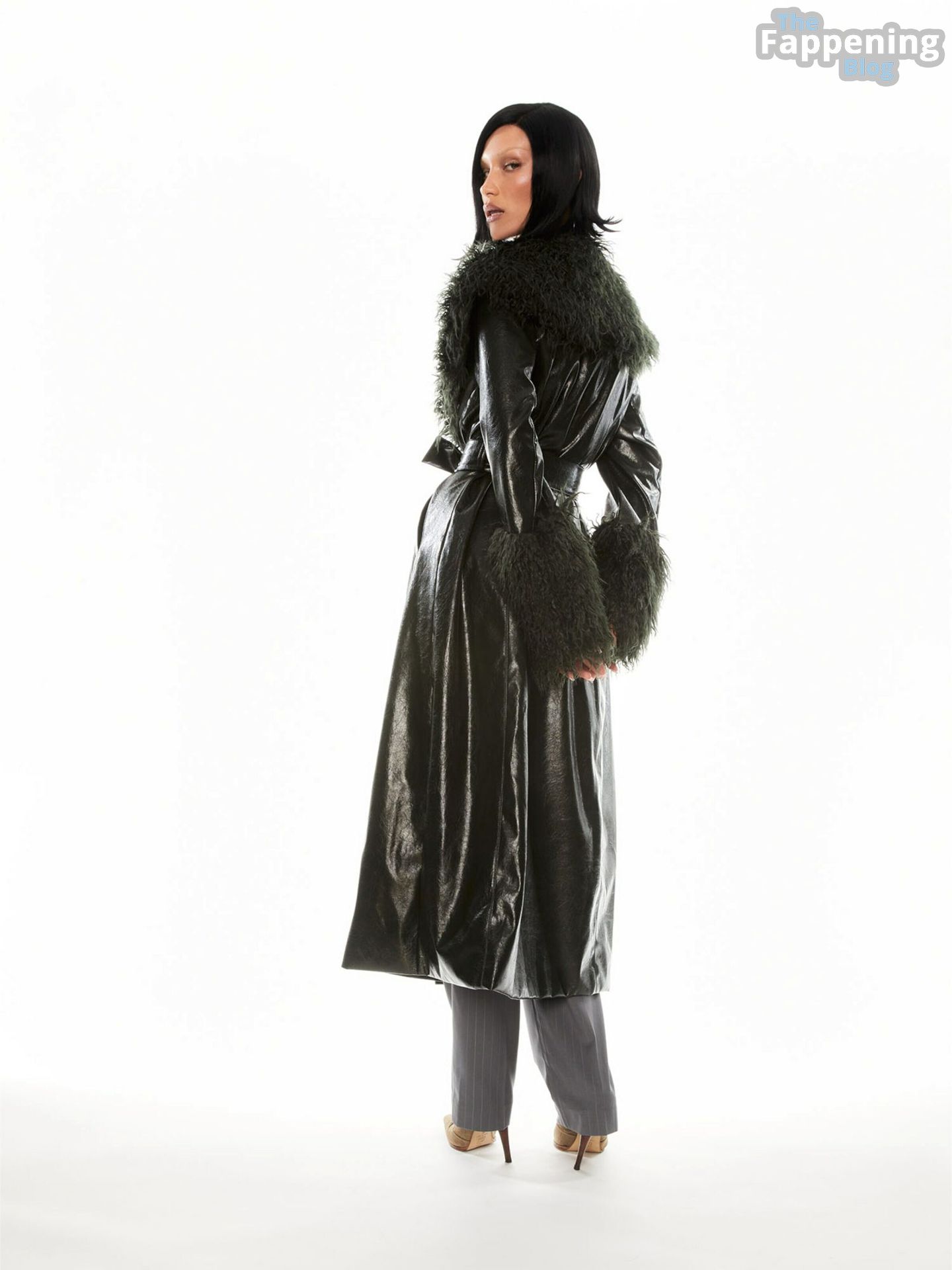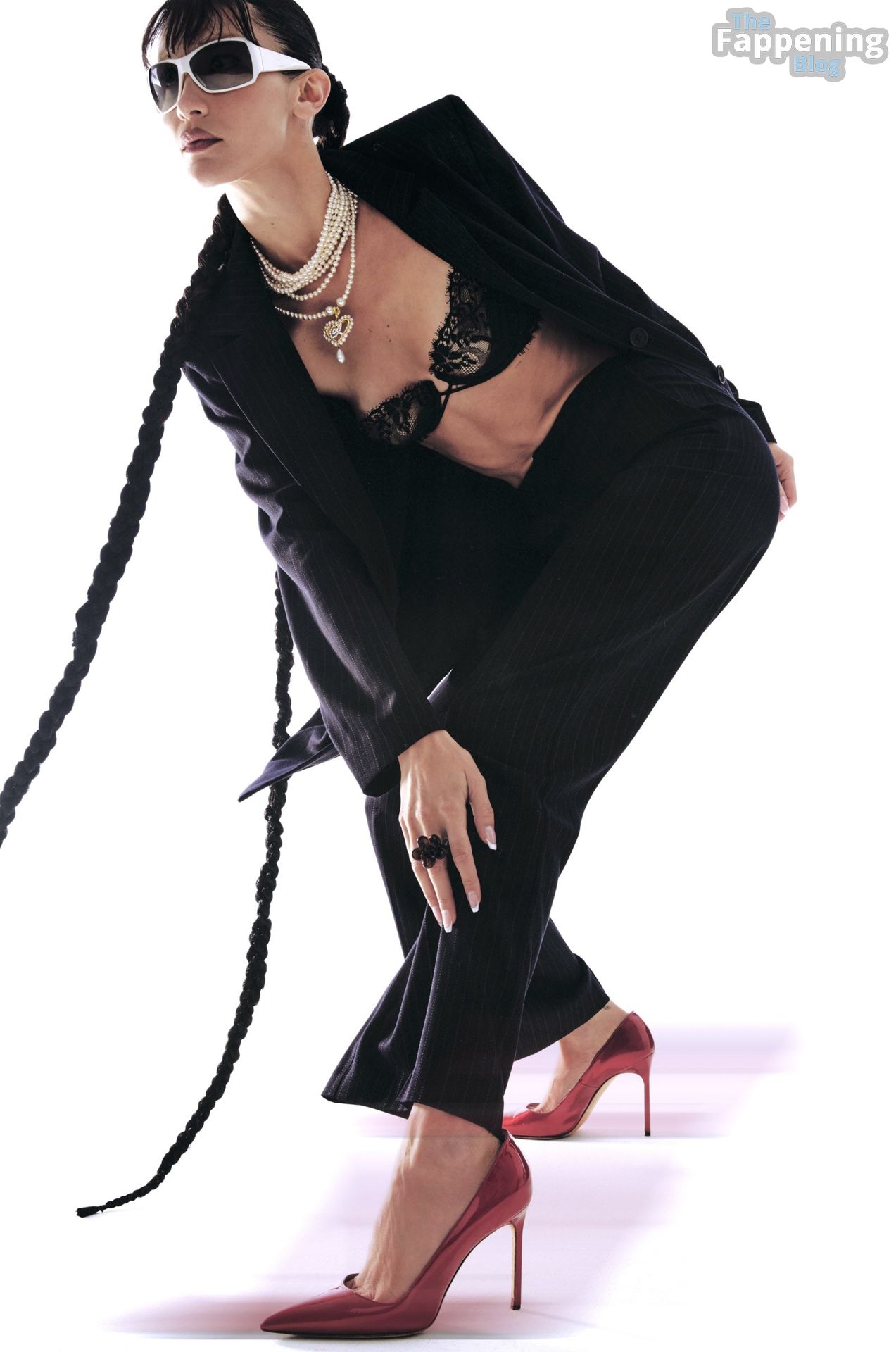 Bella Hadid muestra sus atractivas piernas y posa sin sostén en la colección otoño/invierno para “About You”, revelando sus pezones (2023).
