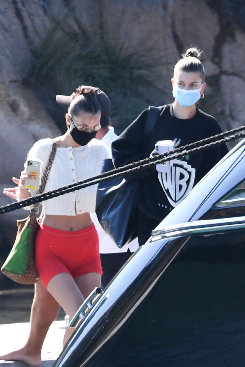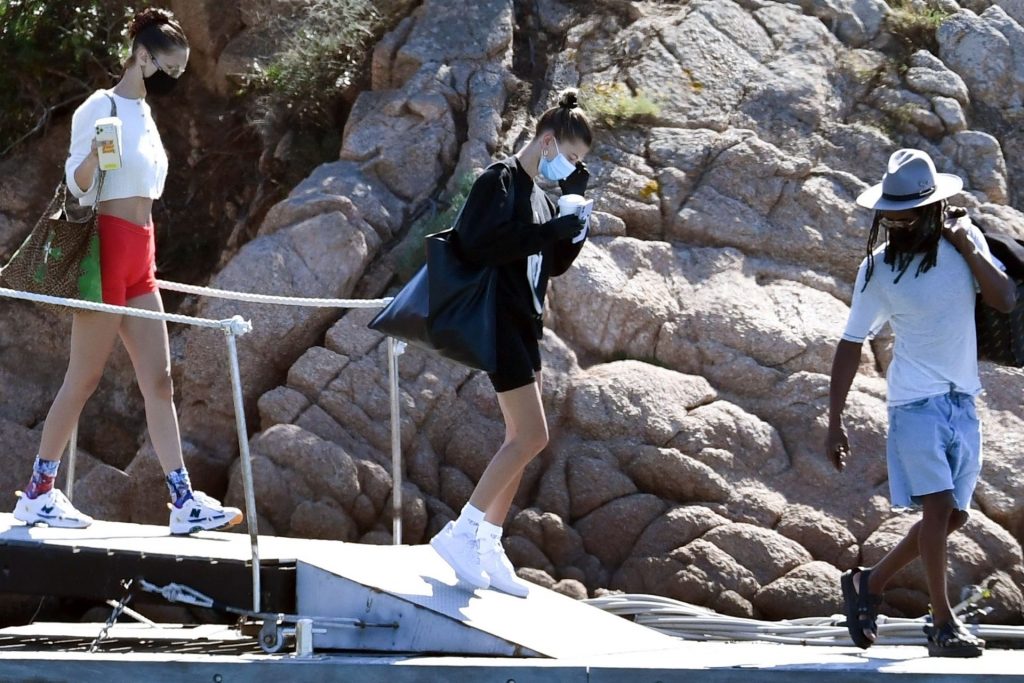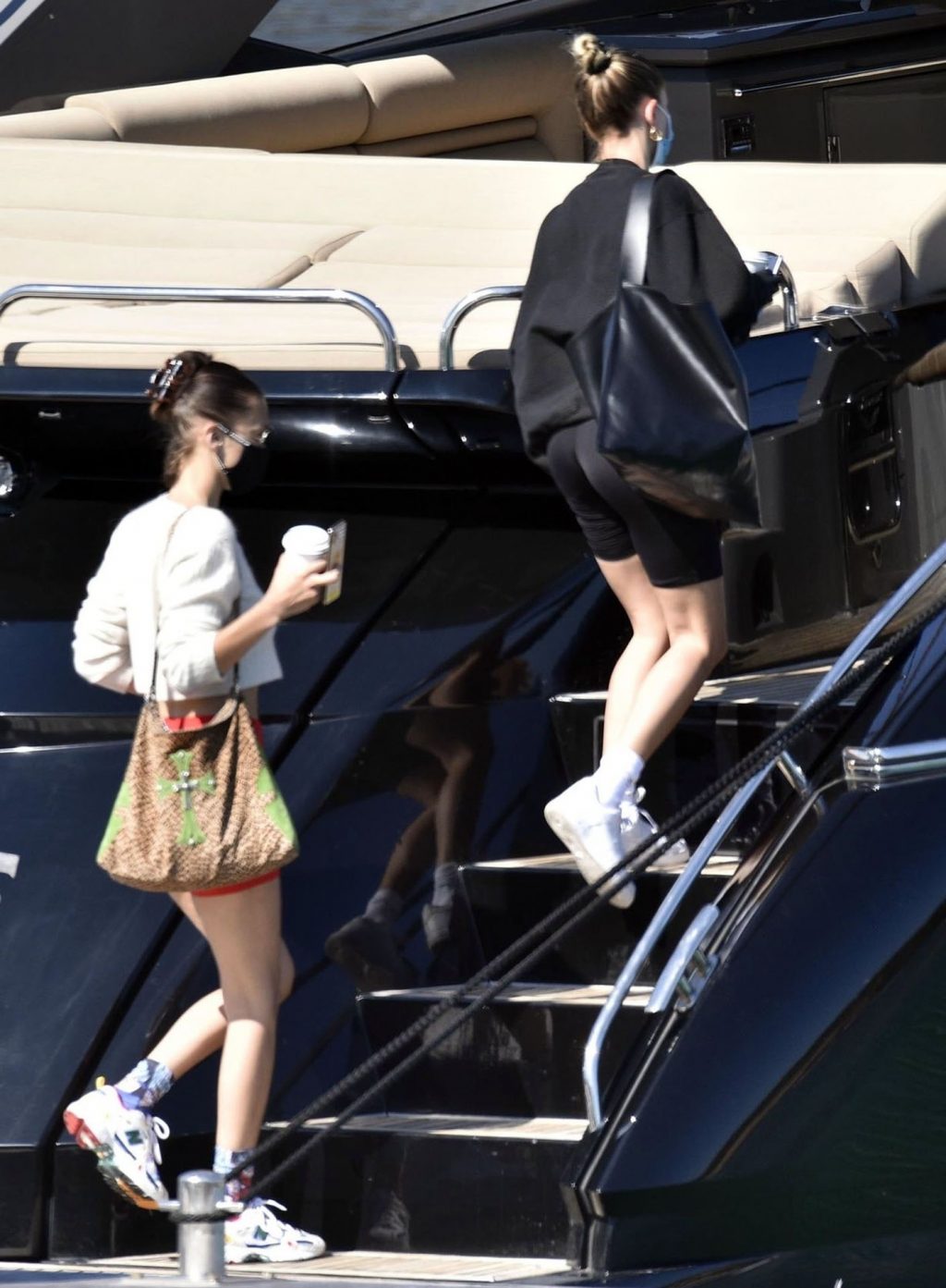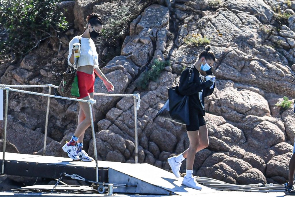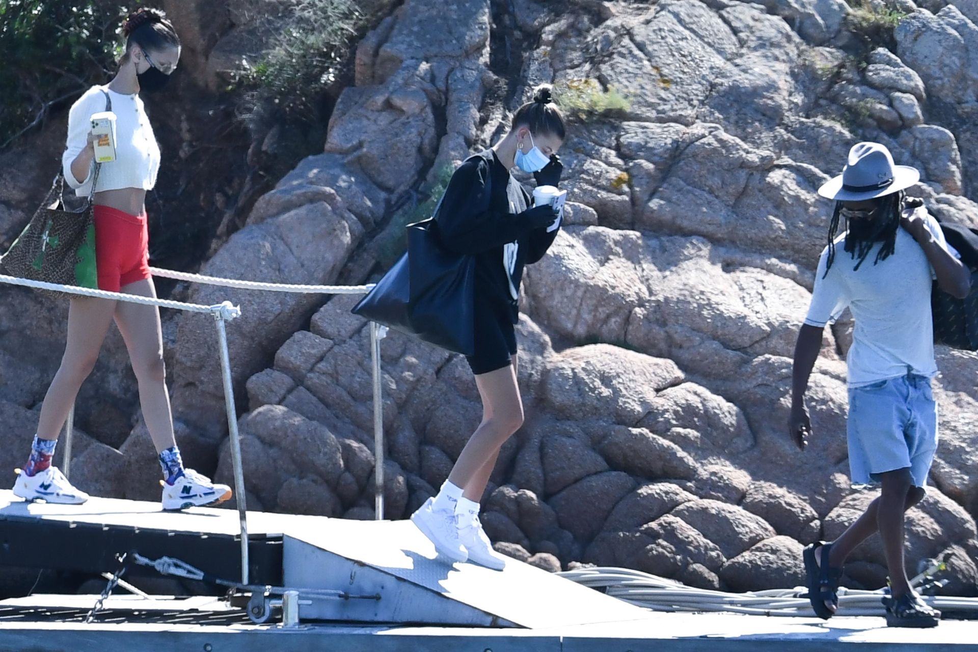 Bella Hadid y Hailey Baldwin son vistas abordando un yate hoy después de llegar a la ciudad anteriormente – Cerdeña, Italia, 23/06/2020. Las modelos parecían emocionadas de disfrutar un tiempo en el agua y almorzar.