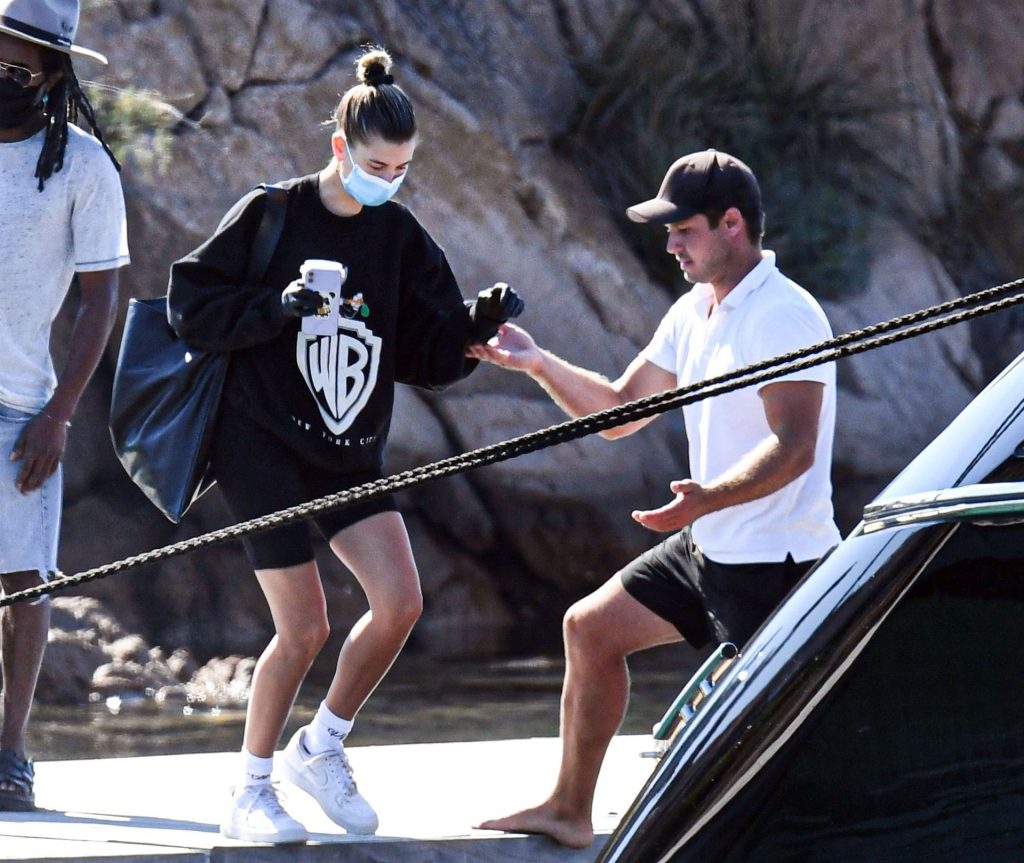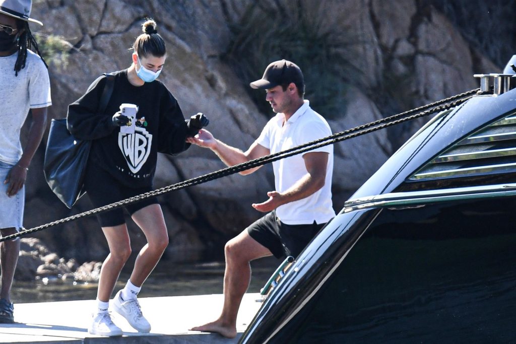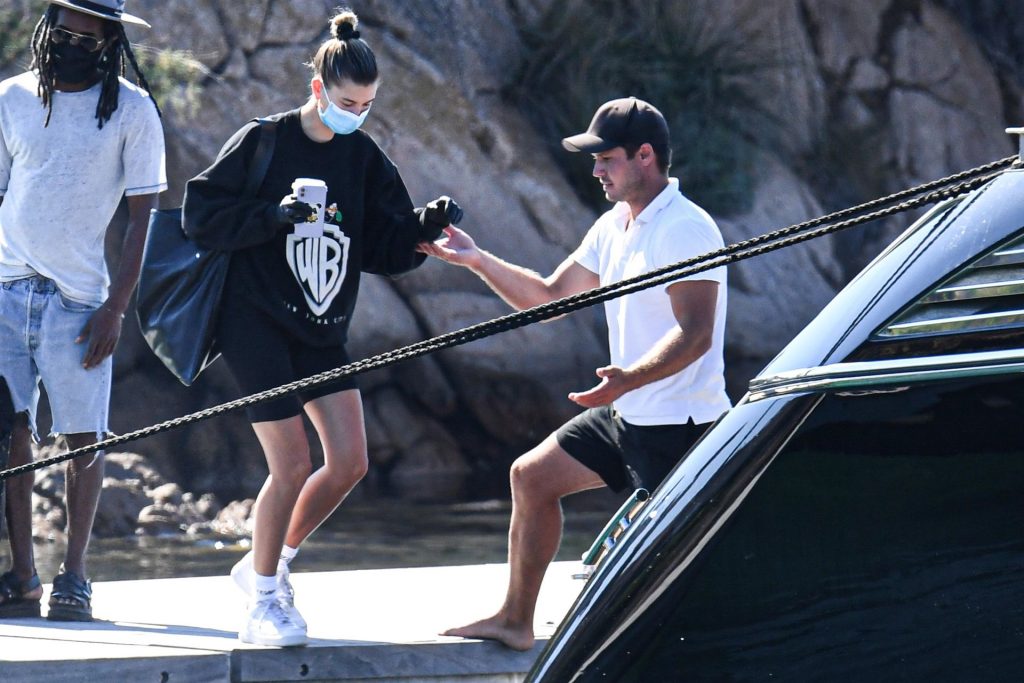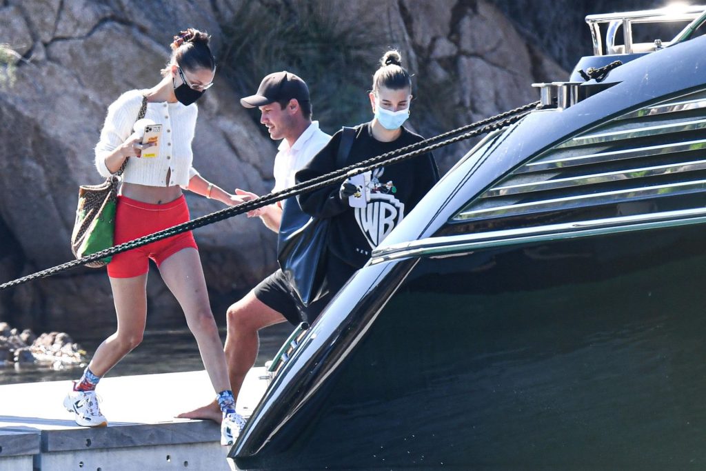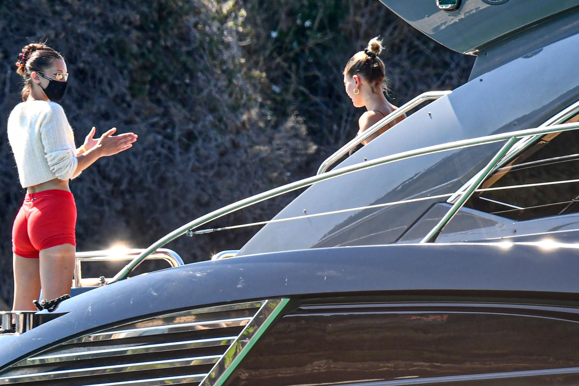 Bella Hadid y Hailey Baldwin son vistas abordando un yate hoy después de llegar a la ciudad anteriormente – Cerdeña, Italia, 23/06/2020. Las modelos parecían emocionadas de disfrutar un tiempo en el agua y almorzar.