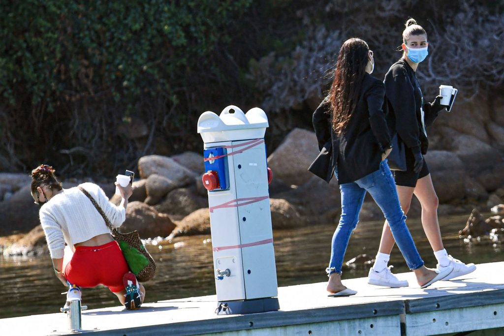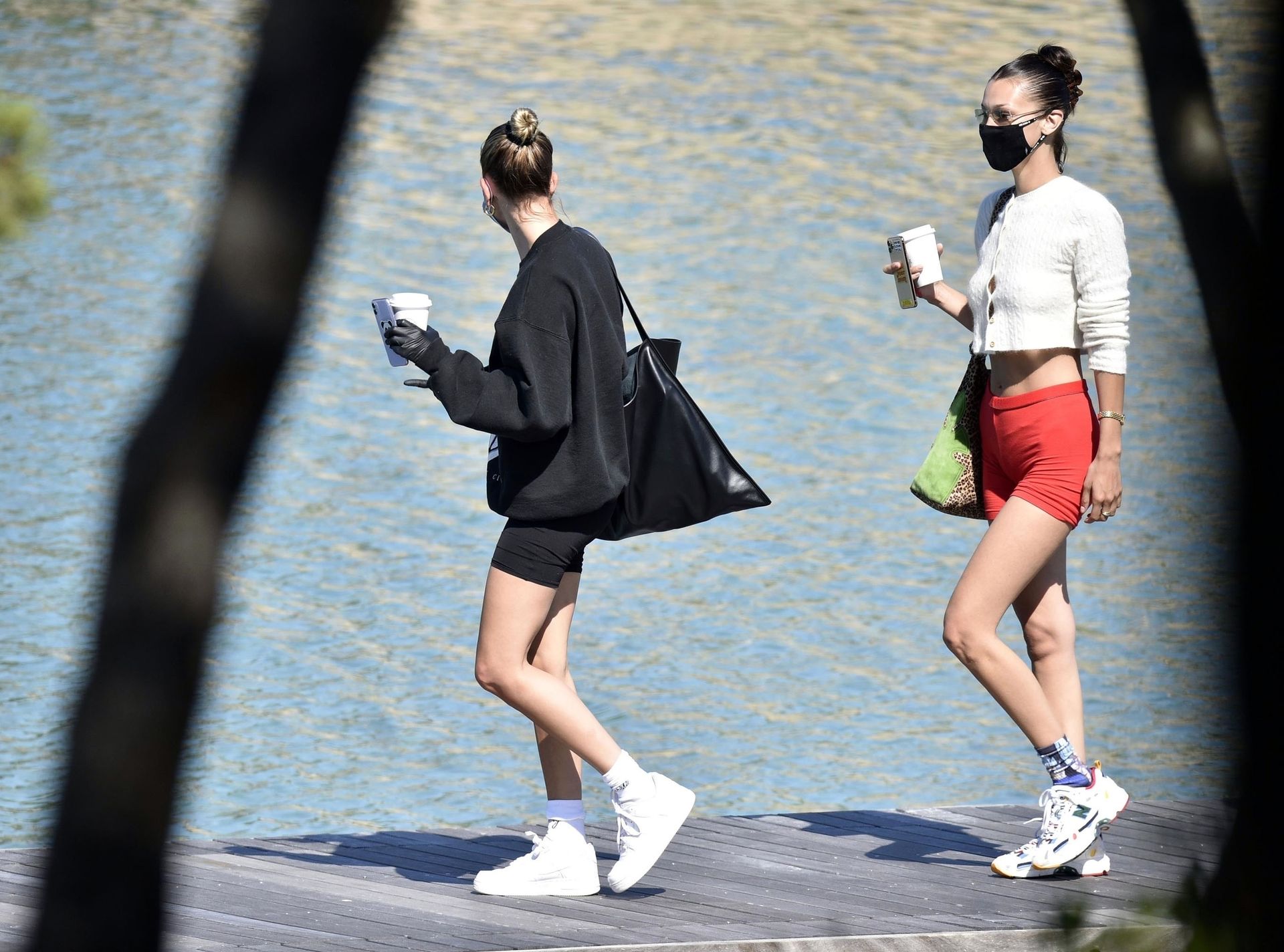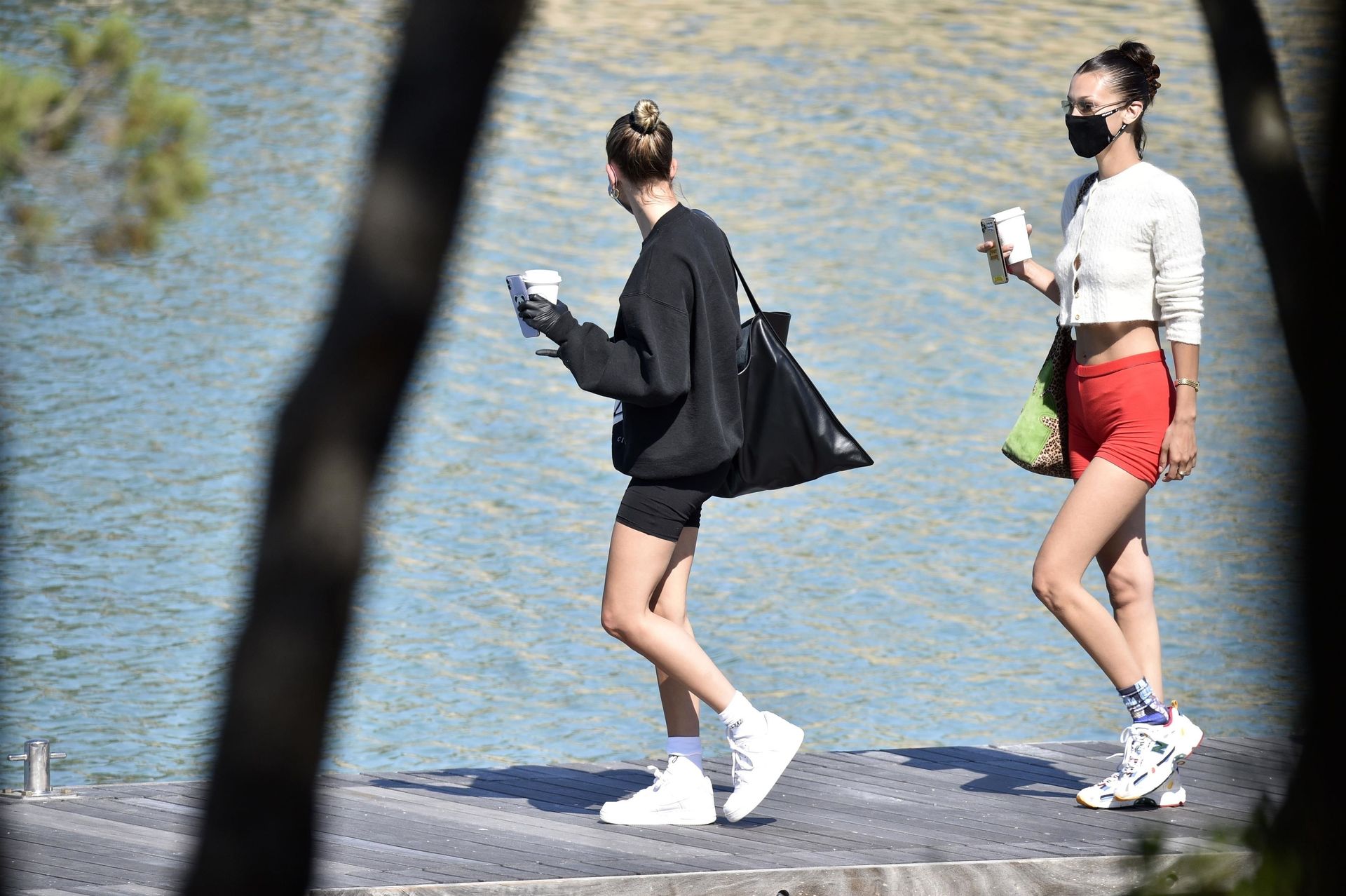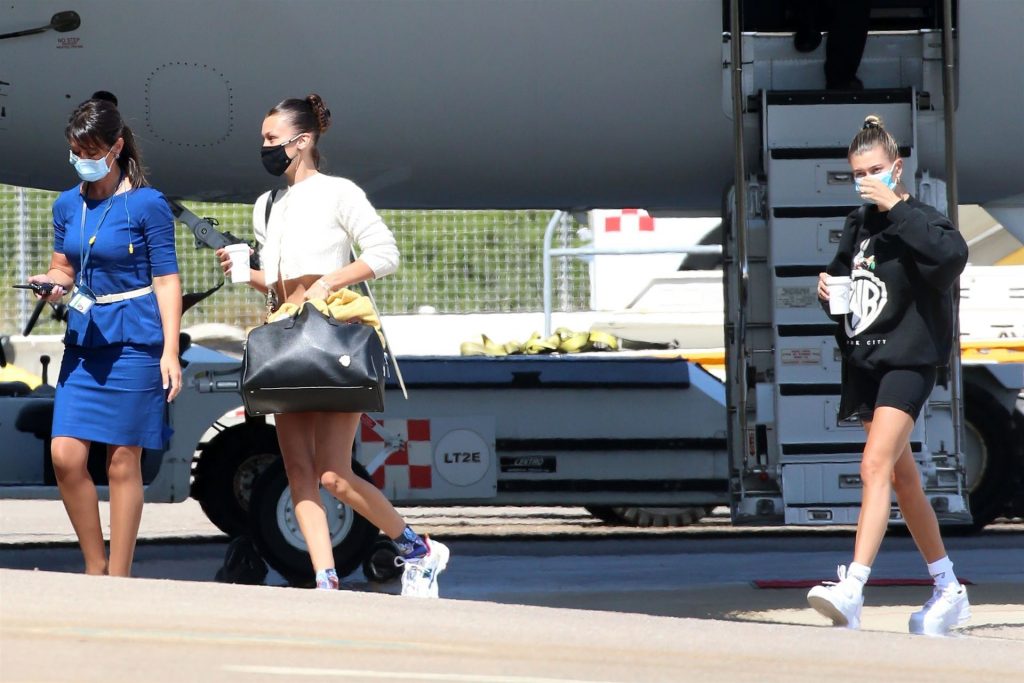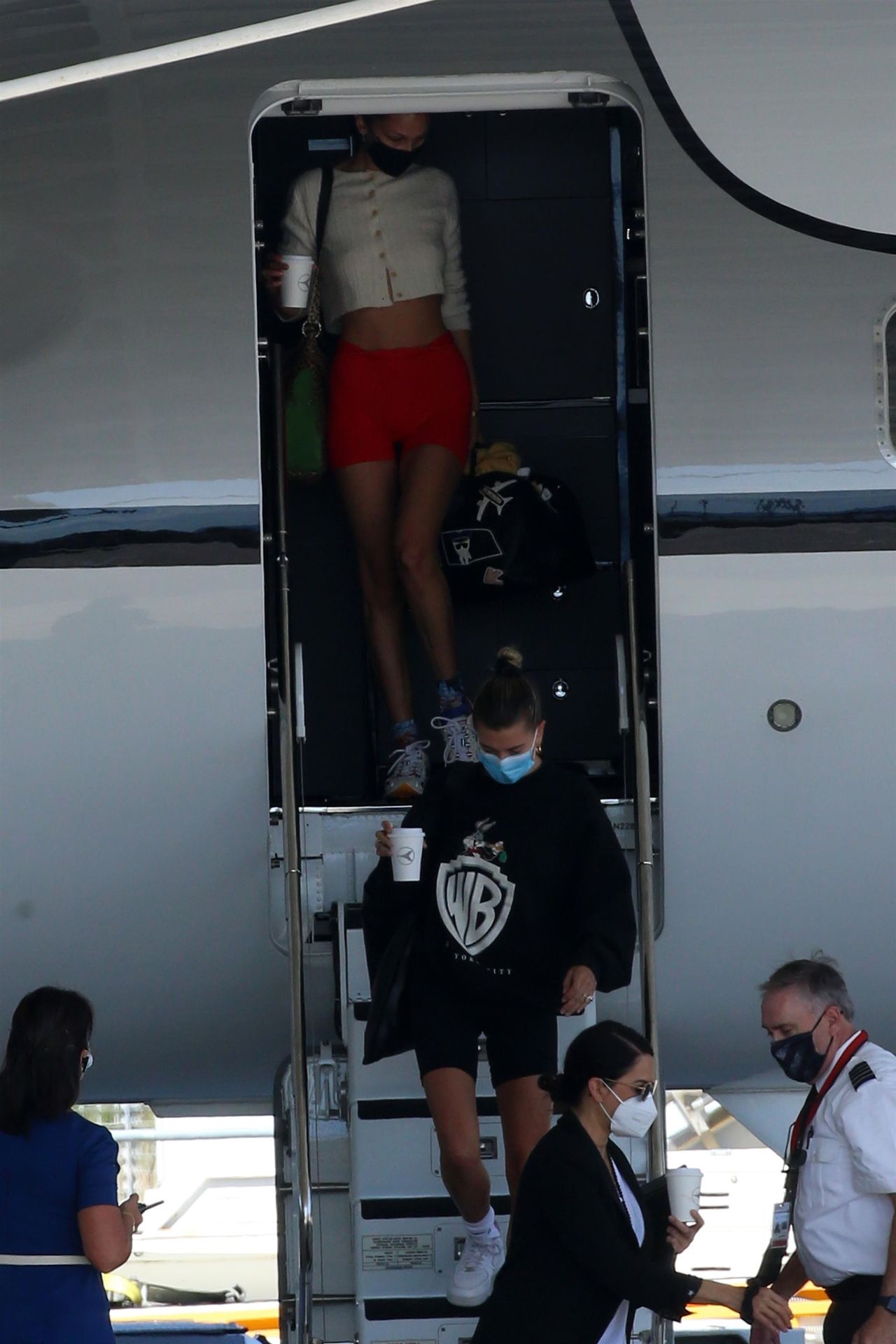 Bella Hadid y Hailey Baldwin son vistas abordando un yate hoy después de llegar a la ciudad anteriormente – Cerdeña, Italia, 23/06/2020. Las modelos parecían emocionadas de disfrutar un tiempo en el agua y almorzar.