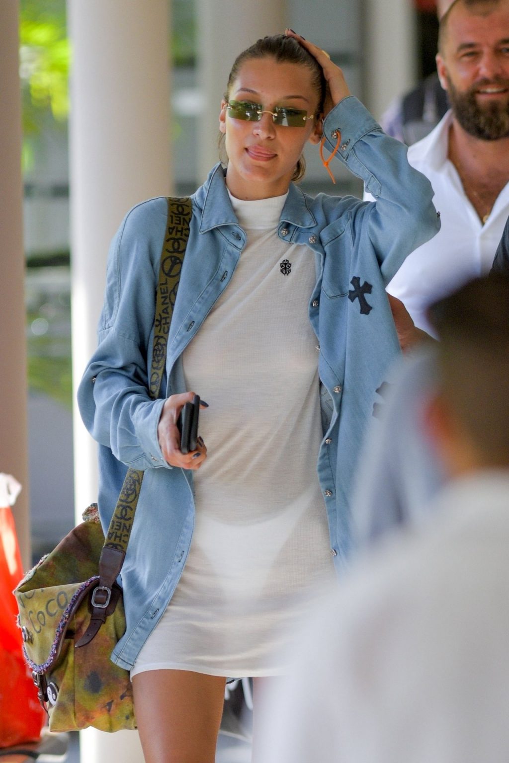 Después de disfrutar de momentos divertidos y mostrar su cuerpo sexy, es hora de que Bella Hadid diga Au Revoir a St. Barth mientras se prepara para subir a un avión vistiendo una camisa maxi transparente, 12/09/2019.