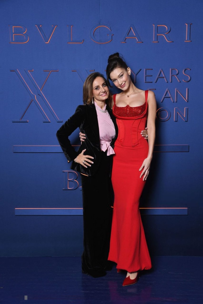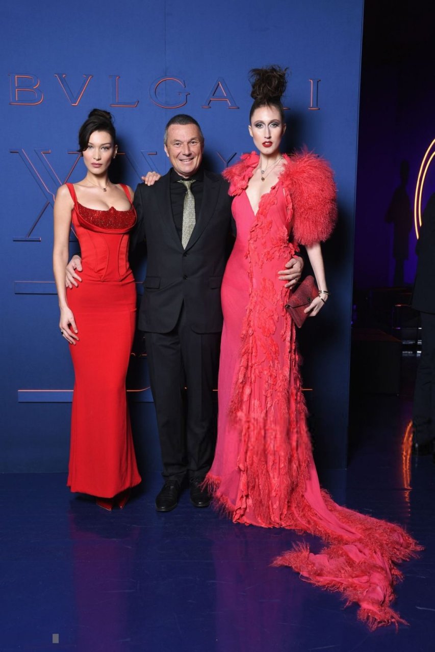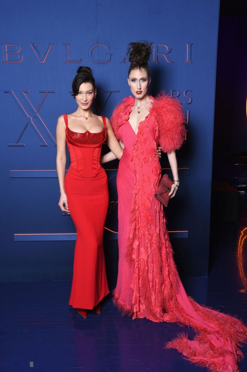 La noche de la marca Bvlgari se celebró en Roma, 19/02/2019. Celebridades y amigos de la marca asistieron al evento. Todos los invitados eligieron imágenes espectaculares para la noche. La modelo Bella Hadid (22) apareció con un vestido rojo de Versace con un escote profundo y corsé, que resaltaba su cintura delgada.