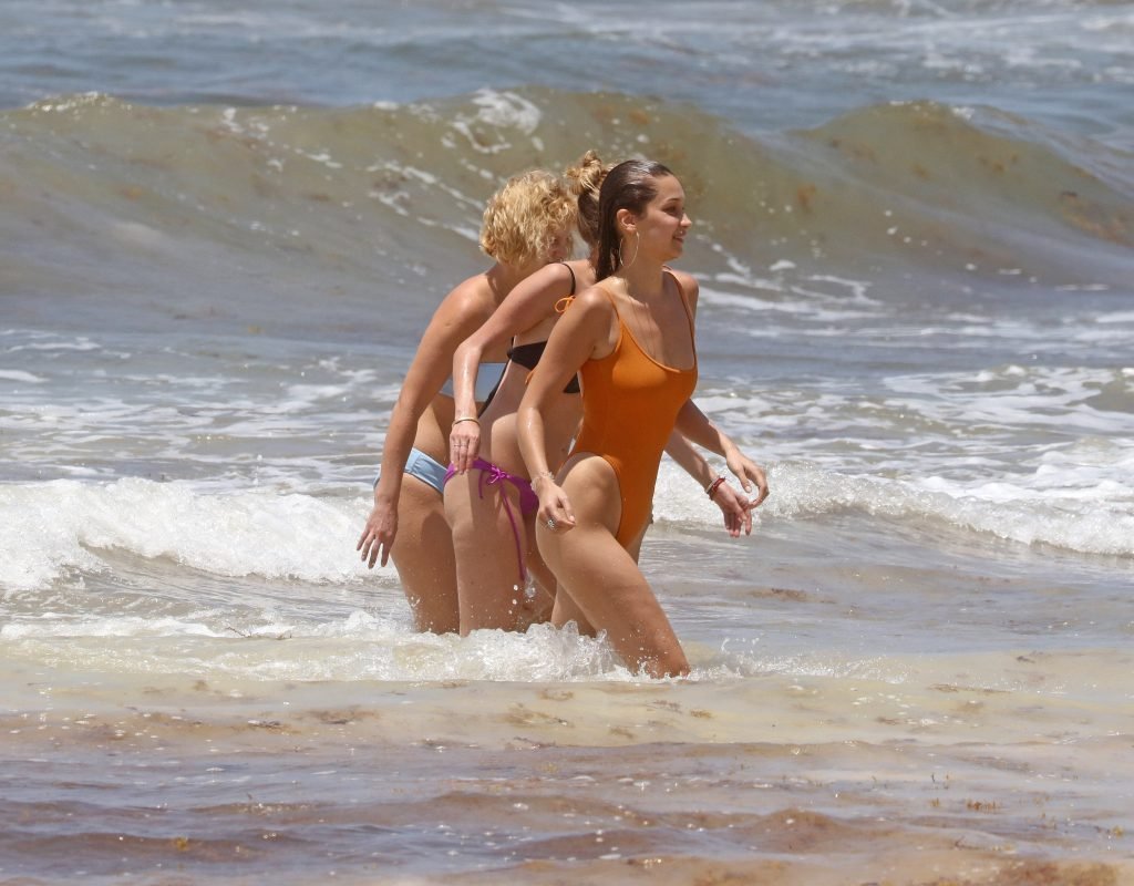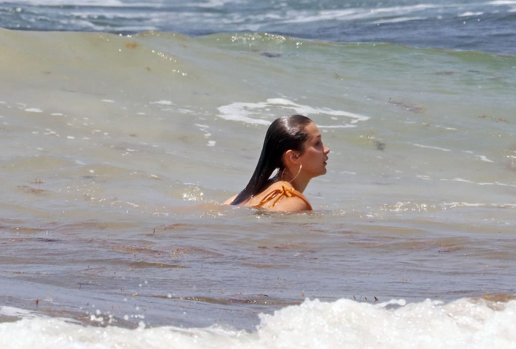 Supermodelo y estrella de reality TV Bella Hadid presume su sexy cuerpo con un bikini naranja en la playa mientras está de vacaciones con amigos en Cancún, México, 06/06/2018.
