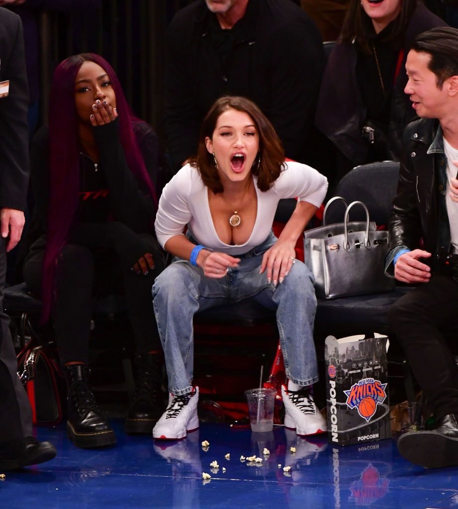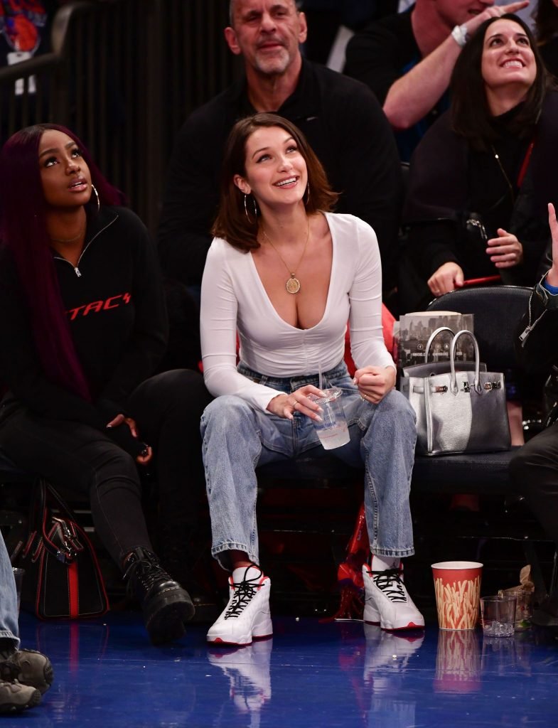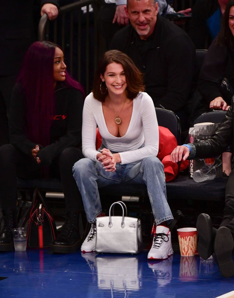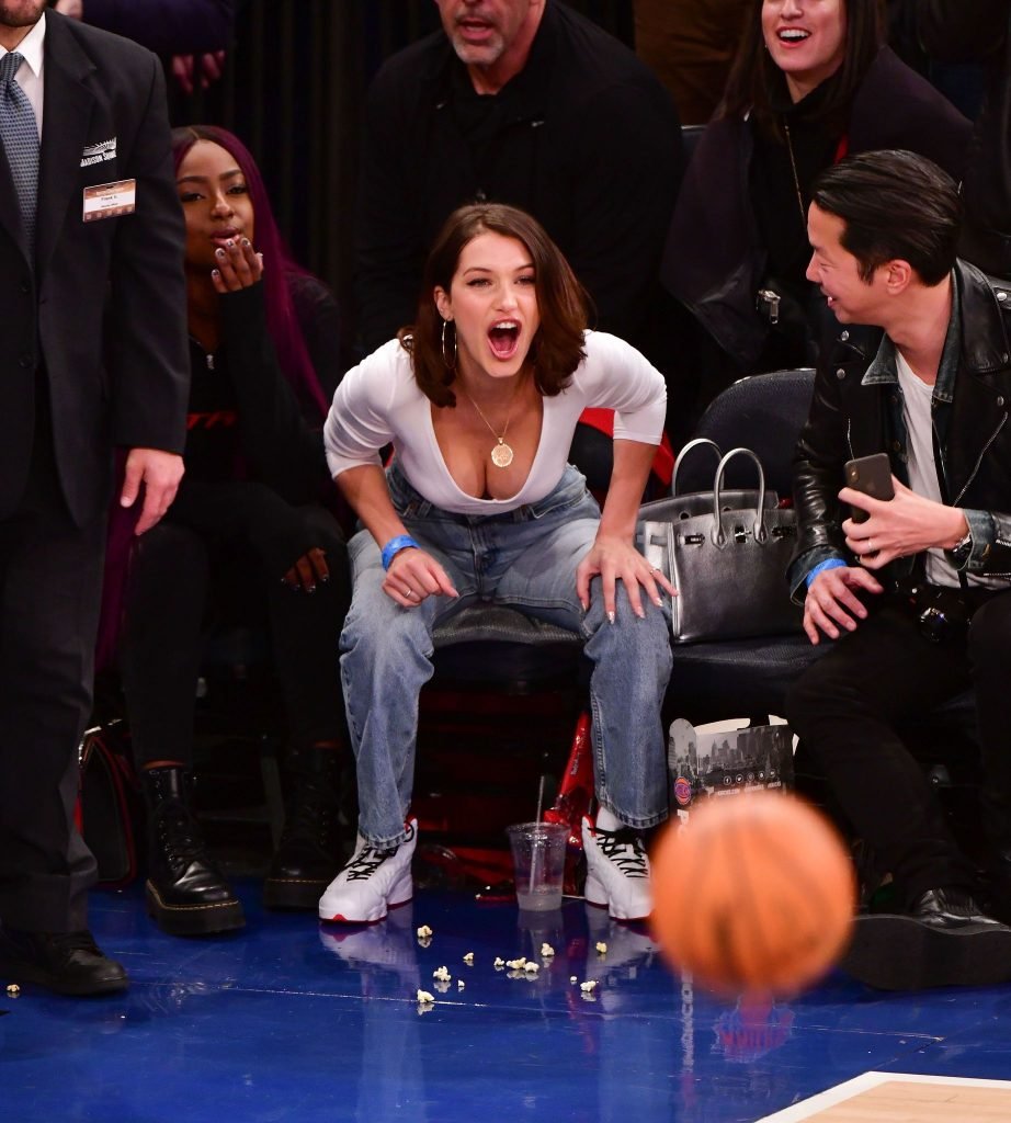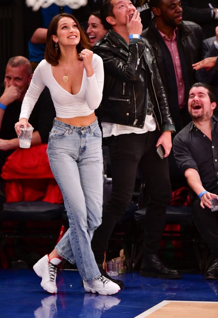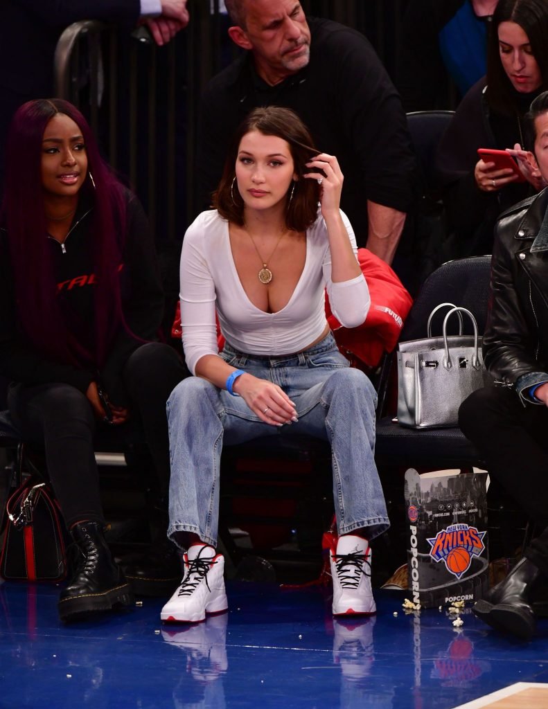 Bella Hadid asiste al partido New York Knicks Vs Los Angeles Lakers en NYC, 12/12/2017. Isabella Hadid es una modelo, actriz y estrella de televisión/online estadounidense. Edad – 21.