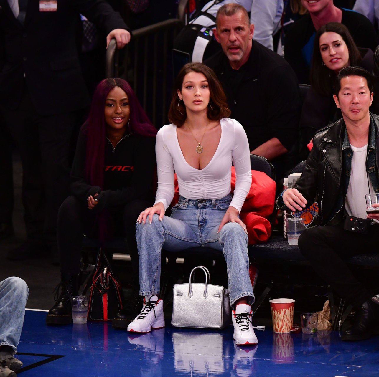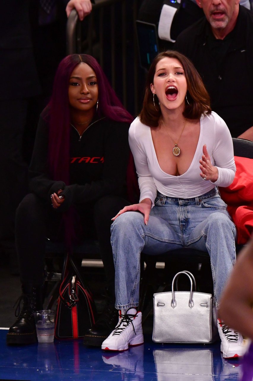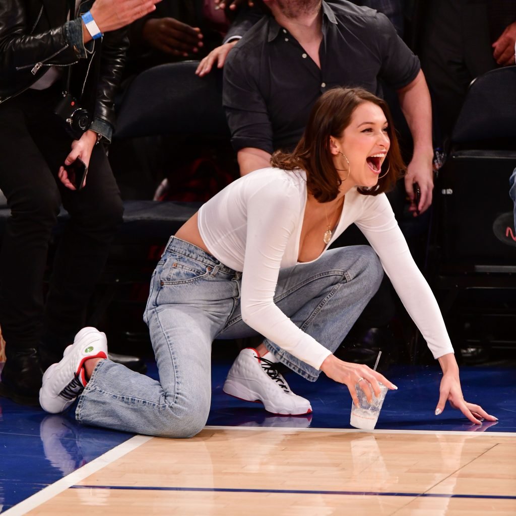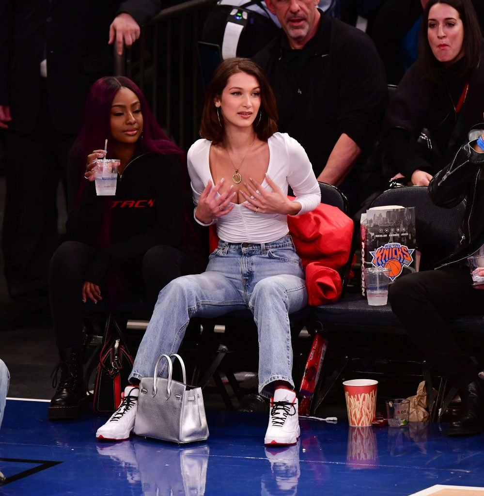 Bella Hadid asiste al partido New York Knicks Vs Los Angeles Lakers en NYC, 12/12/2017. Isabella Hadid es una modelo, actriz y estrella de televisión/online estadounidense. Edad – 21.