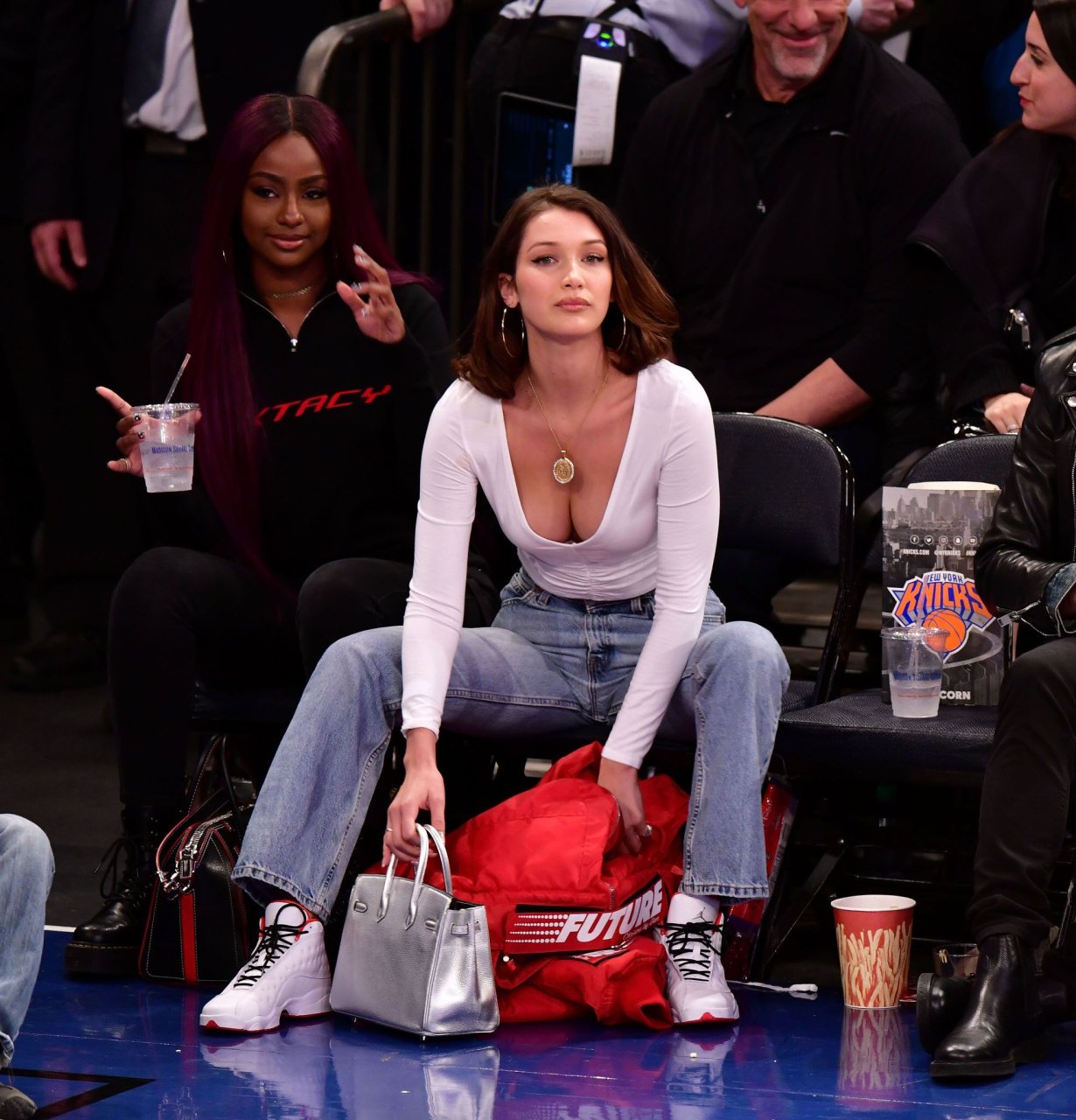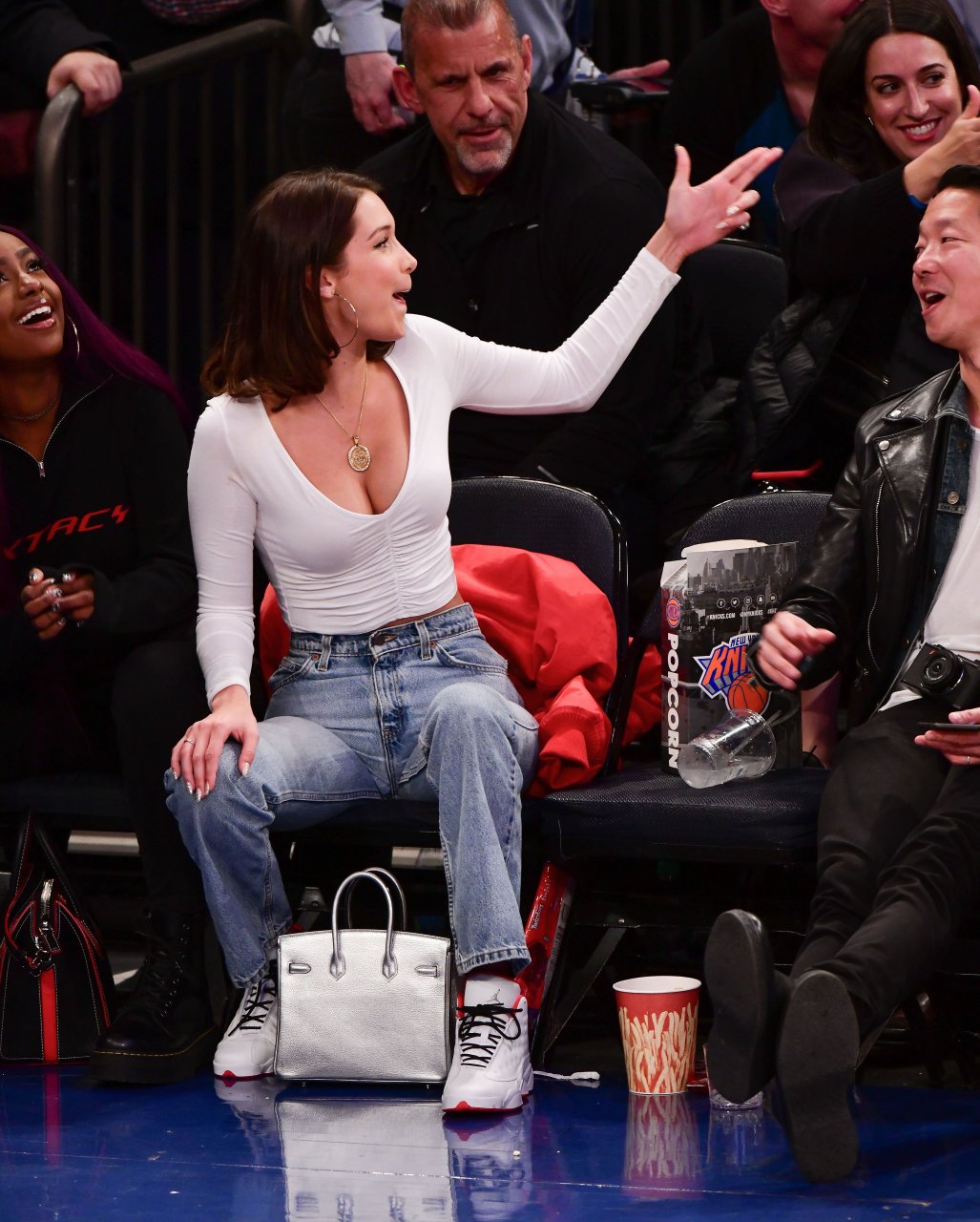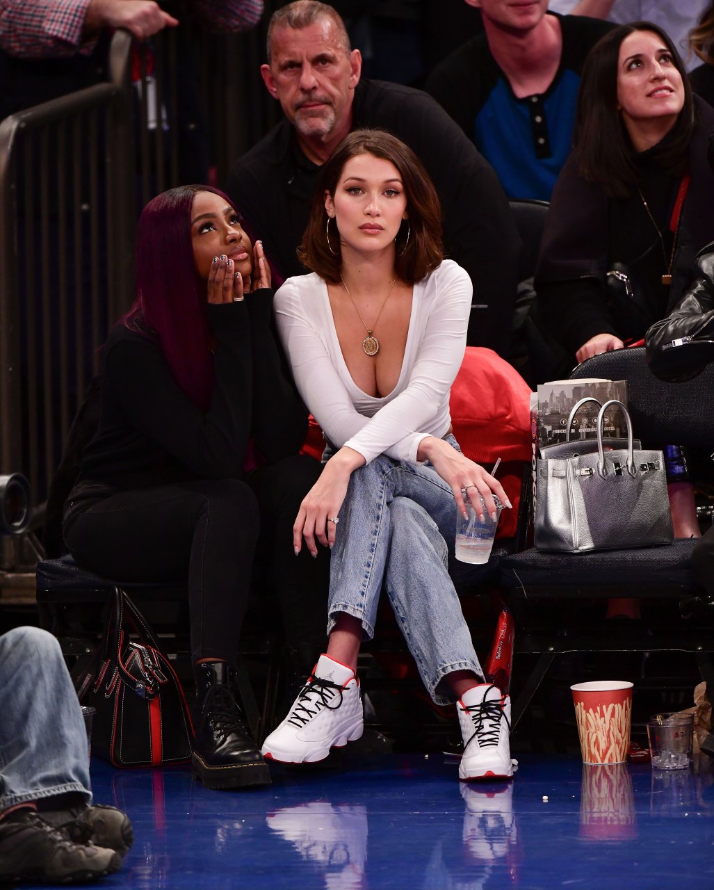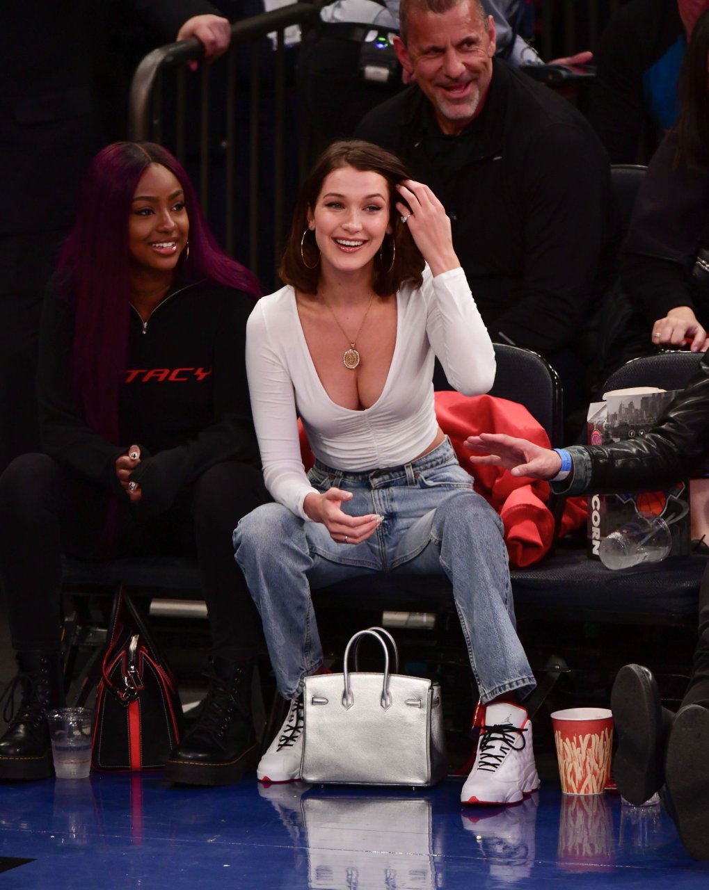 Bella Hadid asiste al partido New York Knicks Vs Los Angeles Lakers en NYC, 12/12/2017. Isabella Hadid es una modelo, actriz y estrella de televisión/online estadounidense. Edad – 21.
