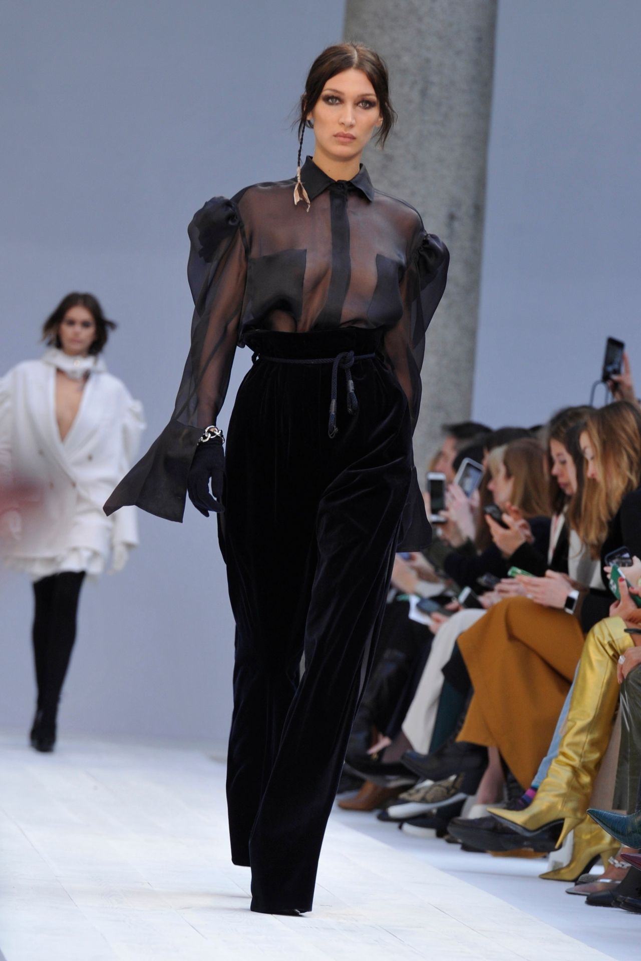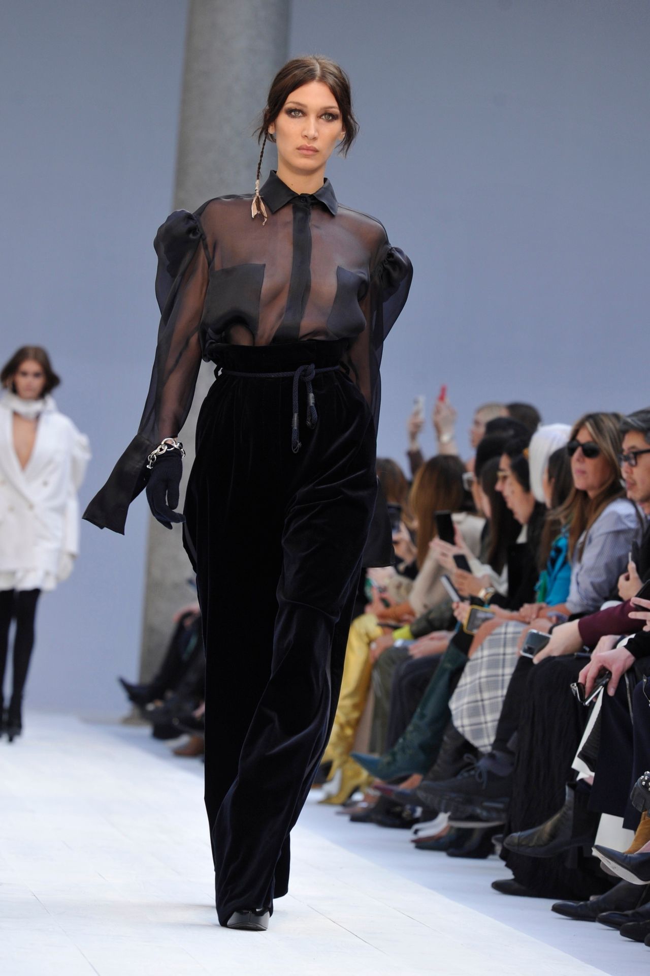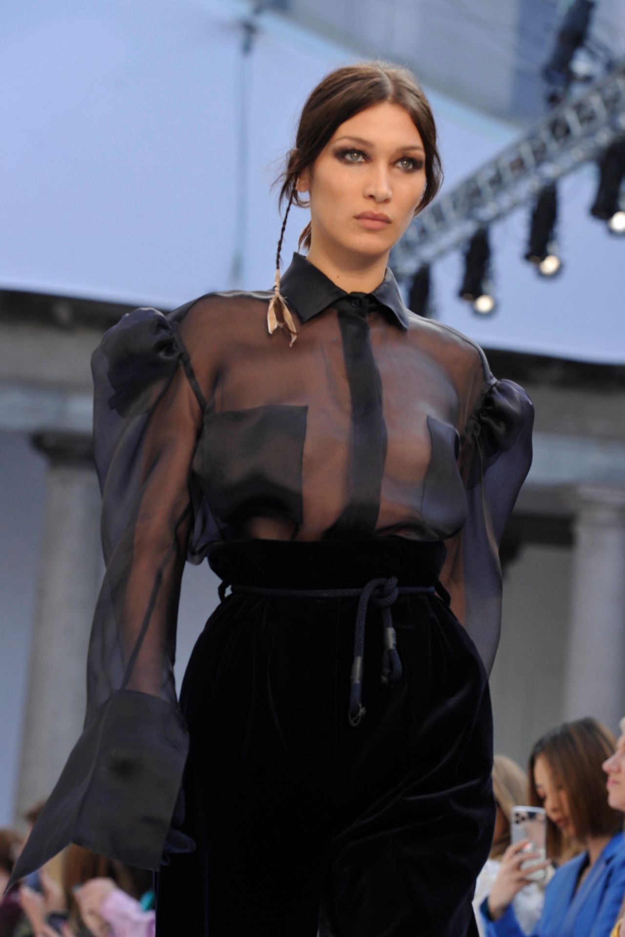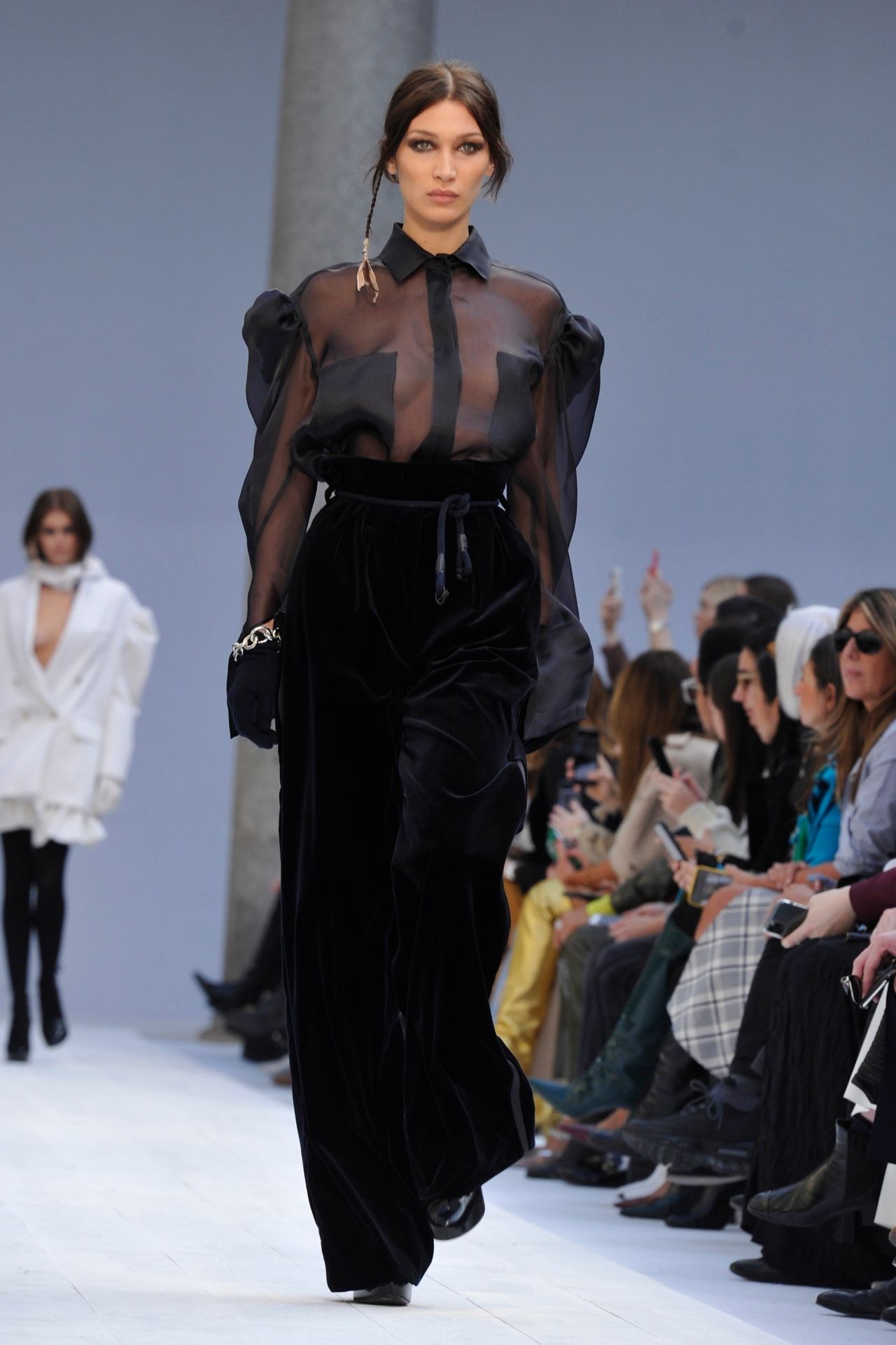 Bella Hadid desfila en la pasarela durante el desfile de moda de Max Mara (20 fotos + GIF y video)