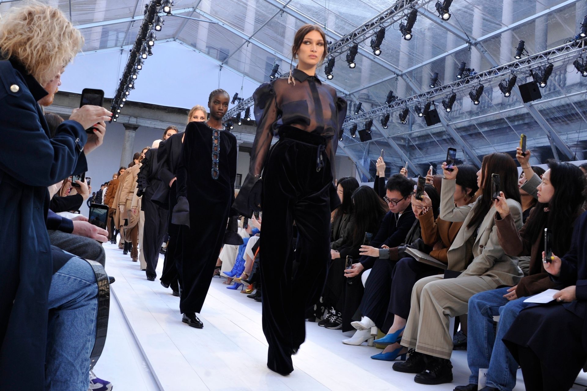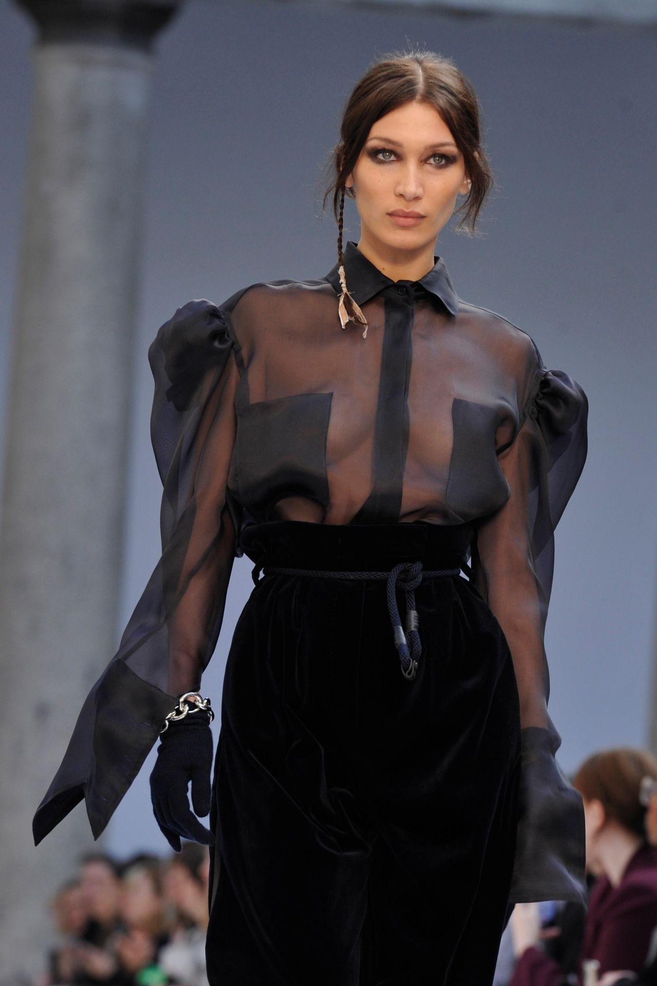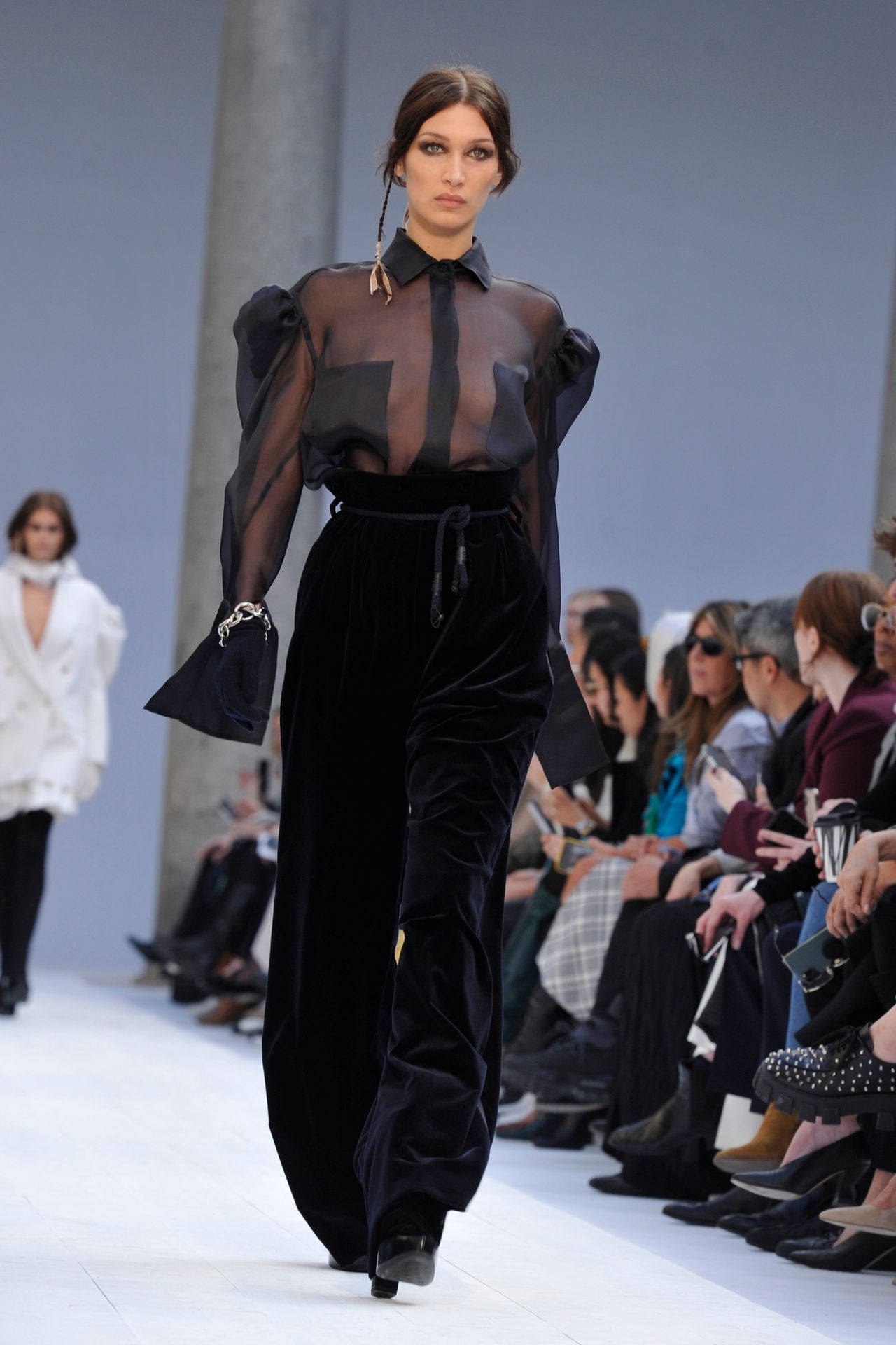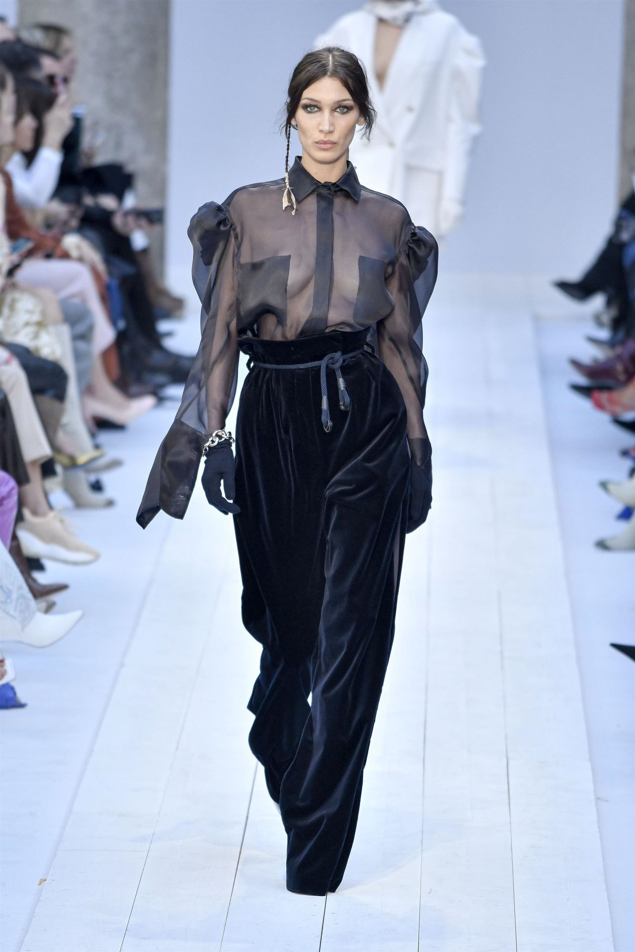 Bella Hadid desfila en la pasarela durante el desfile de moda de Max Mara (20 fotos + GIF y video)