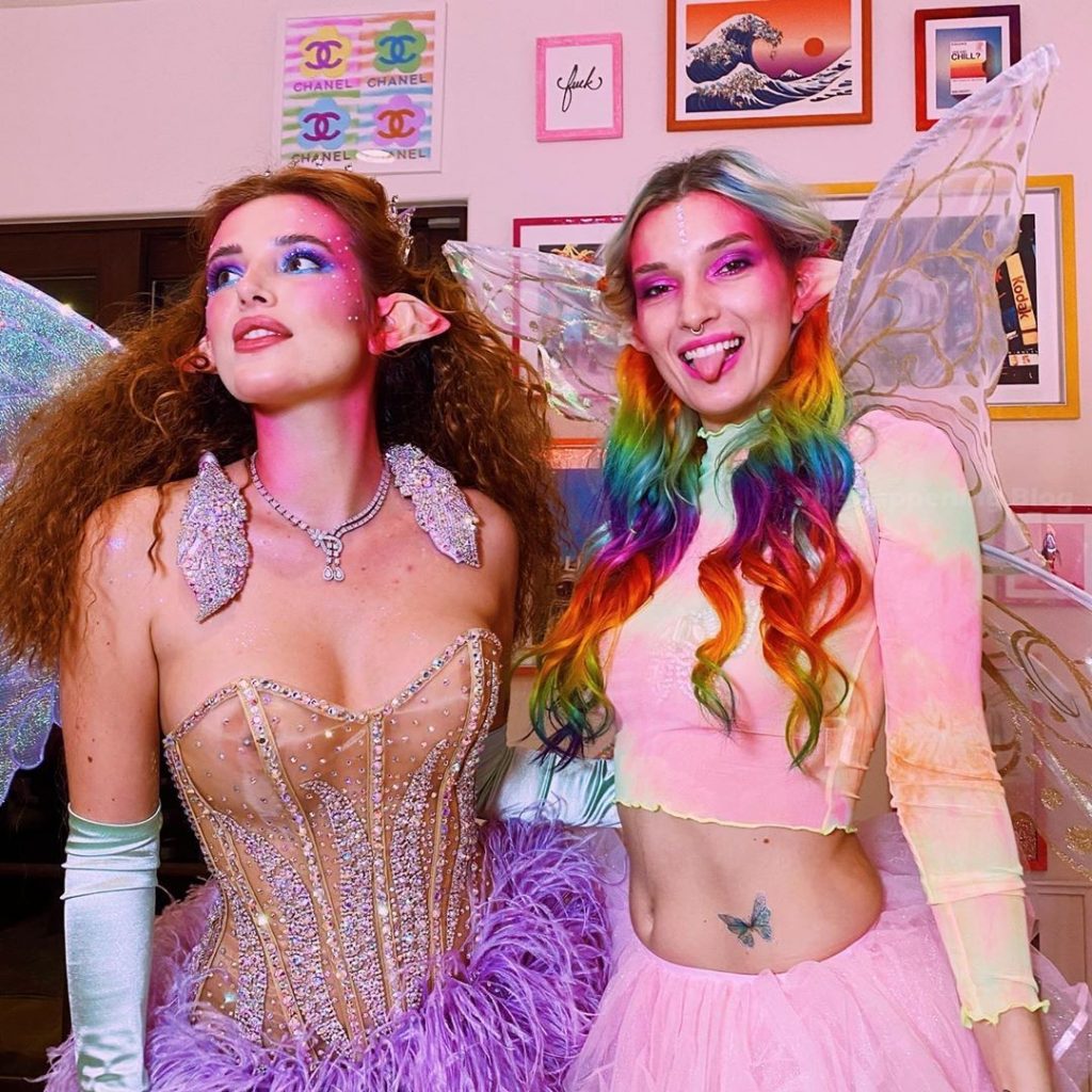 La estrella de The Fappening Bella Thorne y su hermana Dani prueban disfraces de Halloween de cuento de hadas. Bella muestra sus famosos pechos con un vestido corsé transparente y Dani presume su trasero sexy en una nueva sesión de fotos en redes sociales – Instagram, 19/10/2020.