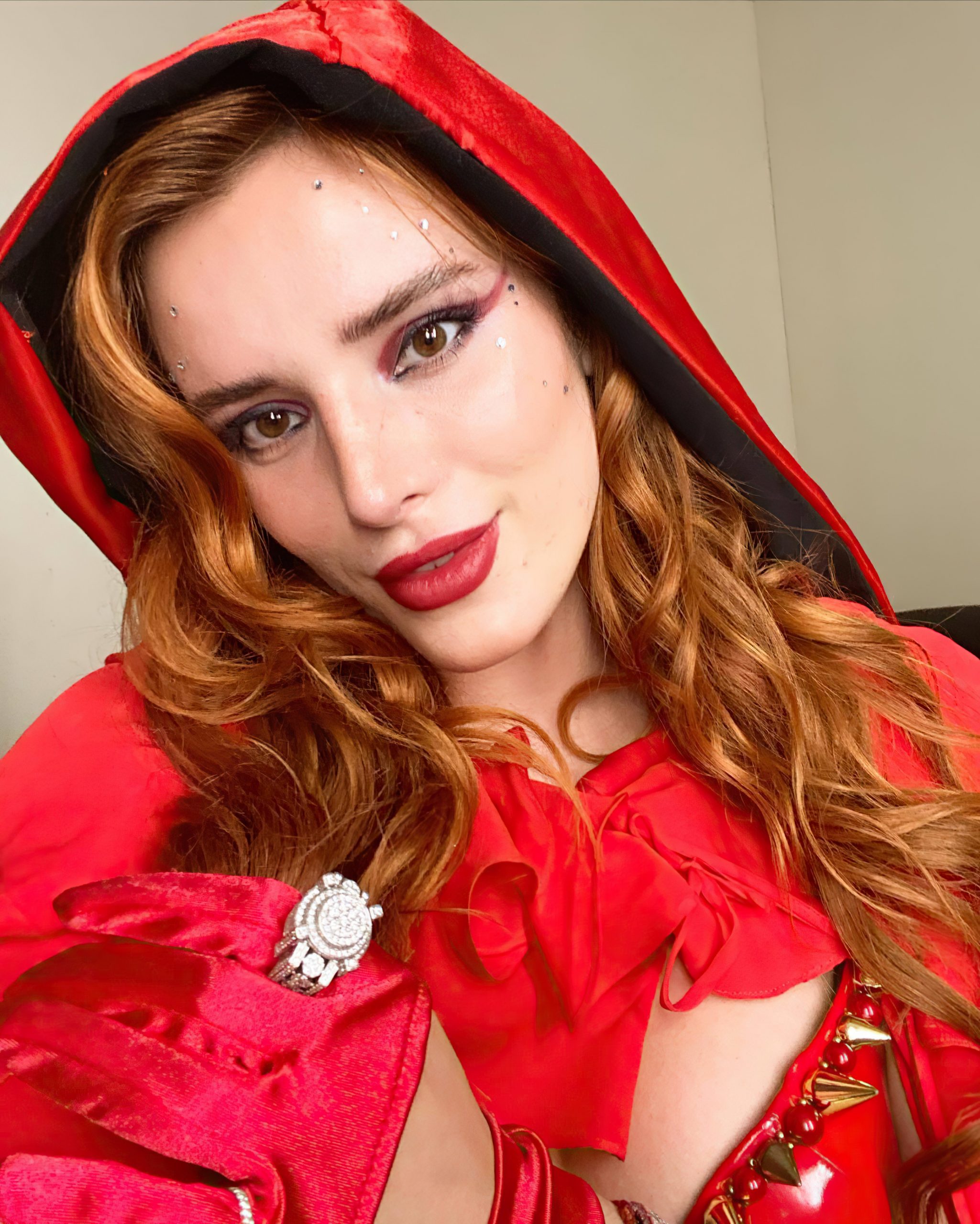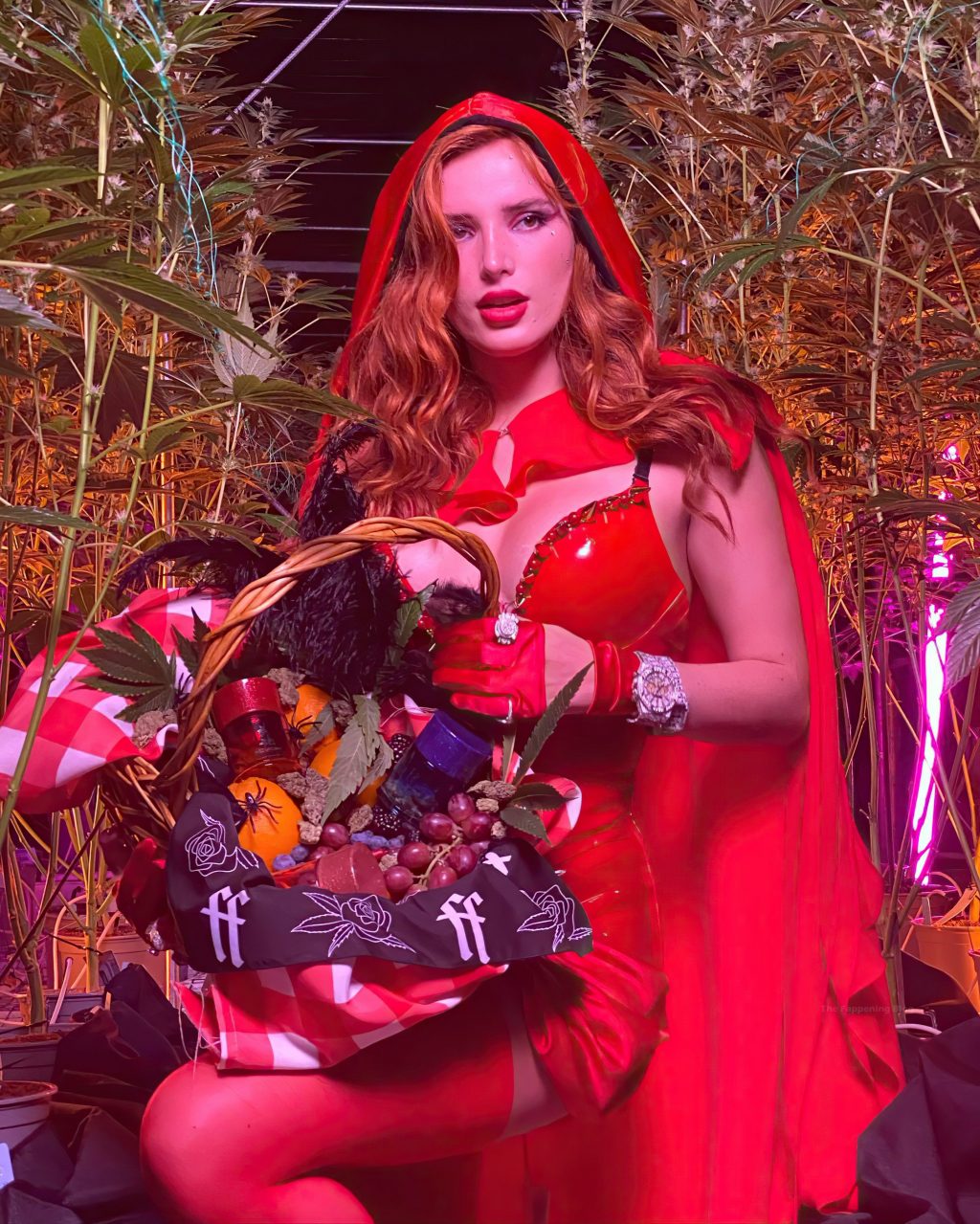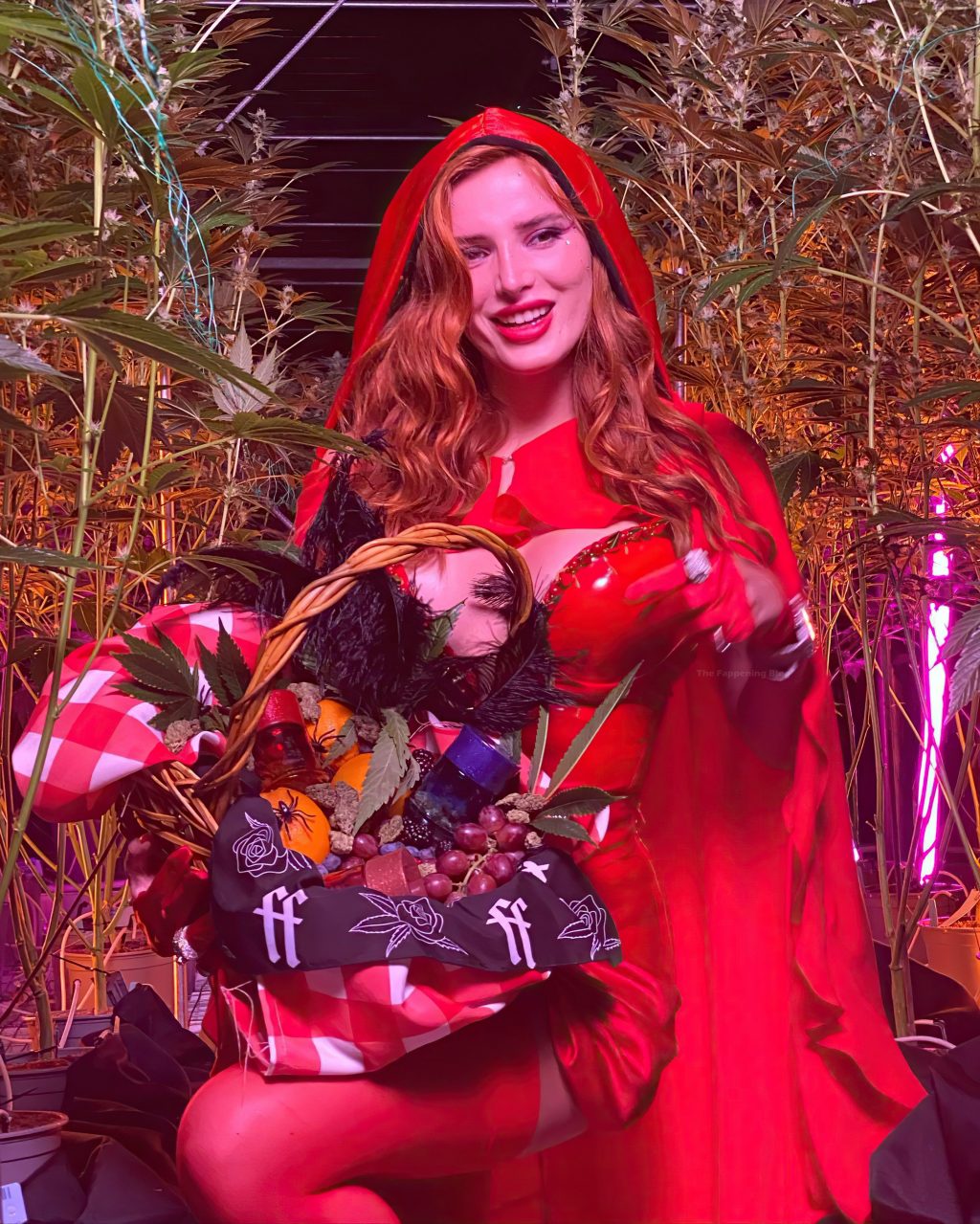 La estrella de The Fappening Bella Thorne prepara un disfraz sexy de Halloween vestida como Caperucita Roja, mostrando sus grandes pechos sin sujetador y un trasero ardiente.