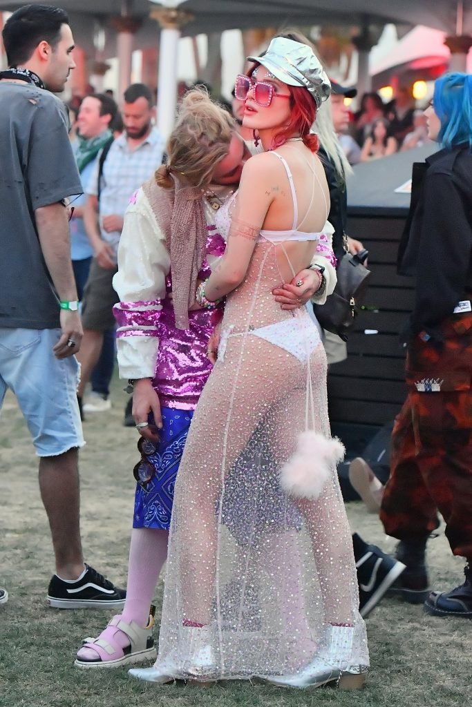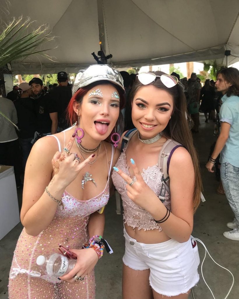 Bella Thorne y su novio Mod Sun fueron vistos llegando con un amigo para una noche de diversión en Coachella en Indio, 16/04/2019. La hermana de Thorne, Dani, también estuvo presente. Annabella (Bella) Thorne es una actriz de cine estadounidense, cantante, personalidad de redes sociales (17.3m seguidores en Instagram). Edad – 20 años.
