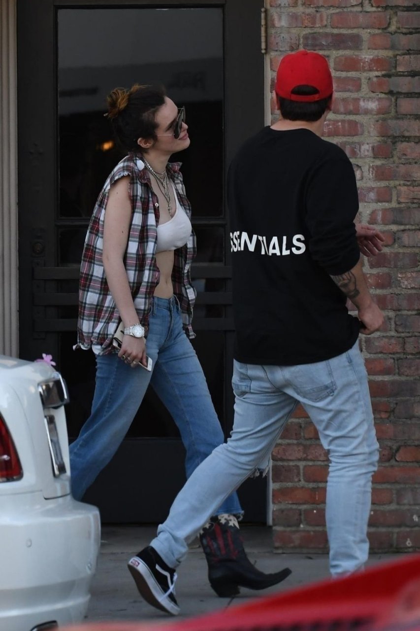 Bella Thorne se le llenan los ojos de lágrimas mientras almuerza con amigos en Los Ángeles, 30/03/2019. El grupo fue visto en Cafe Gratitude hablando y riendo mientras los ojos de Bella se llenaban de lágrimas. No está claro si lloraba de tristeza o de risa durante la comida.