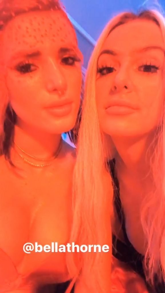 Dirty bunny Bella Thorne lleva lencería roja caliente en el set con Tana Mongeau – Instagram, Snapchat, 16/10/2017. Bella Thorne es actriz (Amityville), cantante, estrella de las redes sociales. Edad – 20 (8 de octubre de 1997).