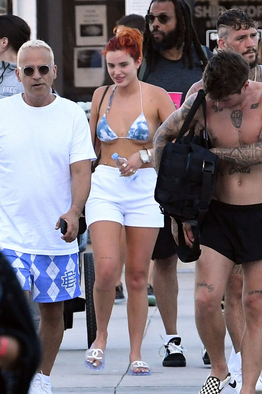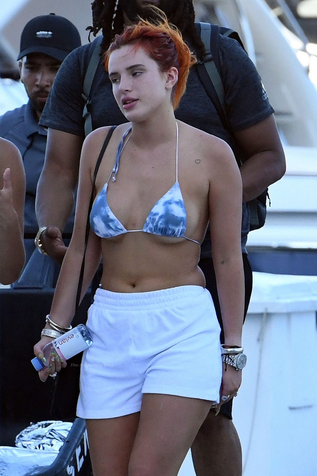 Bella Thorne deslumbra con un bikini azul y blanco en Miami (47 fotos)