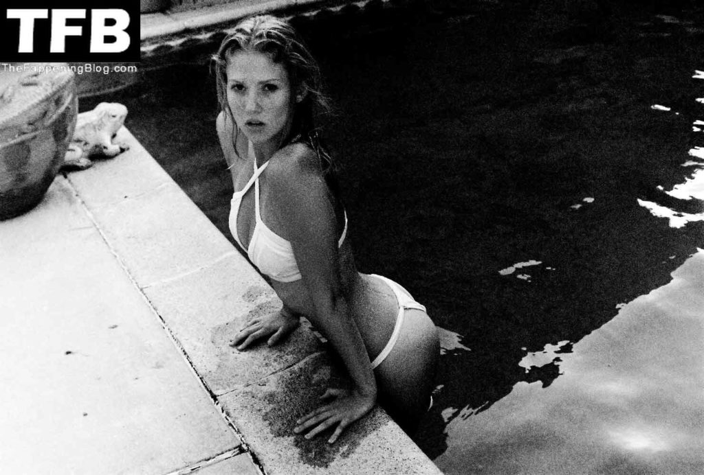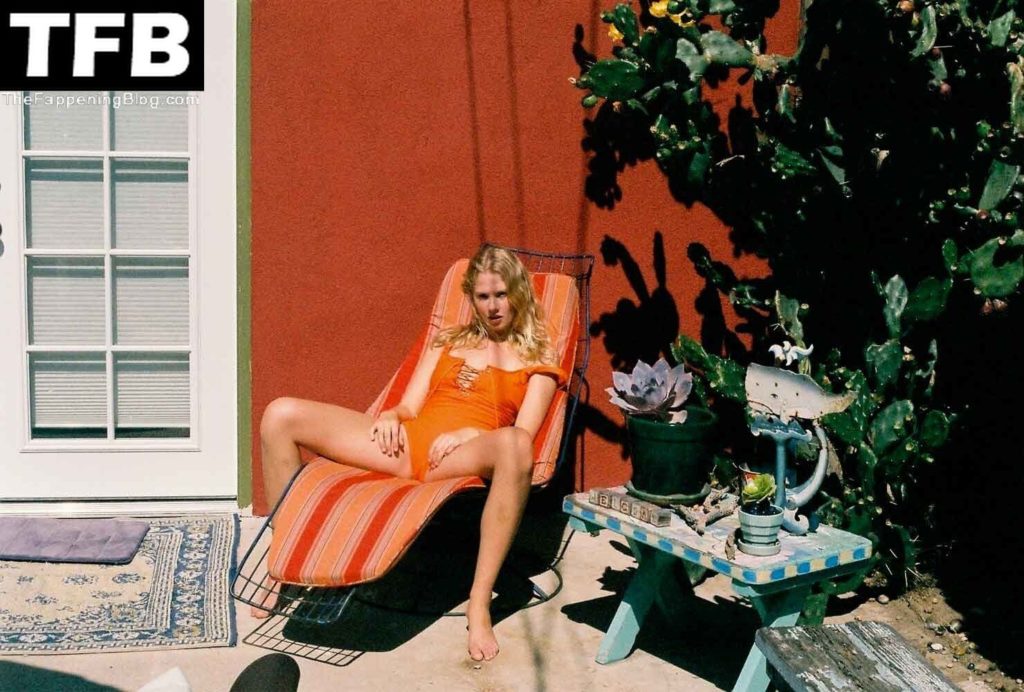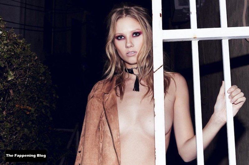 Model Berit Birkeland muestra sus pechos desnudos y posa en bikinis en una sesión de fotos promocional de Matthew Comer para Drench Swim (2016).