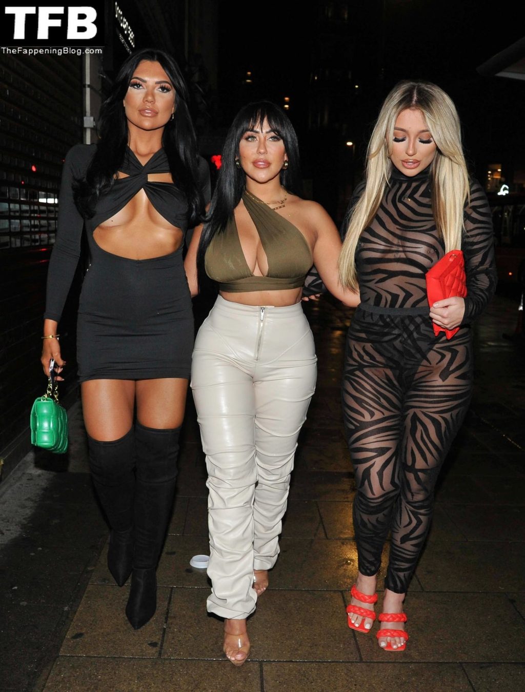 Geordie Shore’s Bethan Kershaw muestra sus pezones perforados con un atuendo transparente durante una noche con Sophie Kaseai y Abbie Holborn. Sophie ha sido fotografiada por primera vez desde que se separó de su novio Lee Grey, mientras llegan al Bar Mook en Leeds, 24/10/2021.