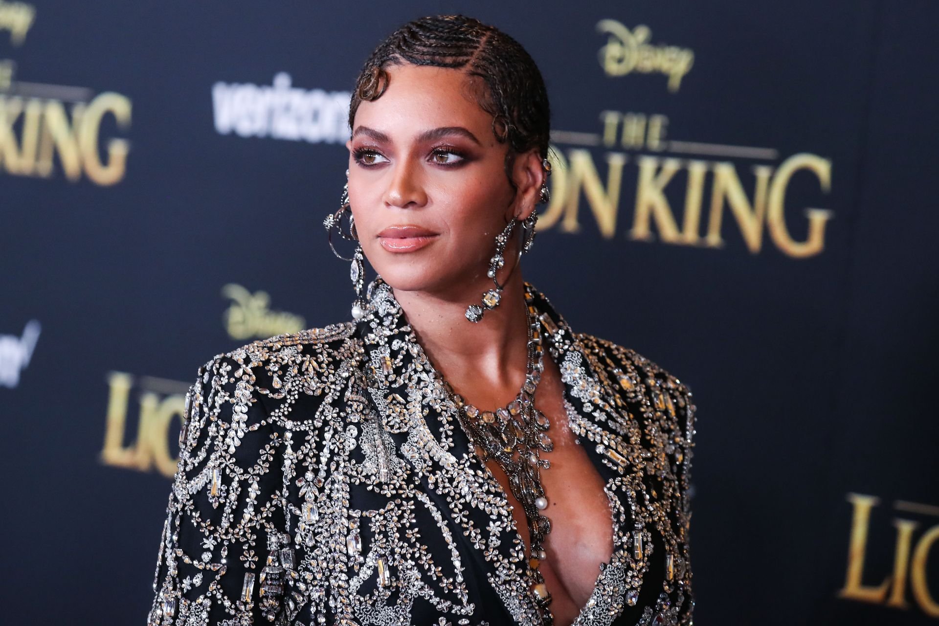 La cantante Beyonce Knowles Carter, vestida con un conjunto de Alexander McQueen y joyas de Lorraine Schwartz, llega al estreno mundial de “El Rey León” de Disney, celebrado en el Dolby Theatre en Hollywood, Los Ángeles, 07/09/2019.