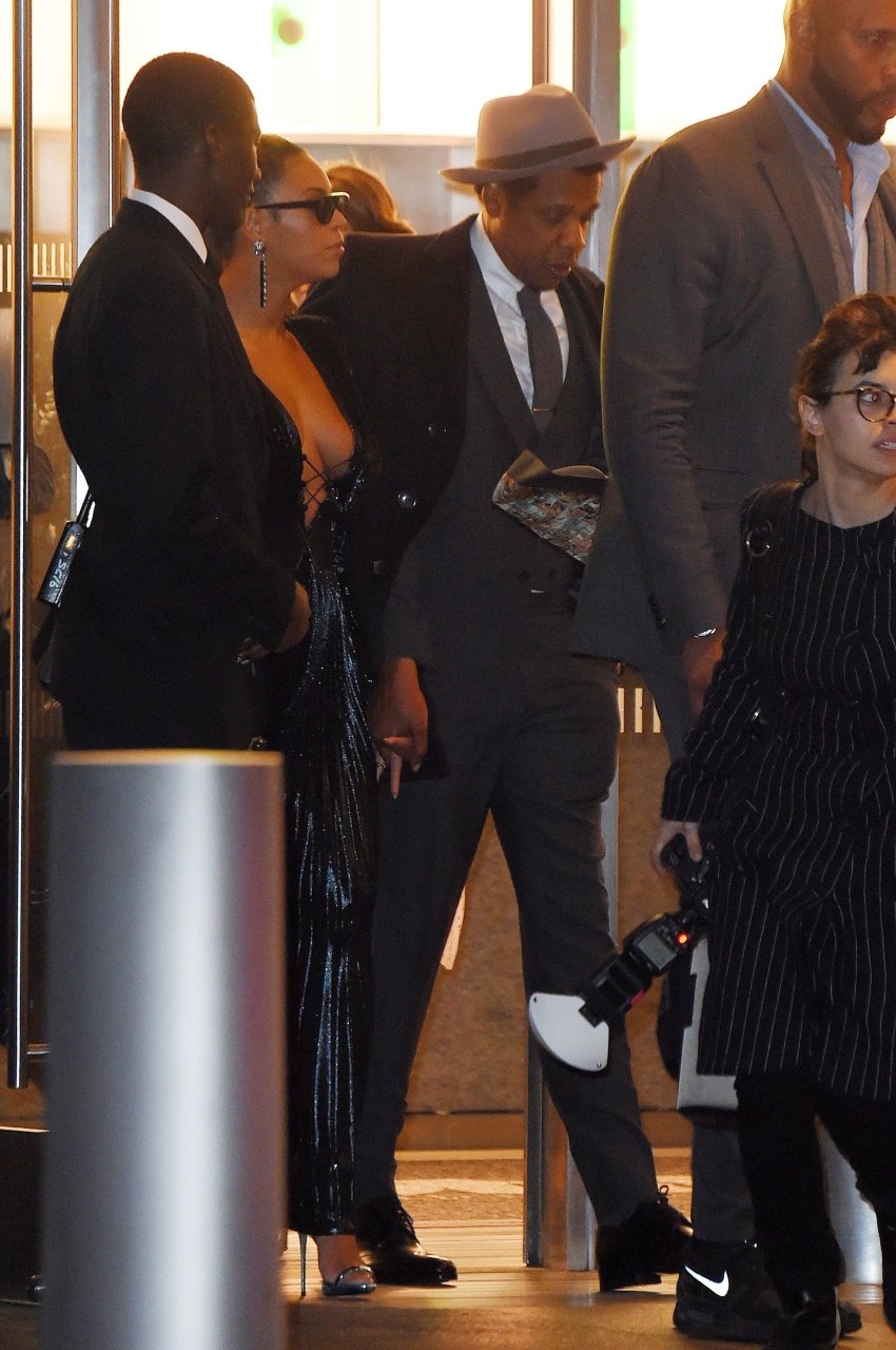 Beyoncé y Jay Z salen del One World Trade Center en Nueva York, 27/01/2018. Beyonce es una cantante y actriz estadounidense (Obsessed (2009)). Edad – 36 años.