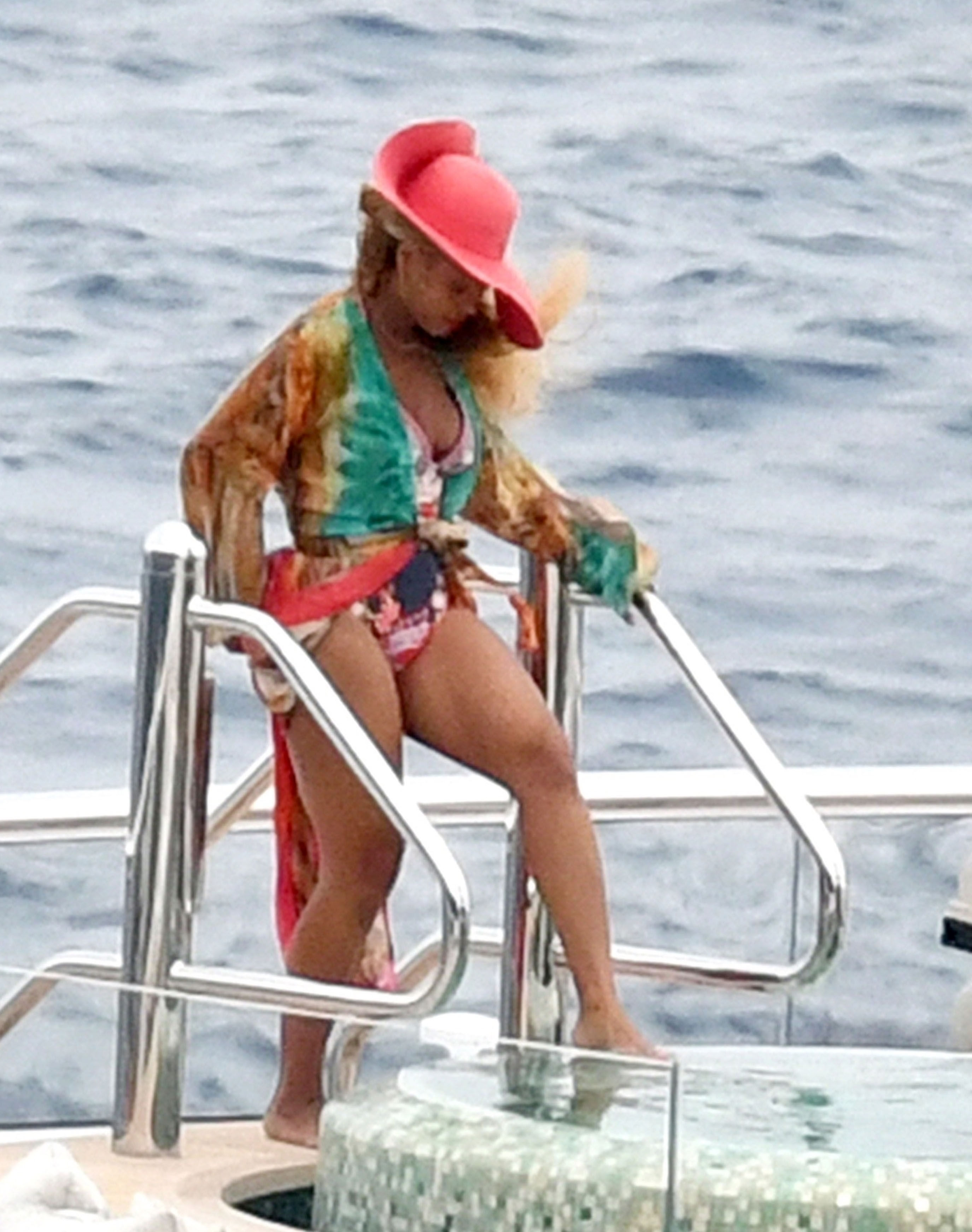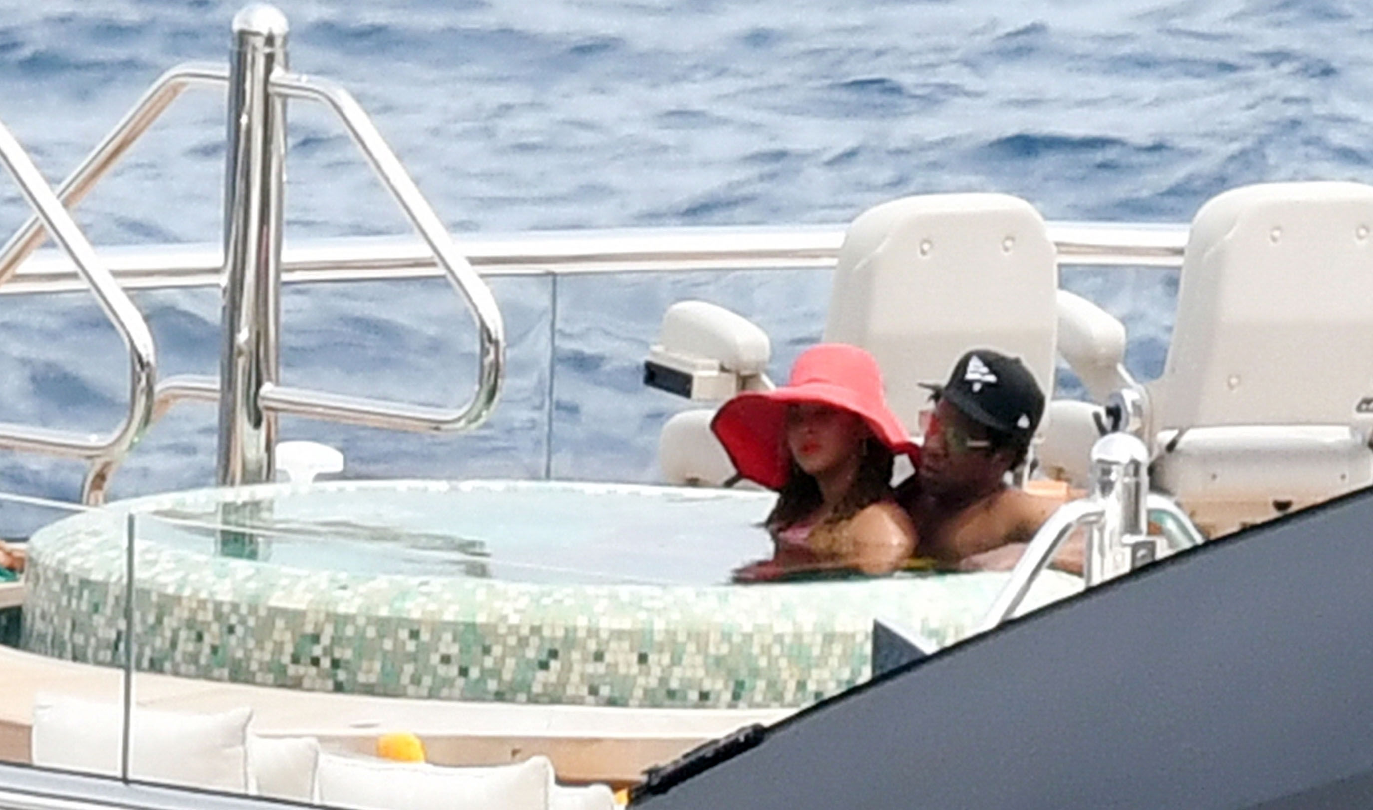 La cantante Beyoncé y su esposo, el rapero Jay Z, fueron vistos relajándose juntos en el jacuzzi de su yate de lujo mientras estaban de vacaciones en Capri, Italia, 23/07/2018.