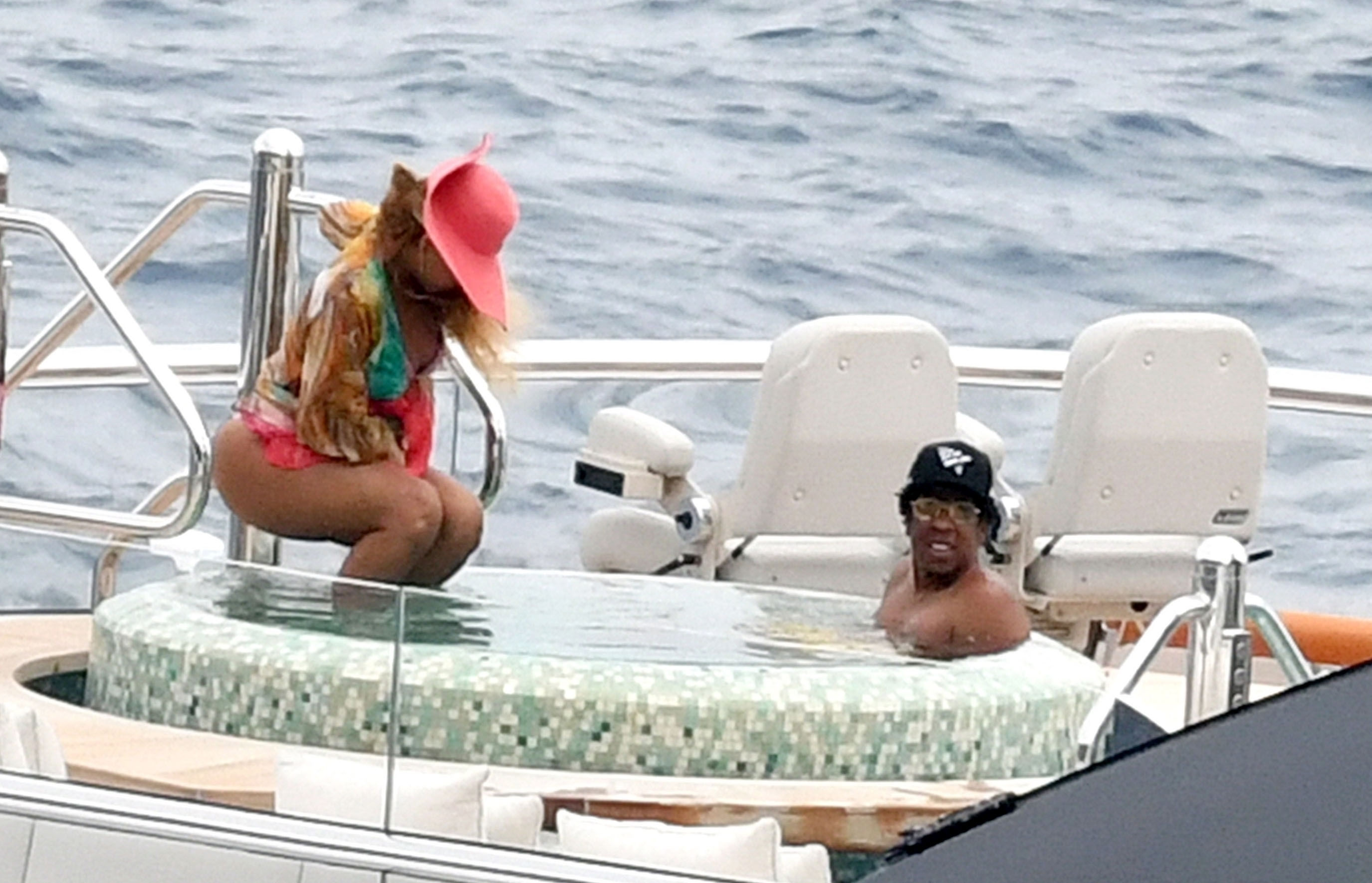 Los Carter fueron vistos tomando un baño en el jacuzzi y tomando algunas fotos para el álbum familiar mientras disfrutaban de un buen champán antes de que se uniera su hija bebé en el jacuzzi. Luego Beyoncé se fue y más tarde se unió su esposo Jay para un almuerzo familiar donde se veían muy relajados.