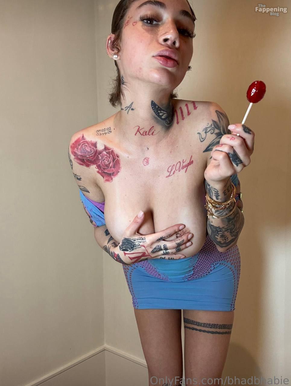 Mira a Bhad Bhabie soltando una atrevida provocación en topless, mostrando sus pechos perfectos y sus tatuajes.
