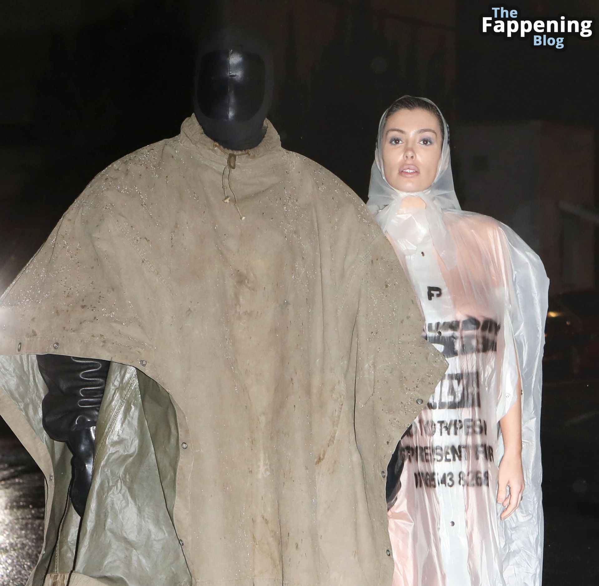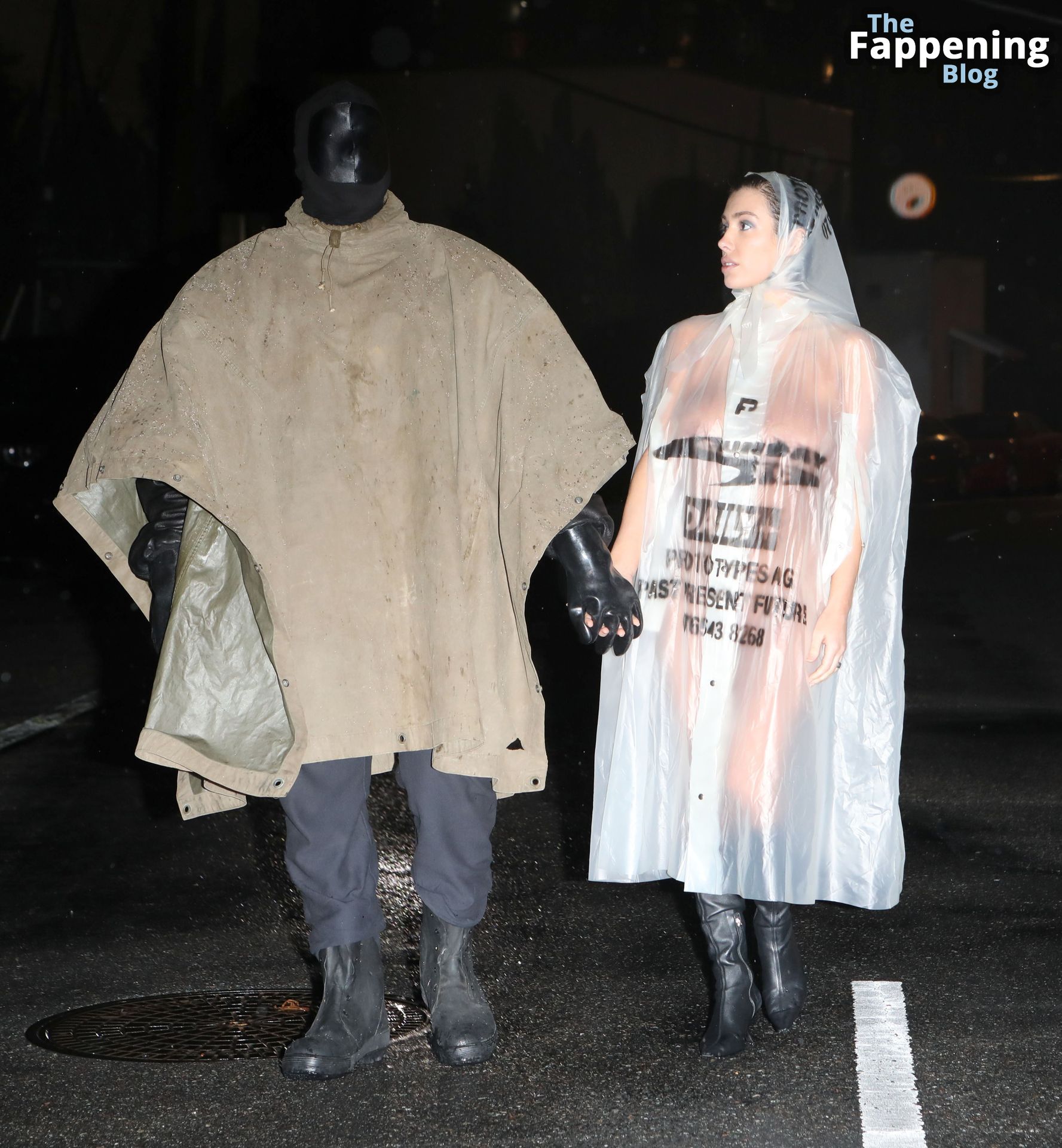 Mientras Kanye mantenía un aire de misterio con un conjunto completamente negro y una máscara, Bianca optó por parecer desnuda bajo un impermeable transparente, mostrando todo para las cámaras. La entrada de la pareja a la reunión también incluyó la presencia del amigo cercano de Kanye, Nick Cannon.