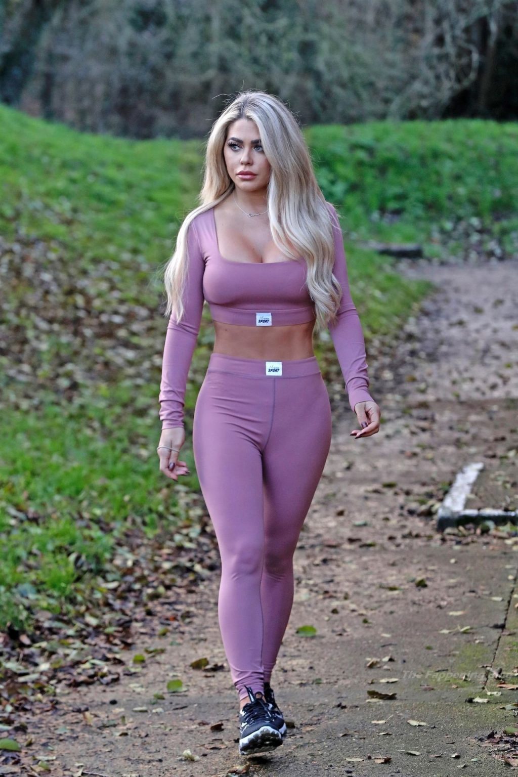 Modelo y hija de Paul Gascoigne, Bianca Gascoigne, muestra su trasero firme y nuevos pechos con un conjunto morado de dos piezas en Kent, 18/01/2021.