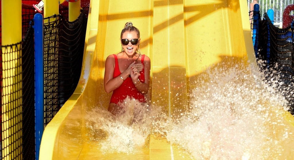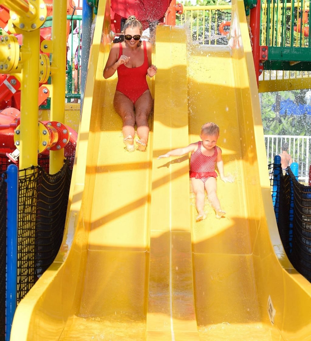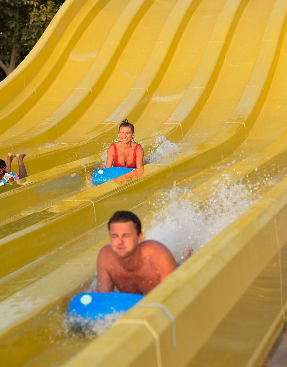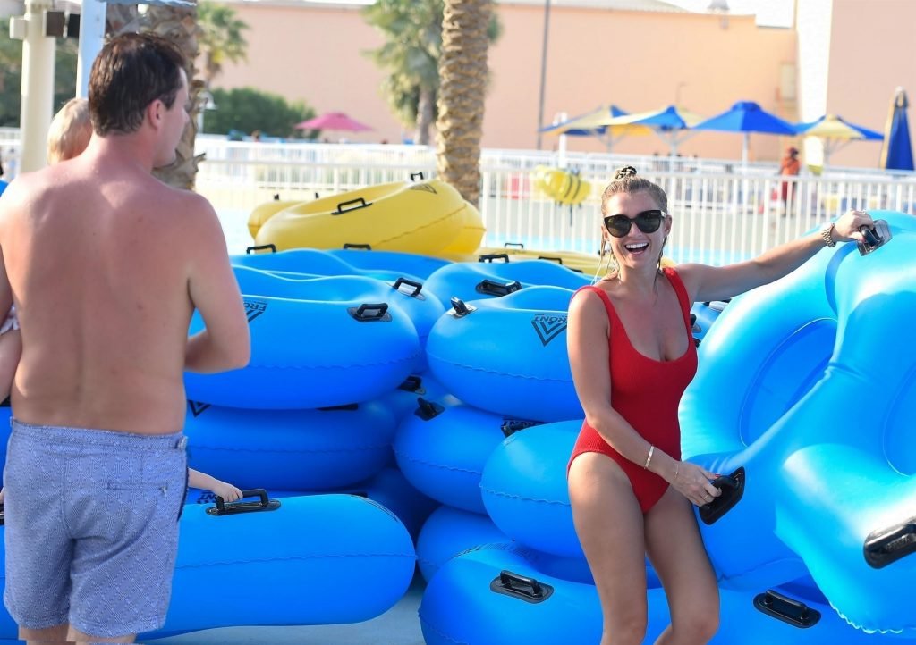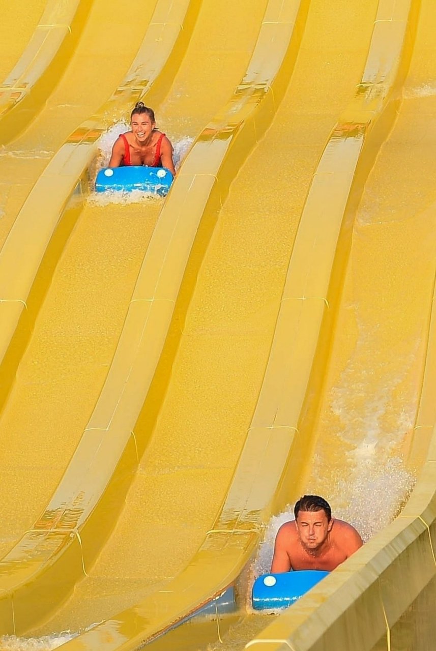 La estrella de TOWIE Billie Faiers está pasando un buen rato bajo el sol de los Emiratos en un parque acuático en Dubái con su pareja Greg Shepherd, 11/02/2018. Billie aparecerá en nuestras pantallas en la nueva serie de televisión “The Mummy Diaries” con su hermana Sam Faiers.