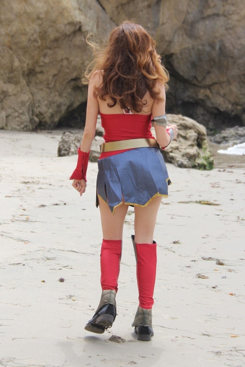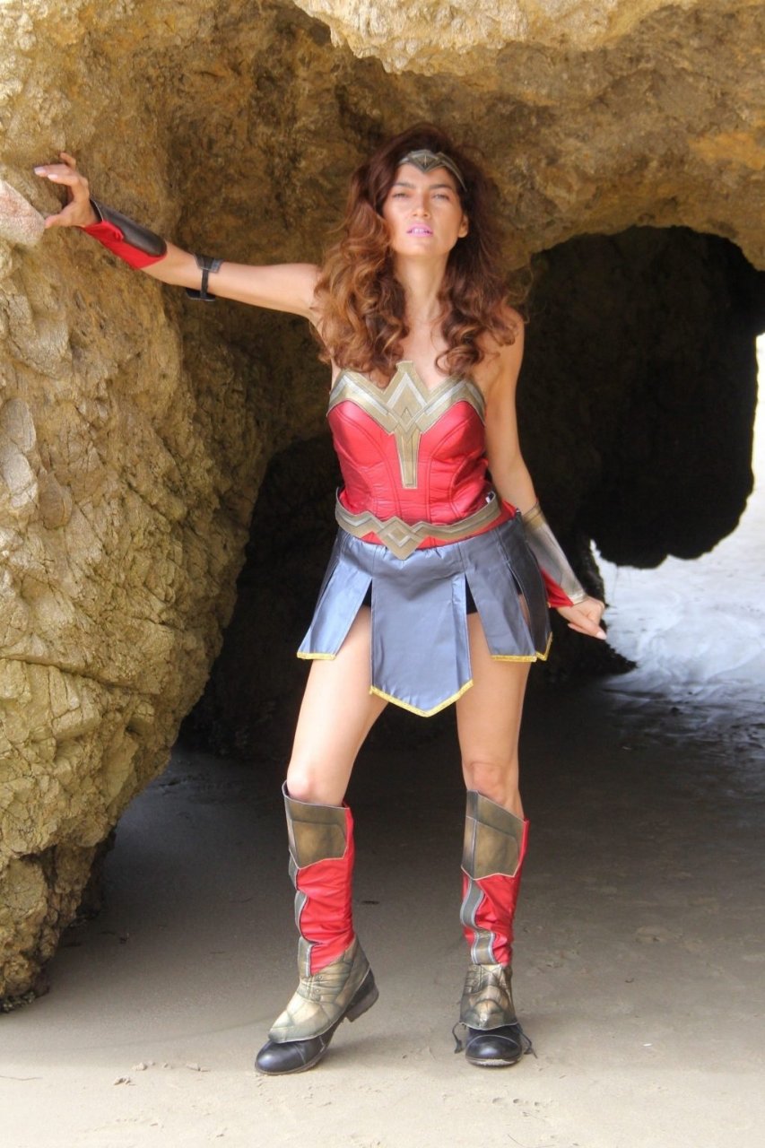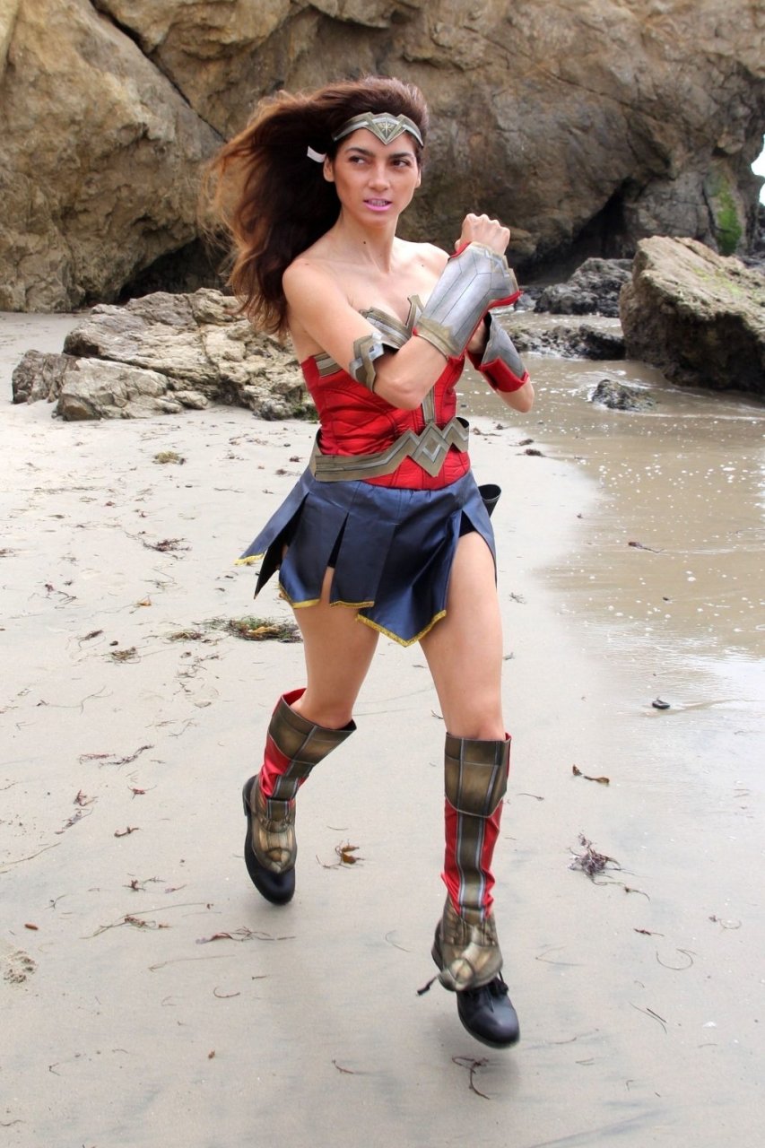 Blanca Blanco se prepara para la Comic-Con con una sesión de fotos de Wonder Woman en la playa de Malibu, 20/07/2018. La ex actriz de 37 años mostró una versión económica de la superheroína.