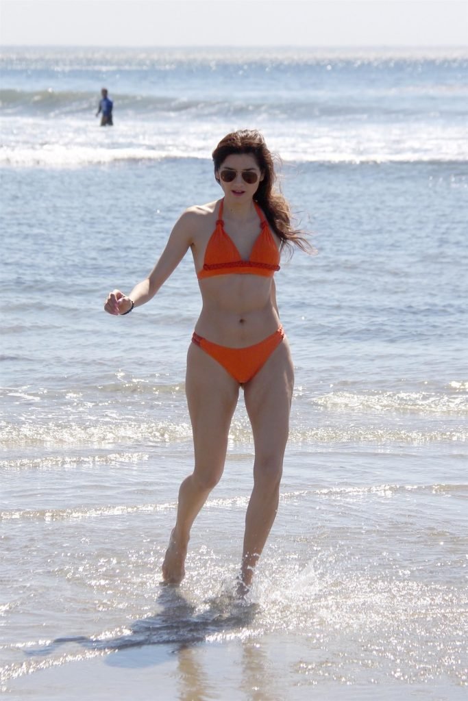 La actriz Blanca Blanco mostró su sexy cuerpo de milf mientras paseaba por la playa en Malibu con un sexy bikini naranja, 03/04/2018.