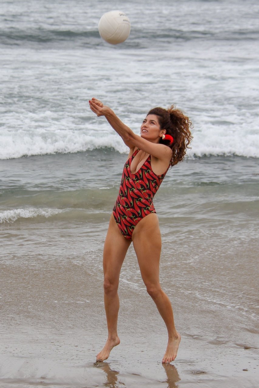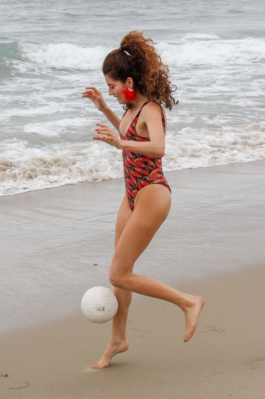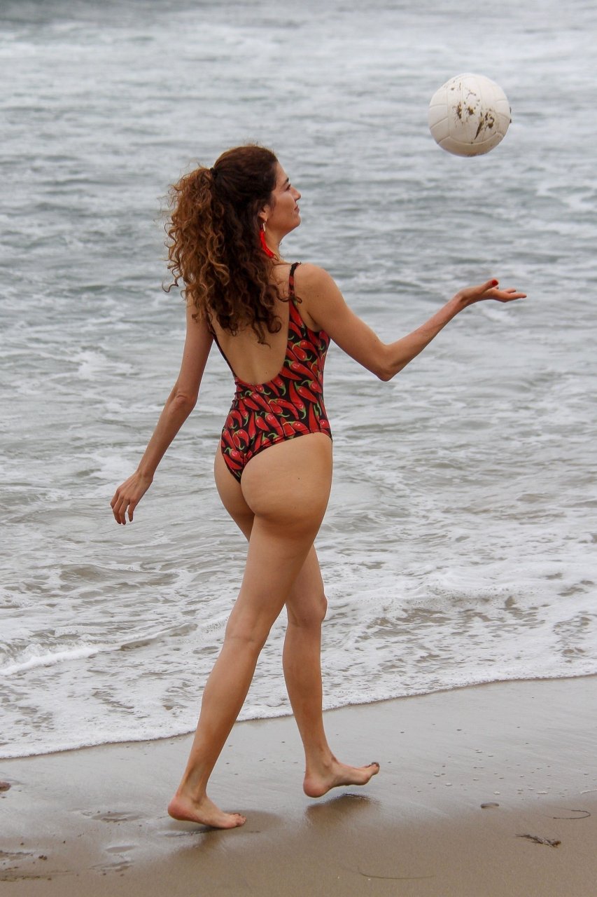 La actriz Blanca Blanco muestra sus habilidades en el voleibol mientras disfruta de un día de verano en Malibu, 19/08/2018. ¿Qué hay del fútbol?