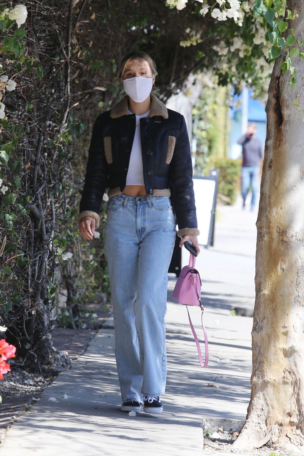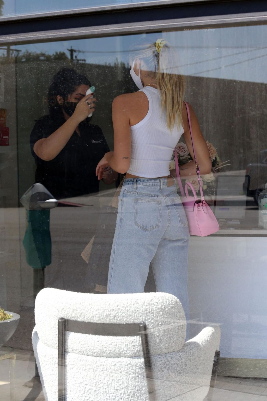 Alexis Ren de buen humor mientras se dirige a un salón el martes por la tarde. La modelo de Instagram se toma la temperatura al entrar.