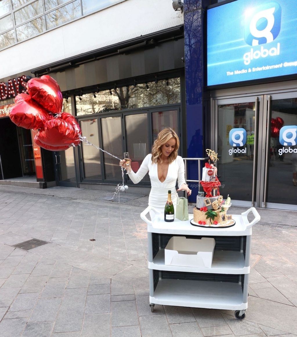 La actriz y presentadora de radio Amanda Holden es vista celebrando su 50º cumpleaños fuera de los Estudios Global Radio en Londres, 02/12/2021.