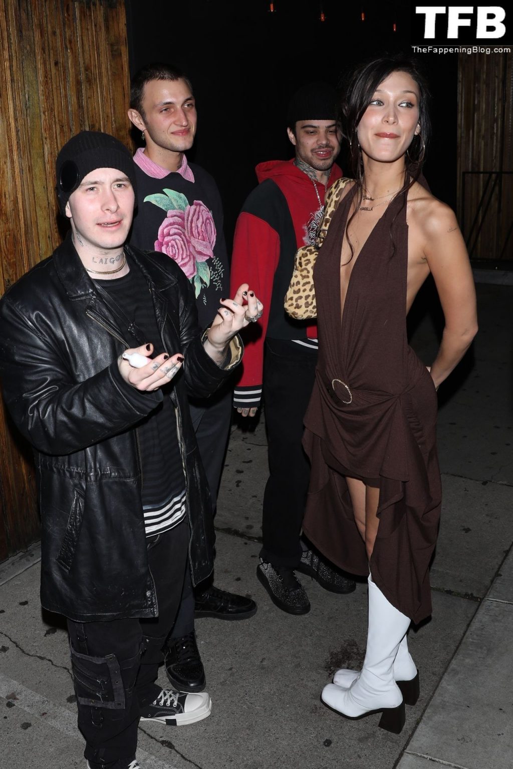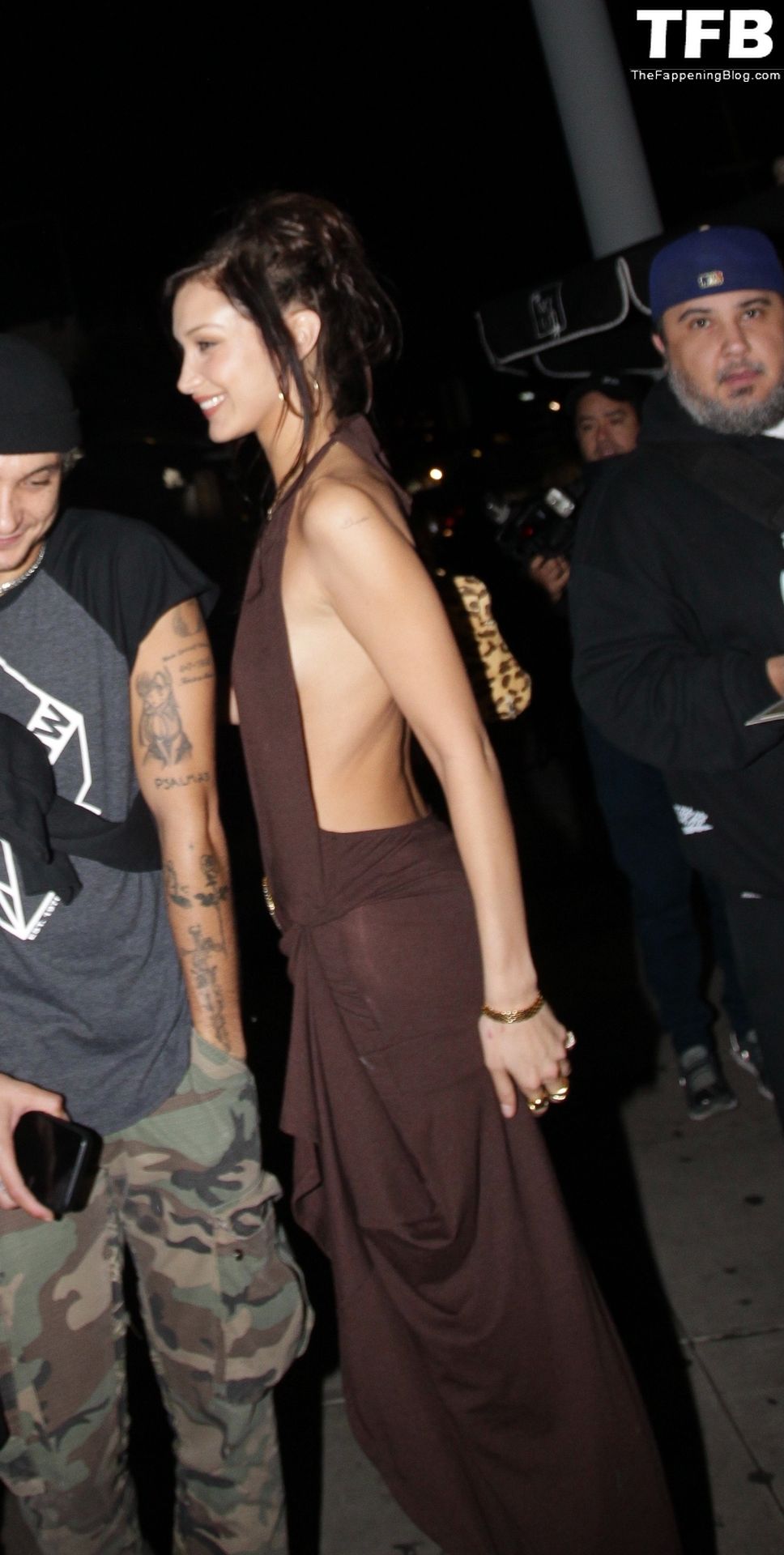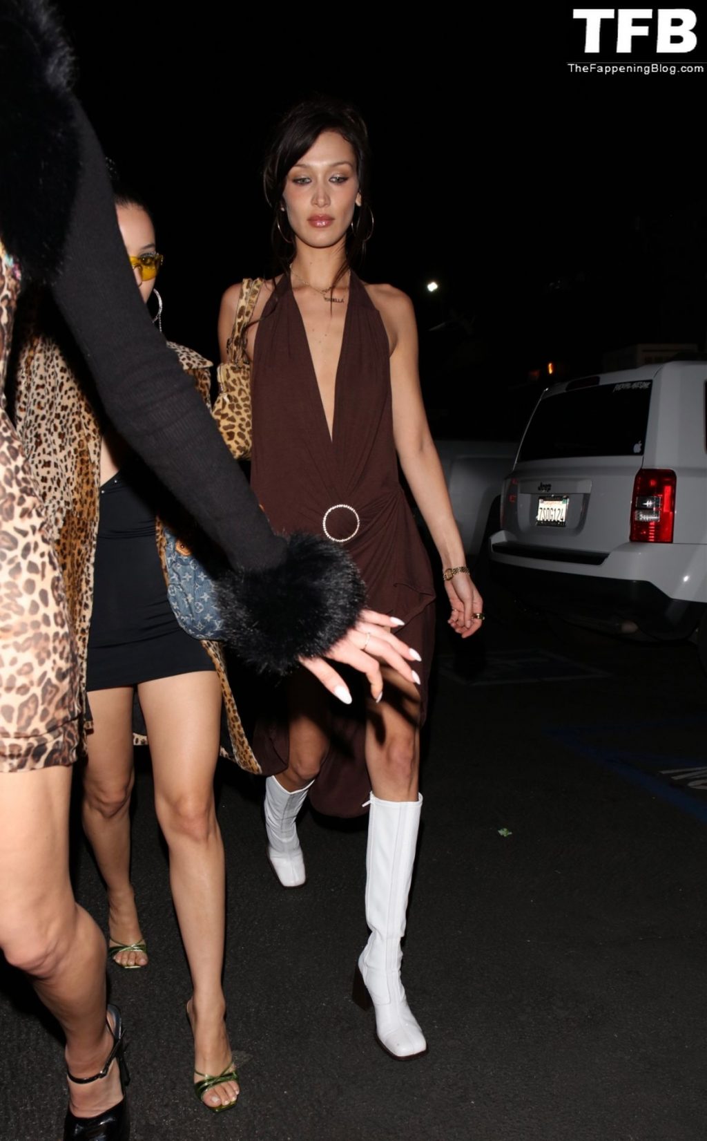 Bella Hadid camina entre una multitud de paparazzi después de disfrutar de la cena en el restaurante Craig’s con sus amigos en West Hollywood, 15/01/2022.