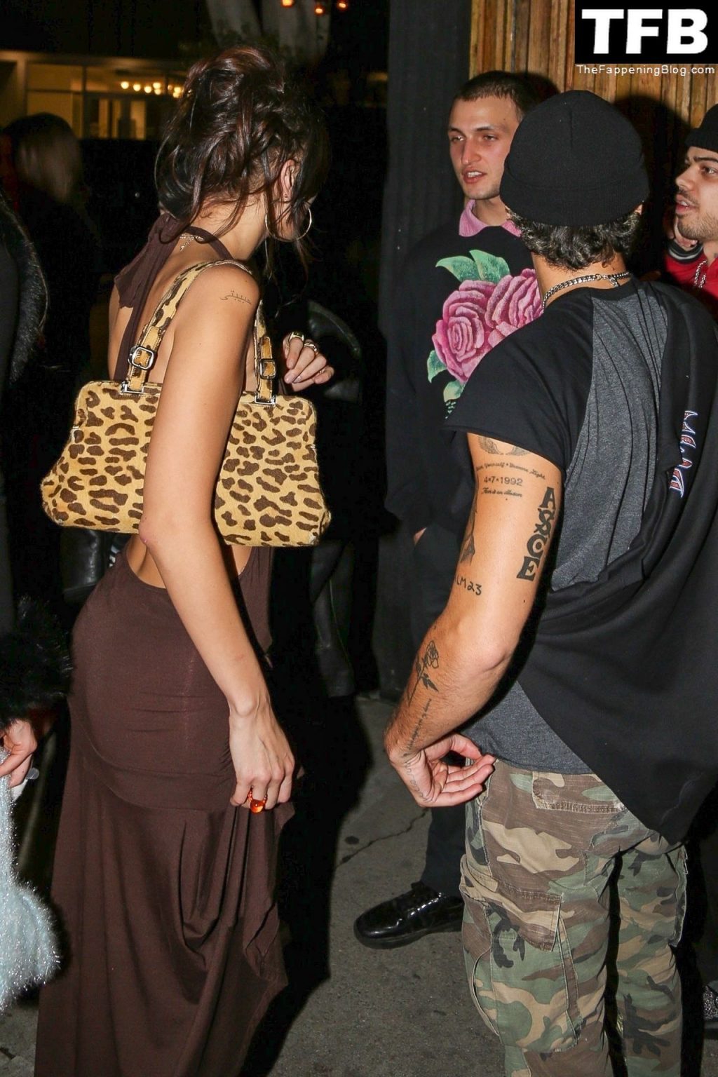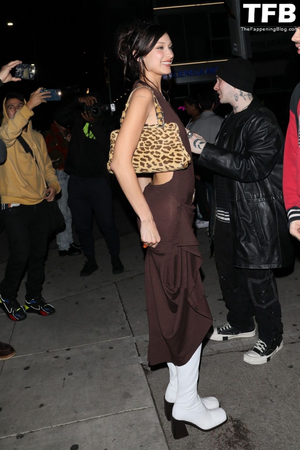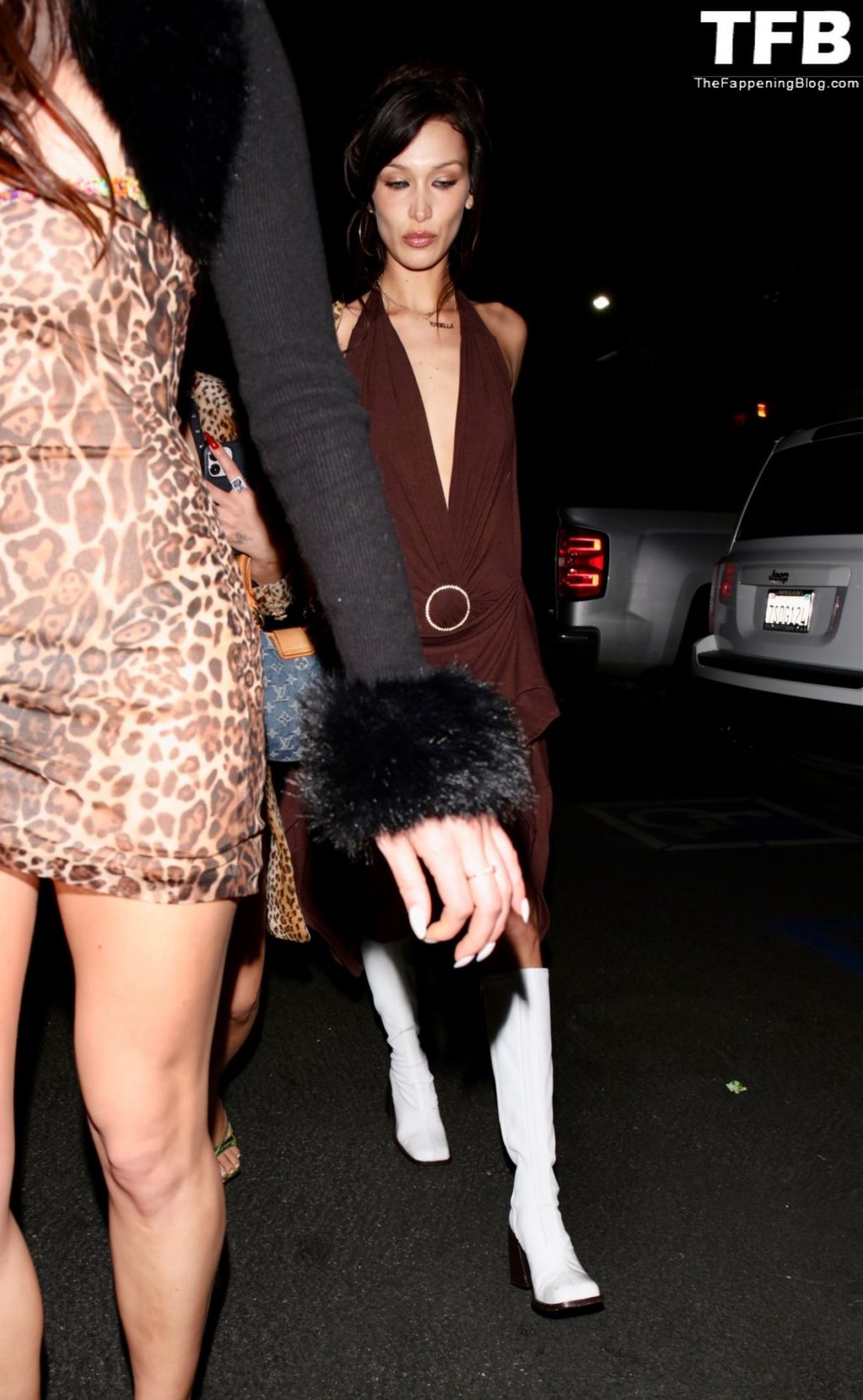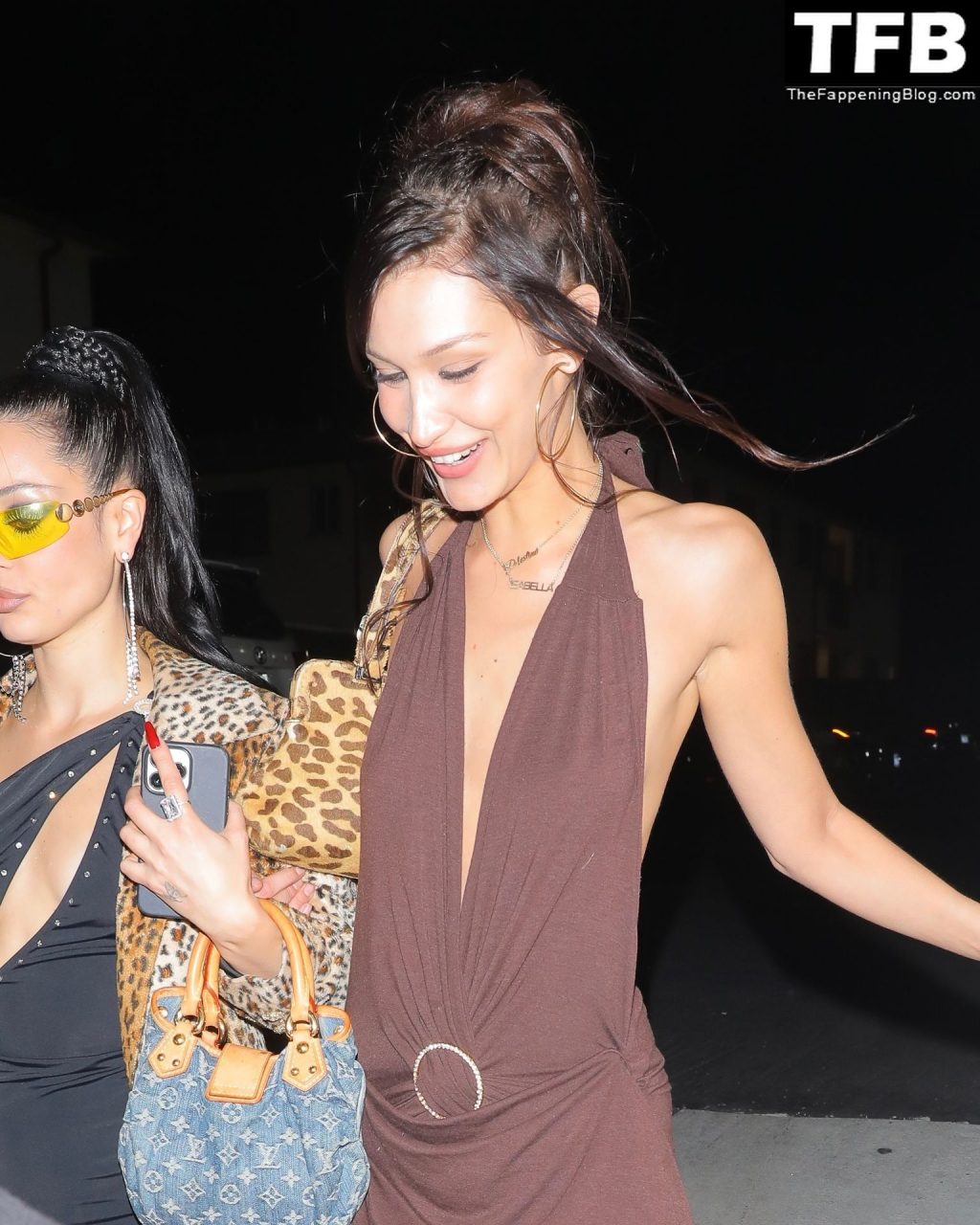 Bella Hadid camina entre una multitud de paparazzi después de disfrutar de la cena en el restaurante Craig’s con sus amigos en West Hollywood, 15/01/2022.