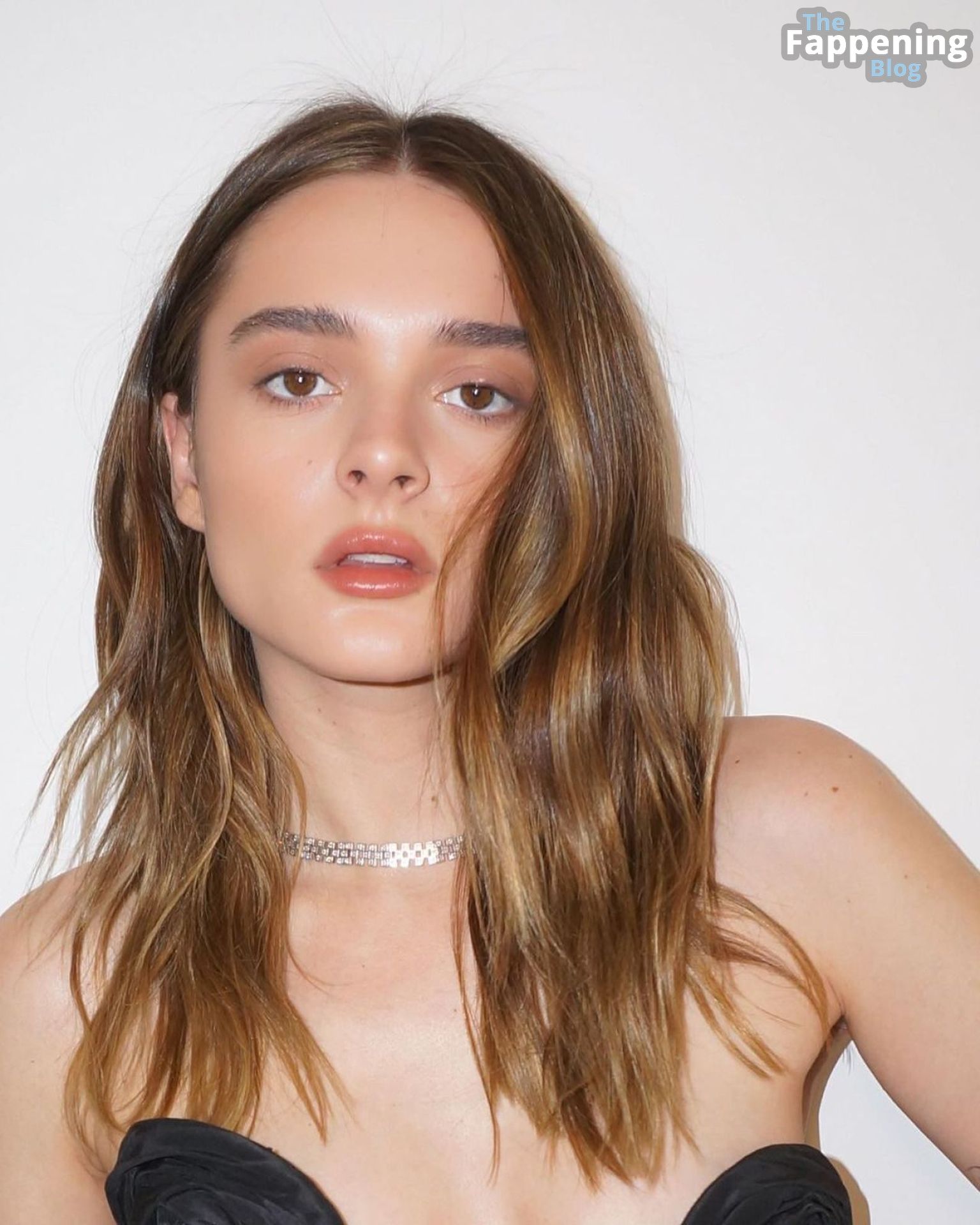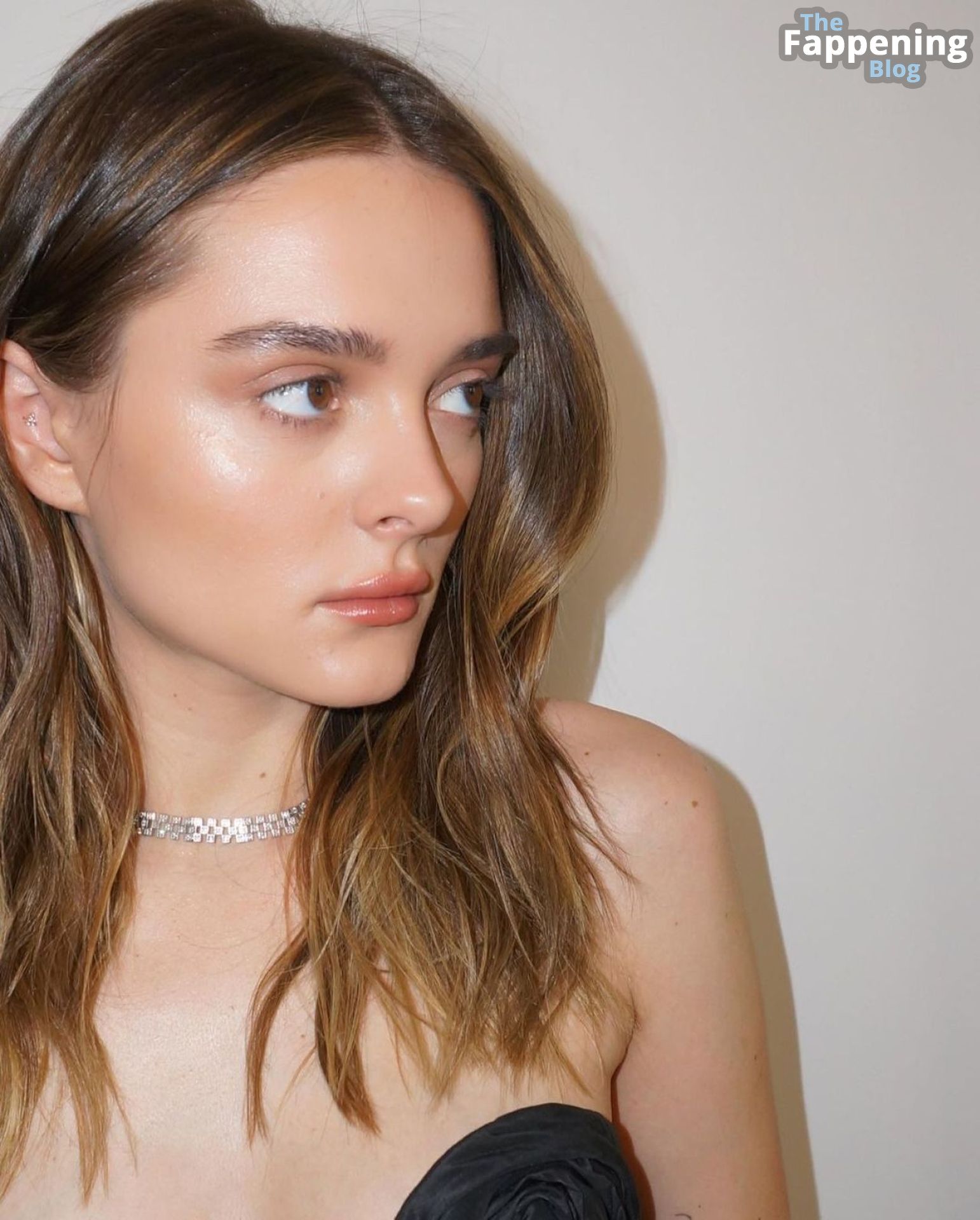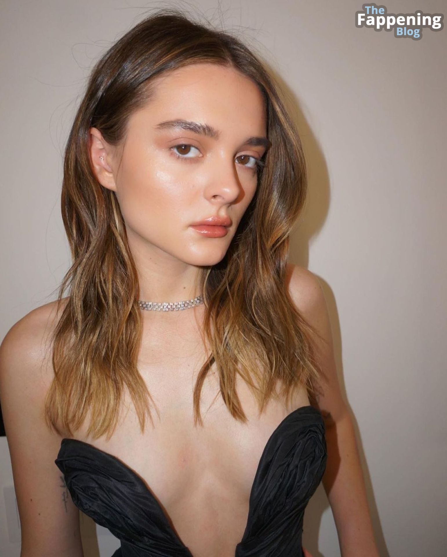 En el desfile de moda de Carolina Herrera en Nueva York, Charlotte Lawrence atrae todas las miradas con un audaz vestido negro que revela su escote y su sexy pecho.