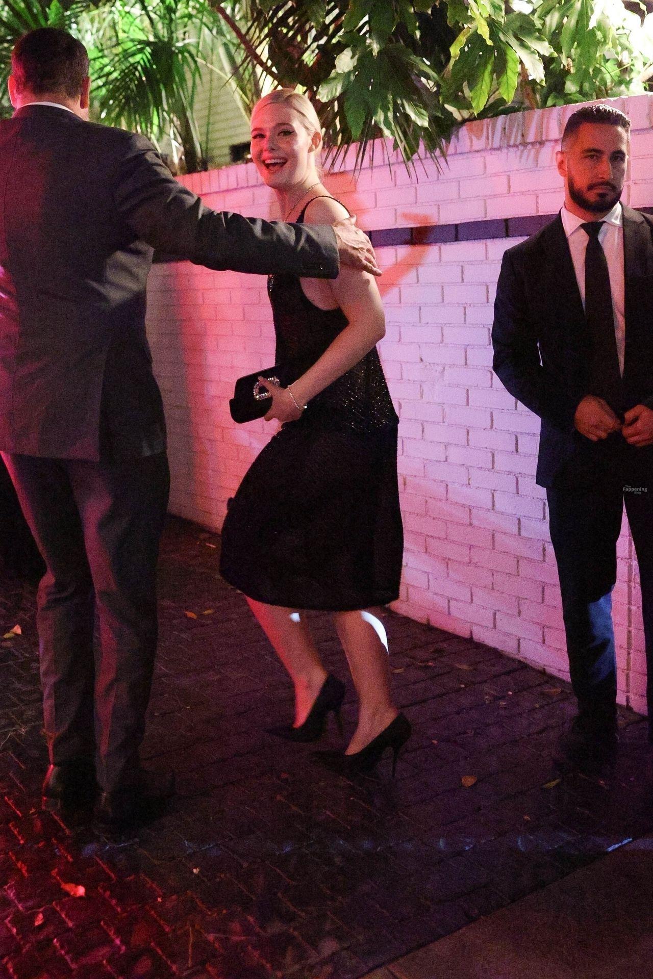 Elle Fanning apareció en la fiesta posterior de Armani en Chateau Marmont en LA después de la Gala del Museo de la Academia. Llevaba un vestido de malla negra transparente que dejaba ver sus pechos desnudos, junto con sus piernas y cuerpo sexys.