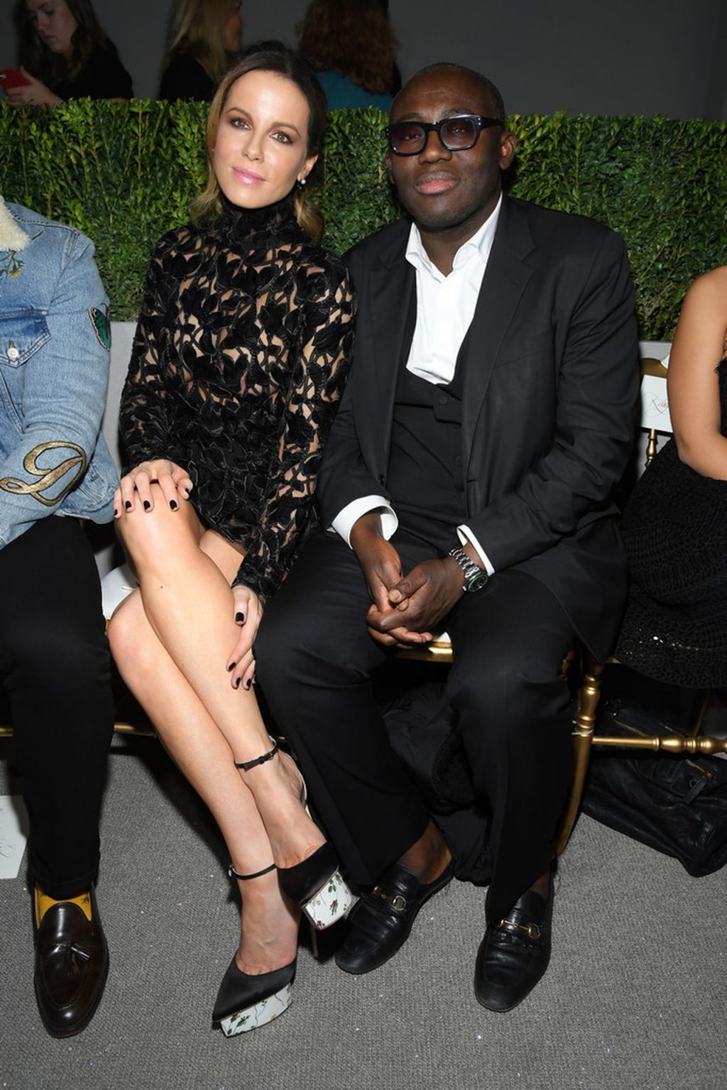 La hermosa actriz Kate Beckinsale fue fotografiada con un vestido negro transparente en el desfile de Alta Costura Primavera/Verano 2019 de Giambattista Valli como parte de la Semana de la Moda de París en París, 21/01/2019.
