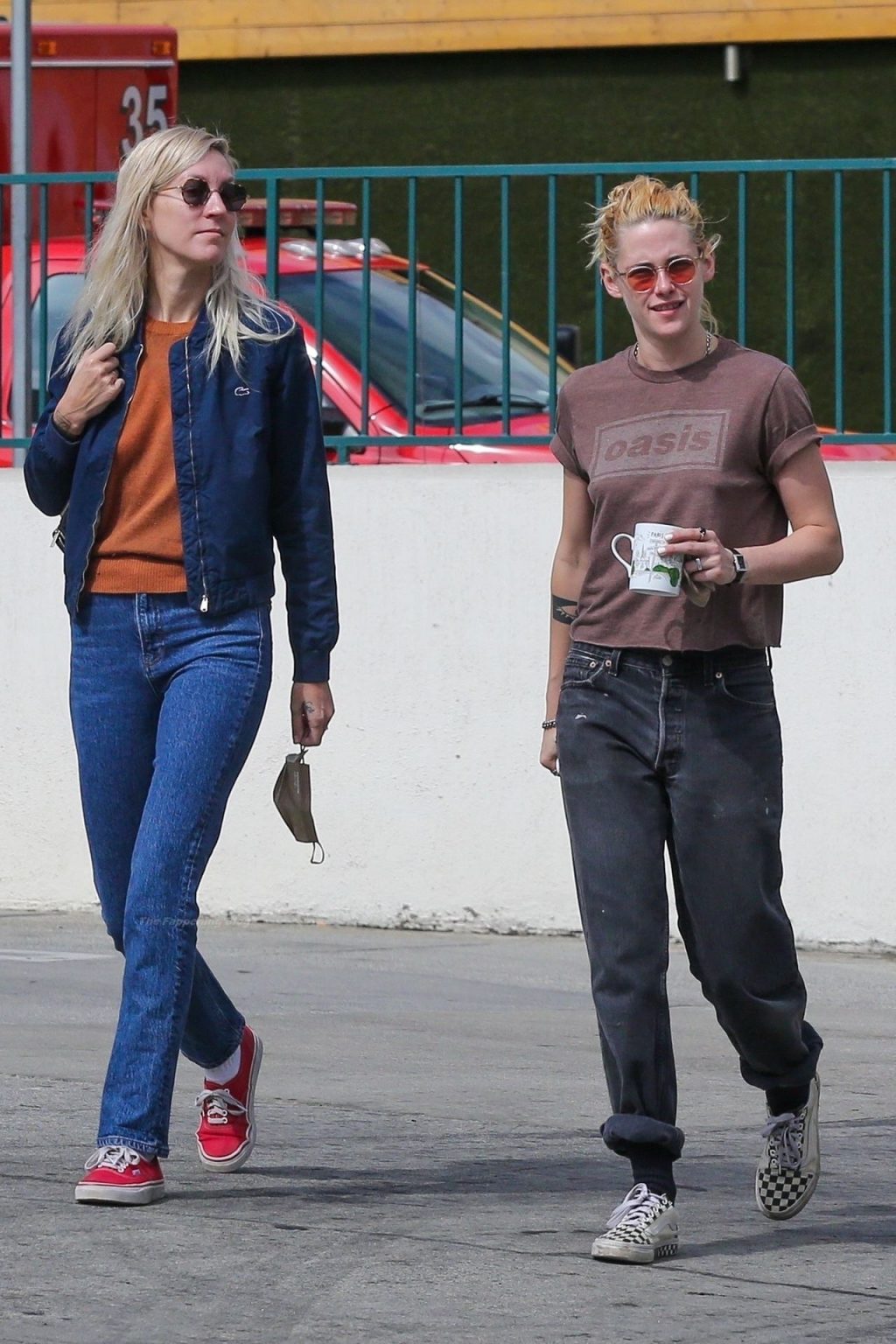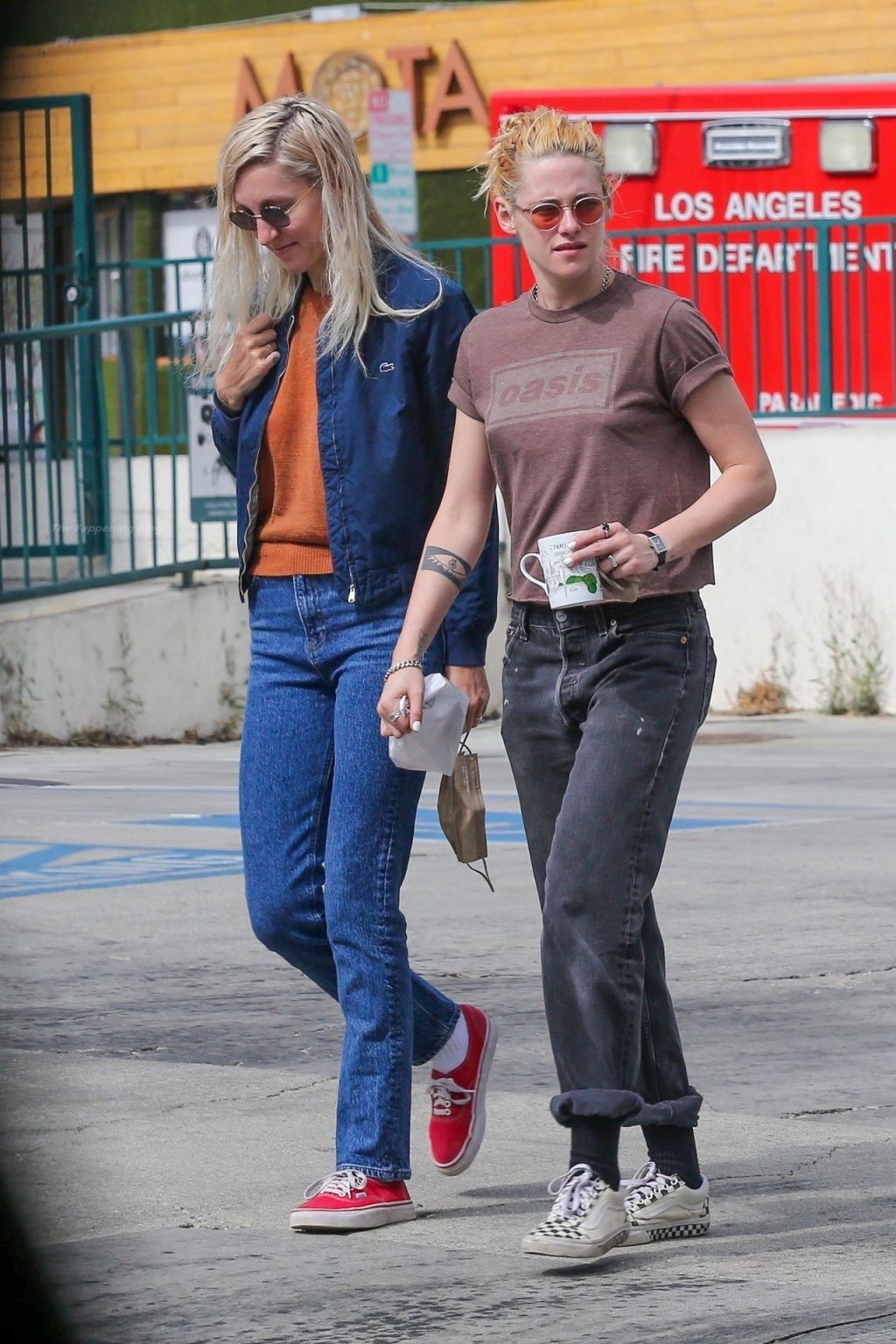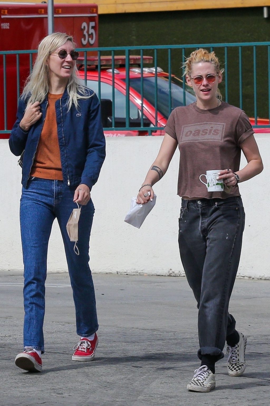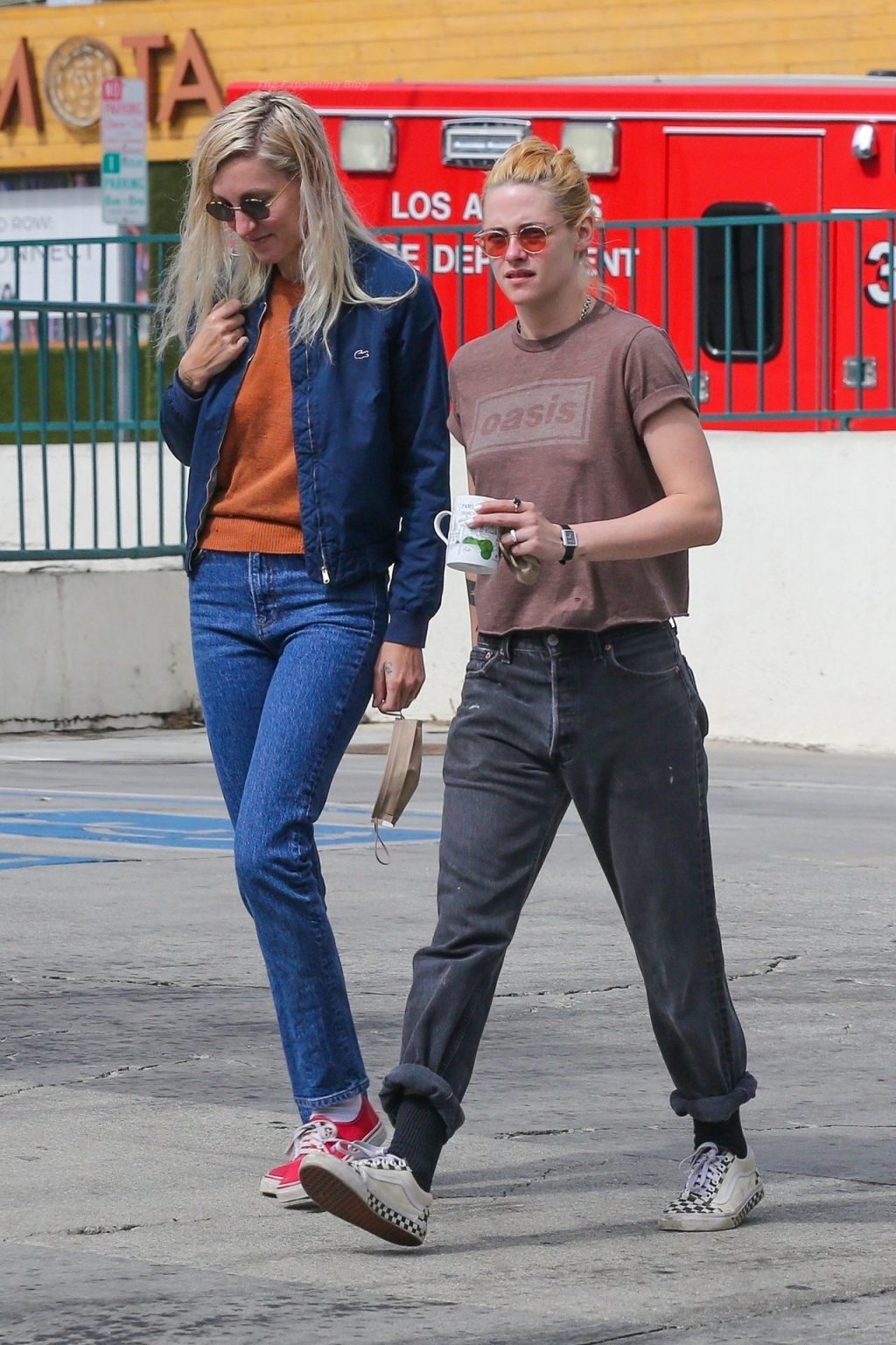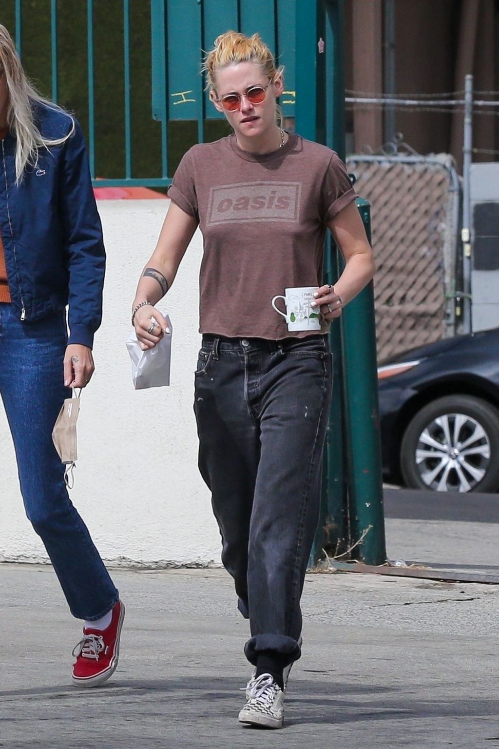 La estrella de The Fappening Kristen Stewart y Dylan Meyer visitan MOTA – Medicine Of The Angels, 18/09/2021. K-Stew llevaba una camiseta genial de la banda Oasis con jeans oscuros y zapatillas blancas.