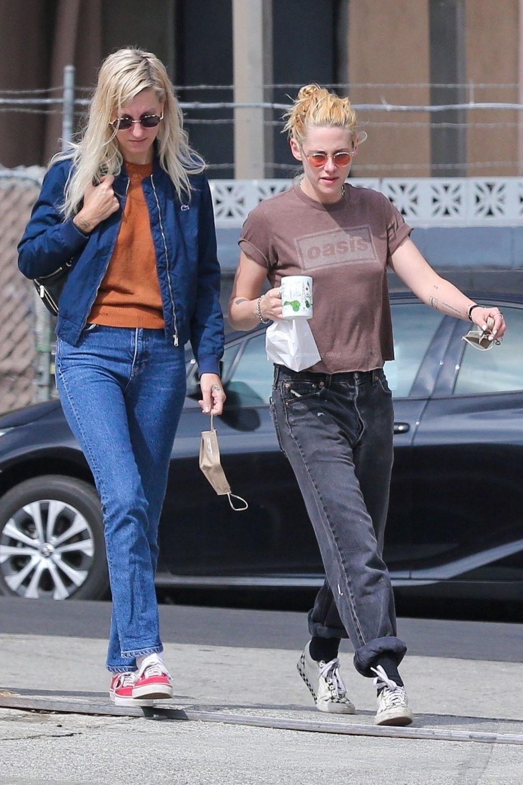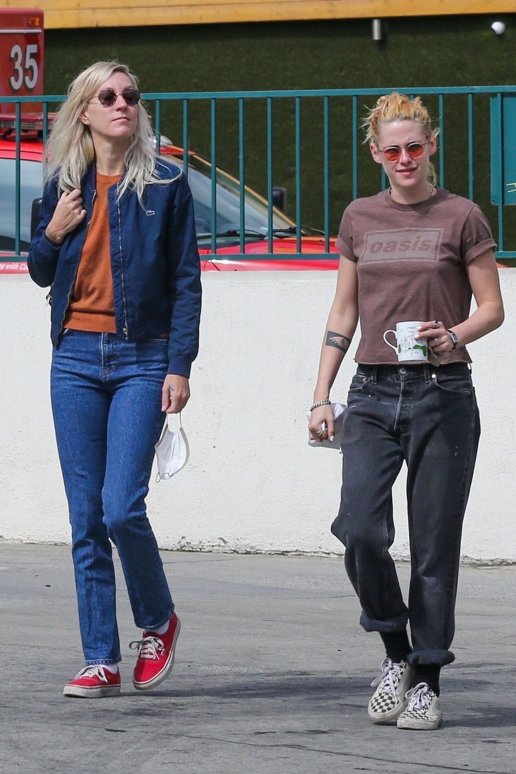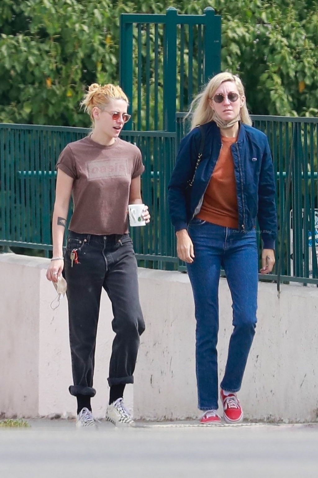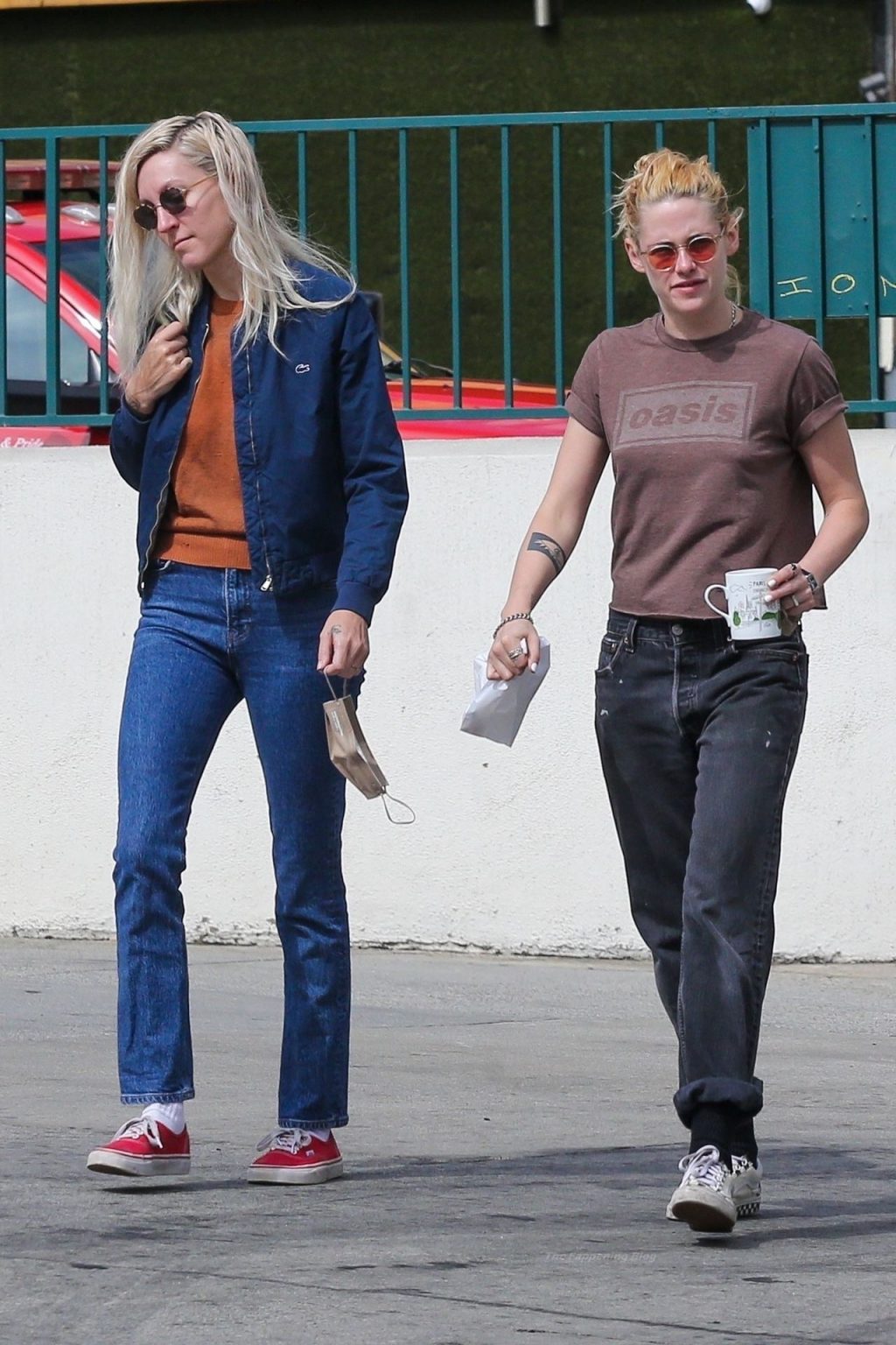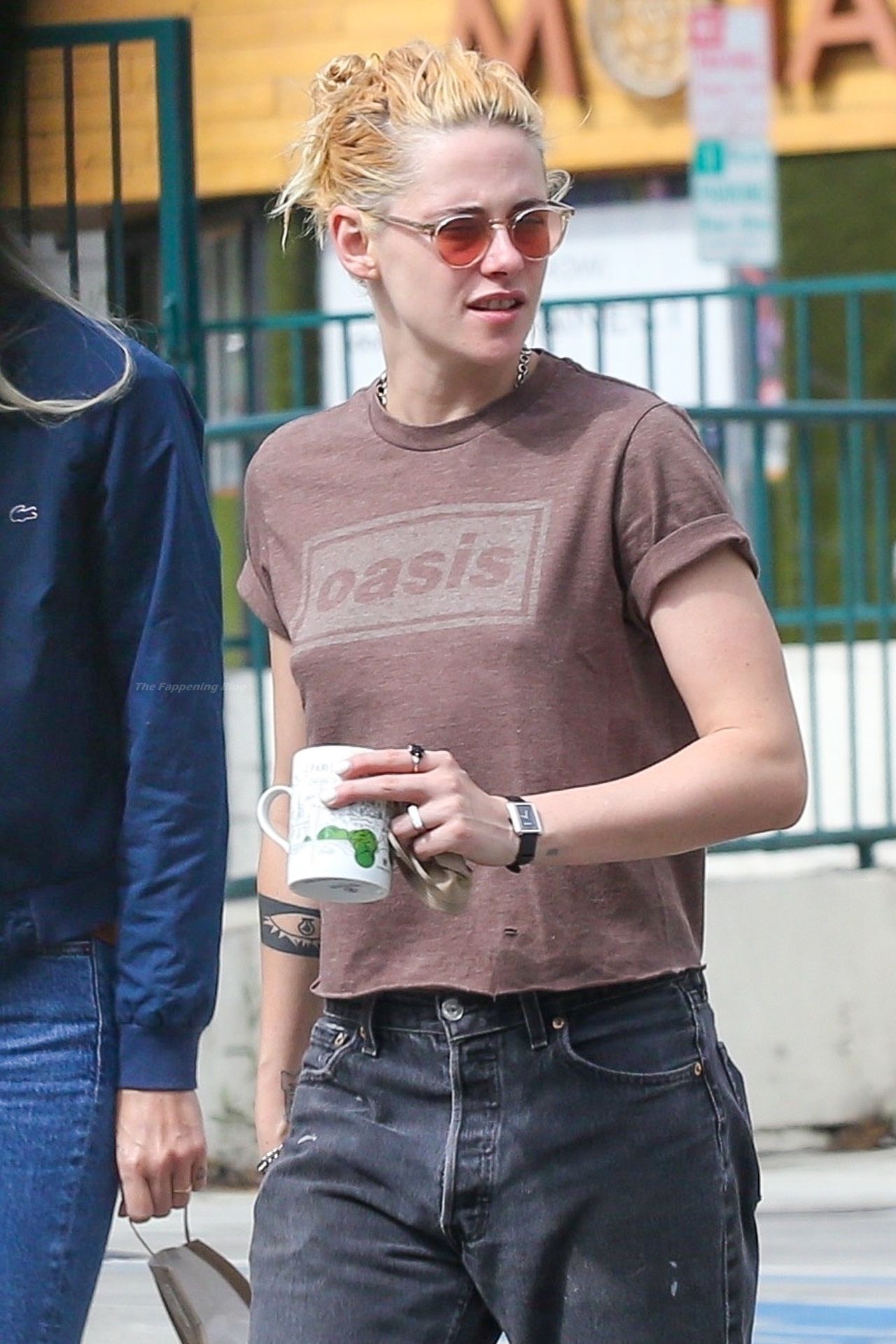 La estrella de The Fappening Kristen Stewart y Dylan Meyer visitan MOTA – Medicine Of The Angels, 18/09/2021. K-Stew llevaba una camiseta genial de la banda Oasis con jeans oscuros y zapatillas blancas.