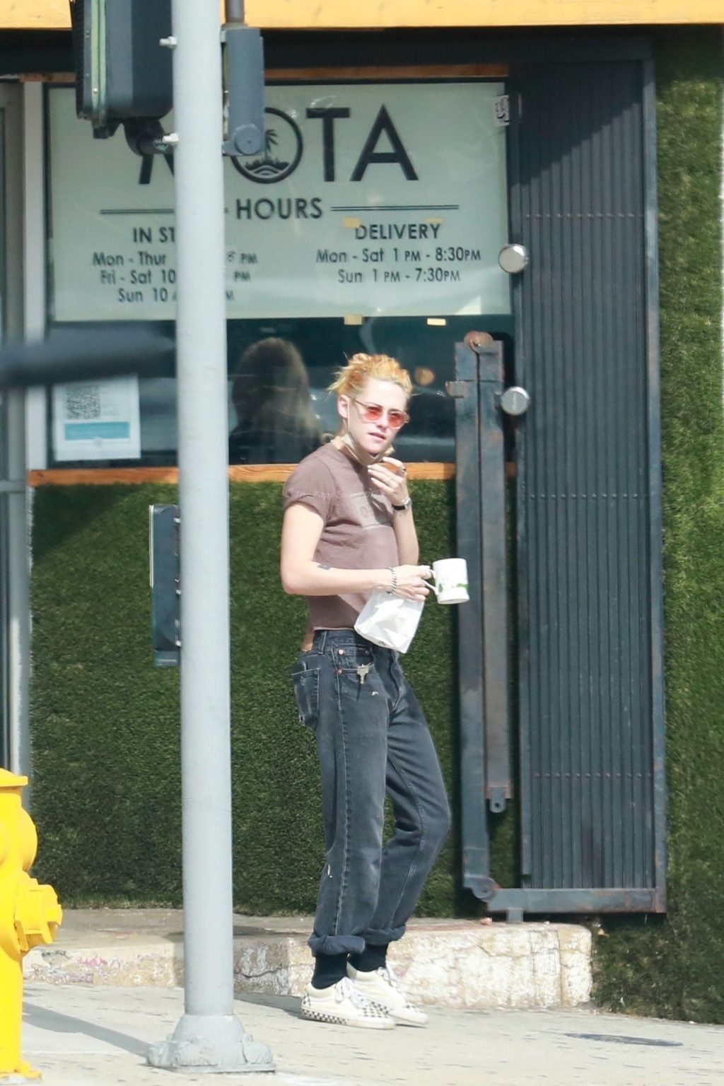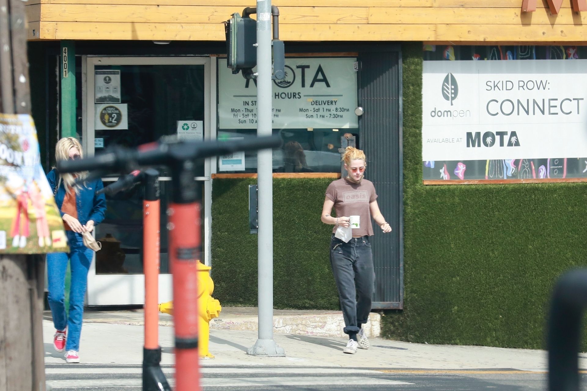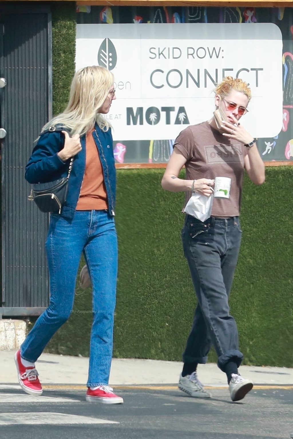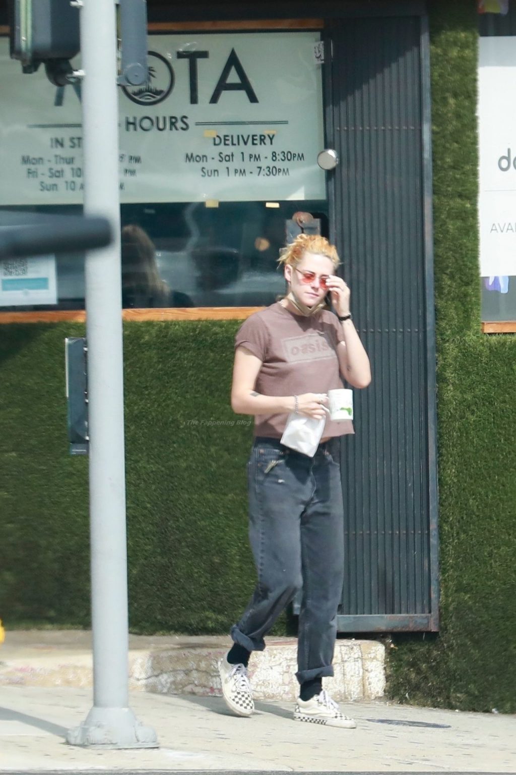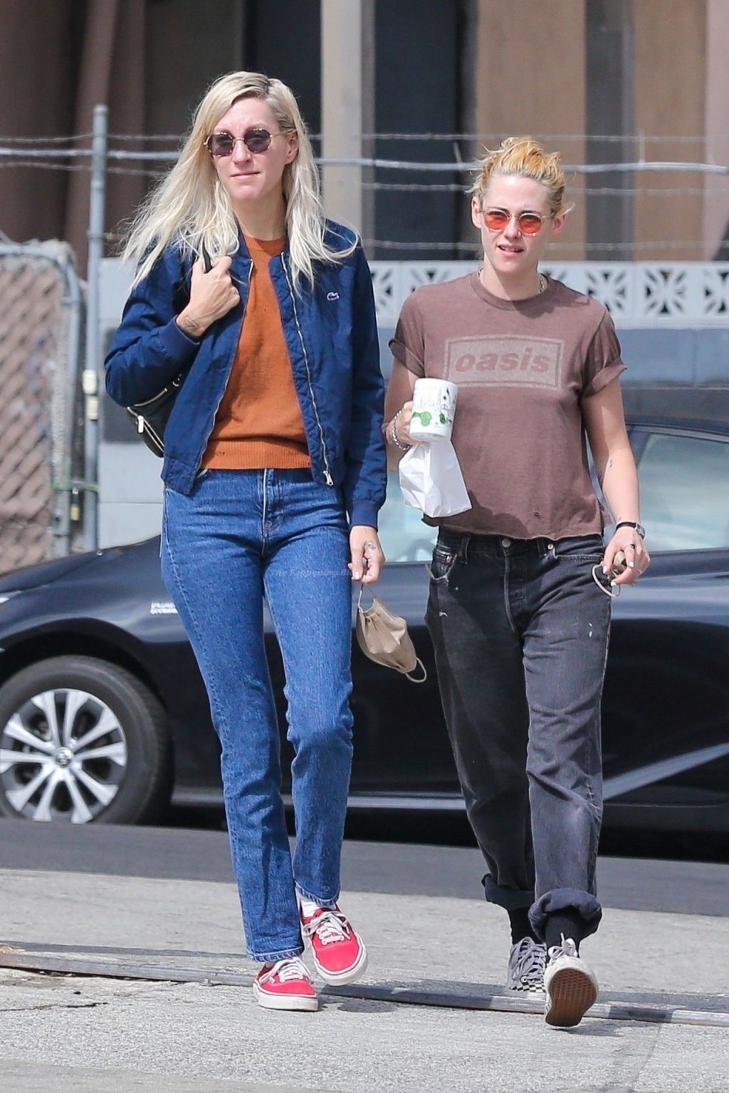 La estrella de The Fappening Kristen Stewart y Dylan Meyer visitan MOTA – Medicine Of The Angels, 18/09/2021. K-Stew llevaba una camiseta genial de la banda Oasis con jeans oscuros y zapatillas blancas.