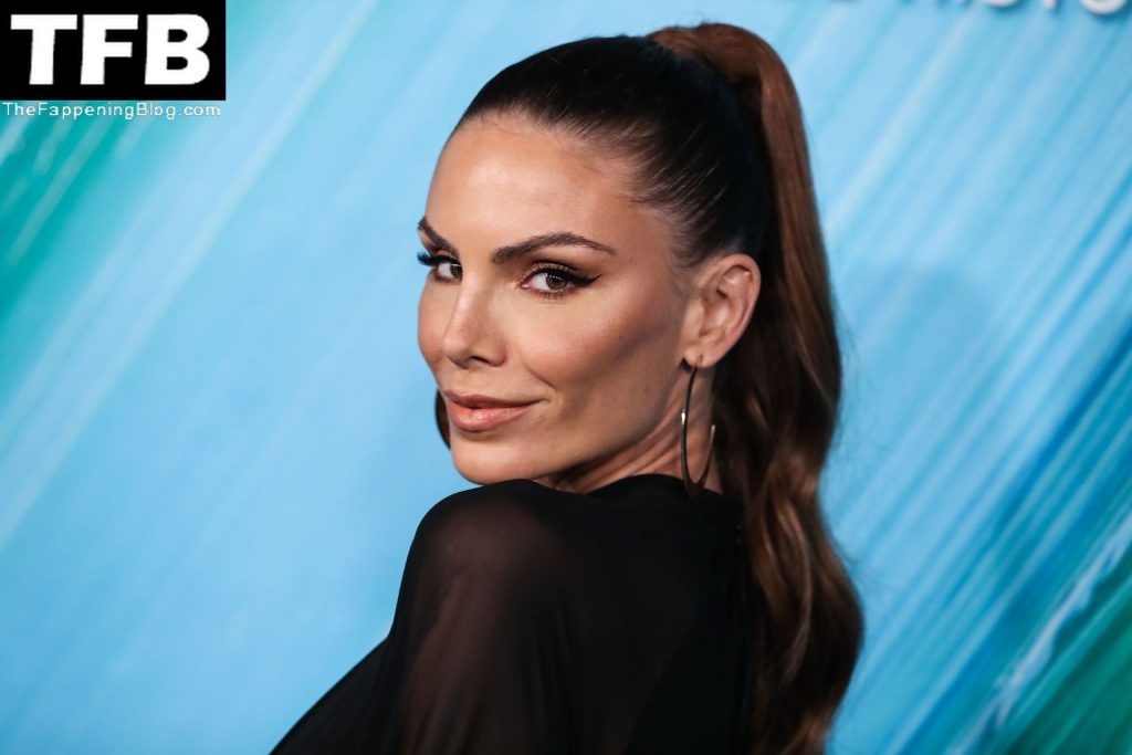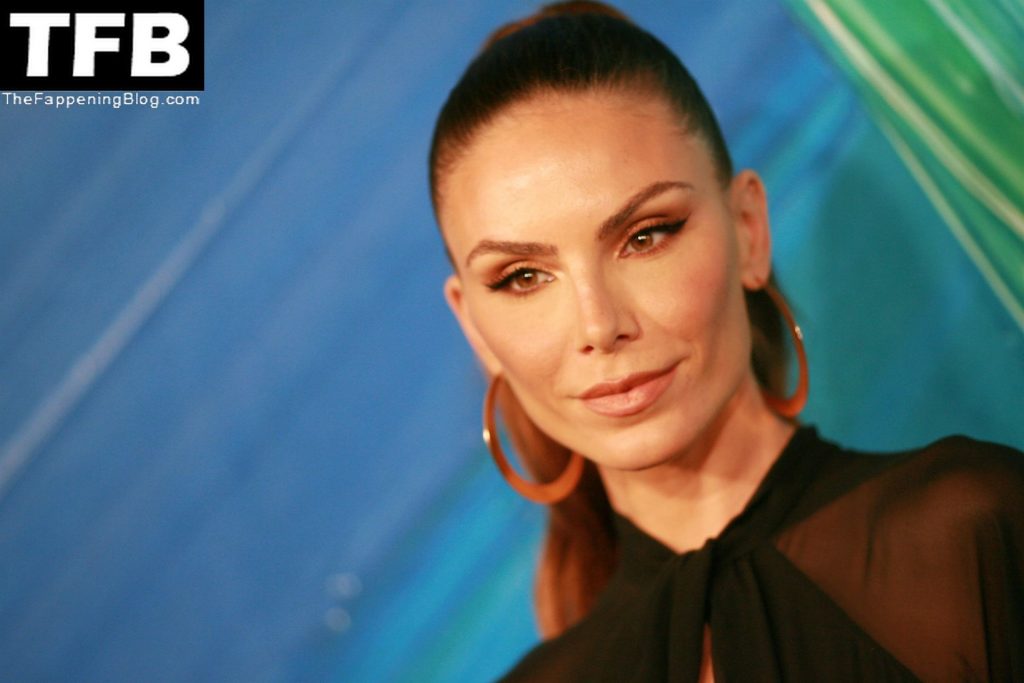 La actriz Nina Senicar posa con un vestido negro transparente en la gala amfAR Los Ángeles 2021 en honor a TikTok y Jeremy Scott, celebrada en el Pacific Design Center en West Hollywood, 11/04/2021.
