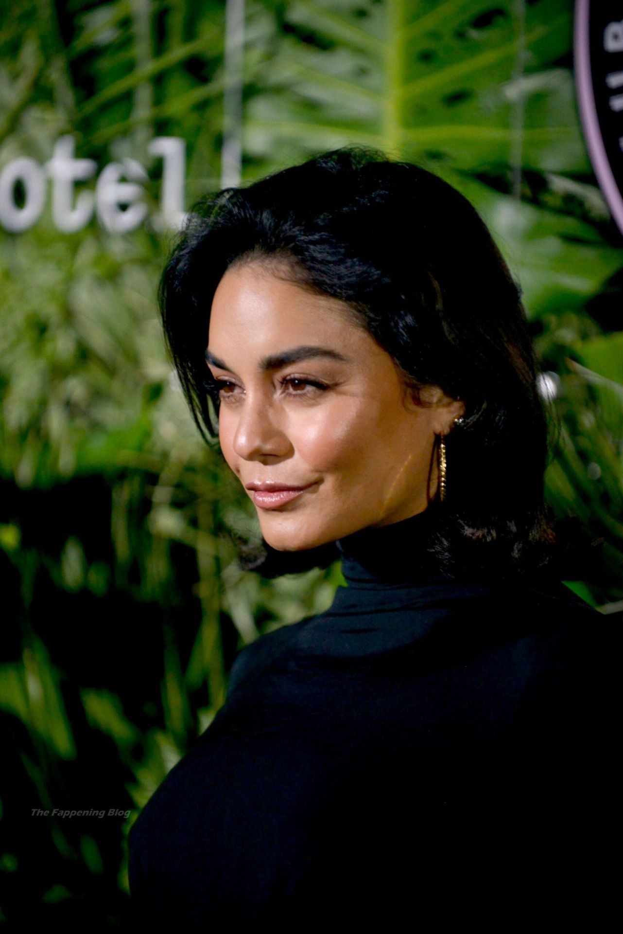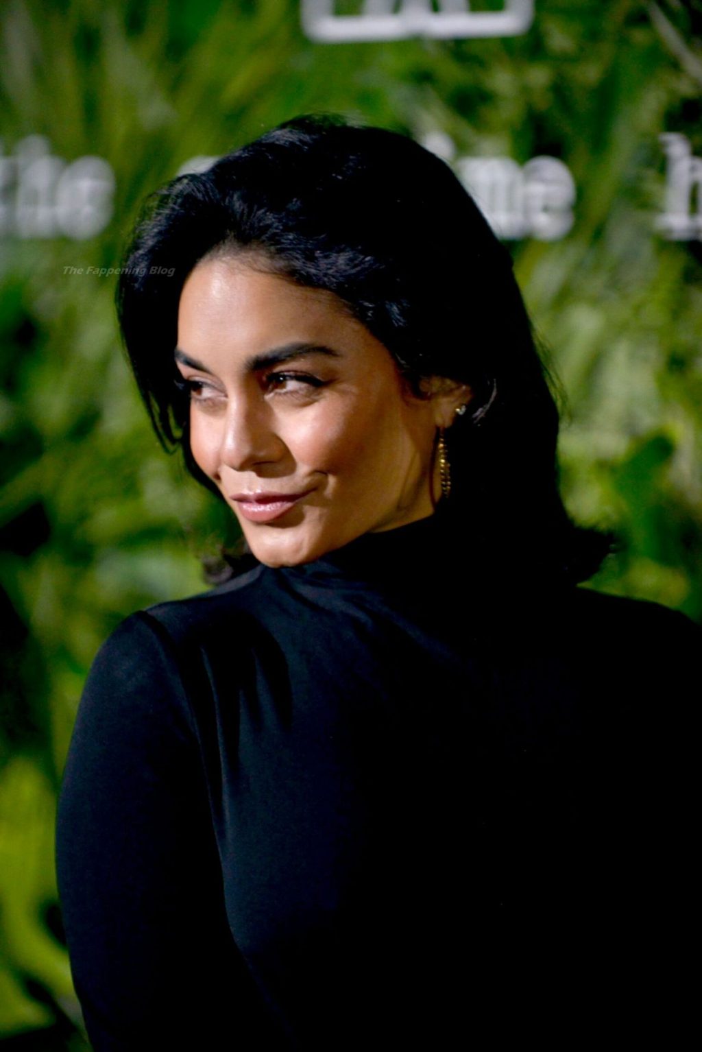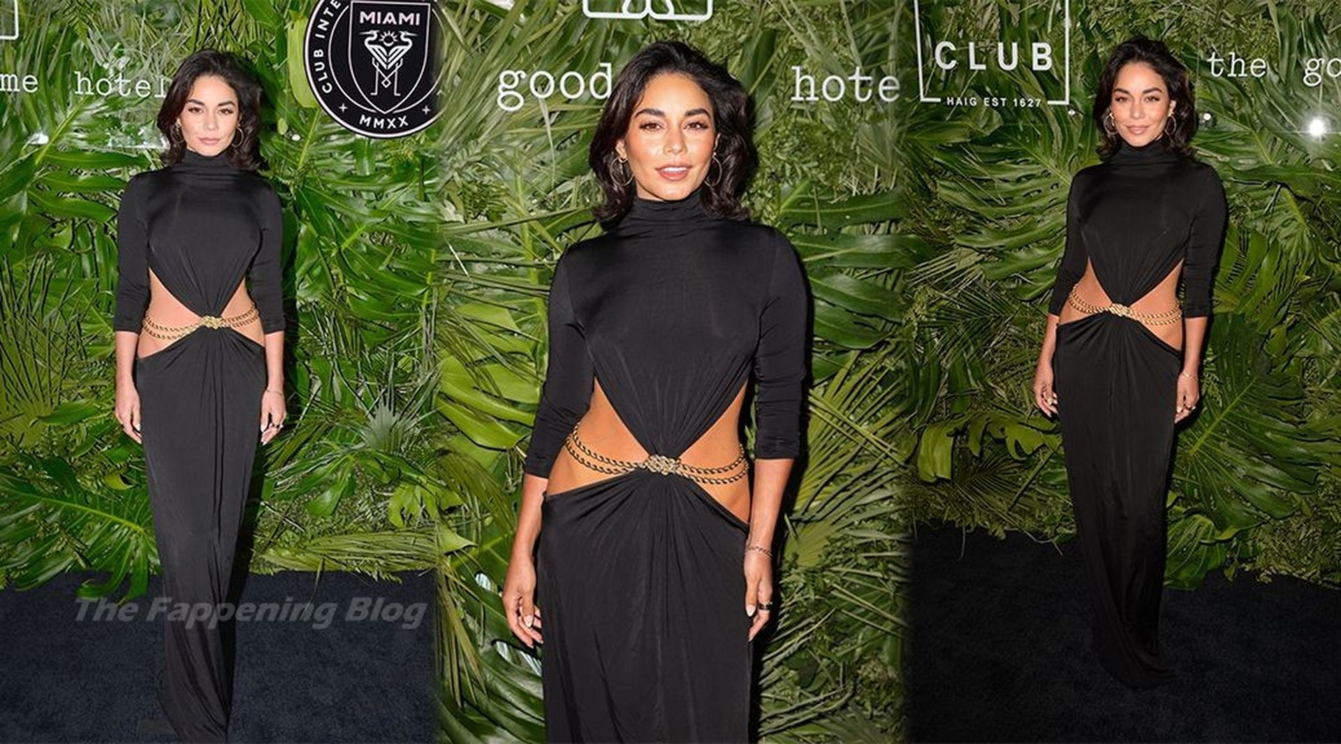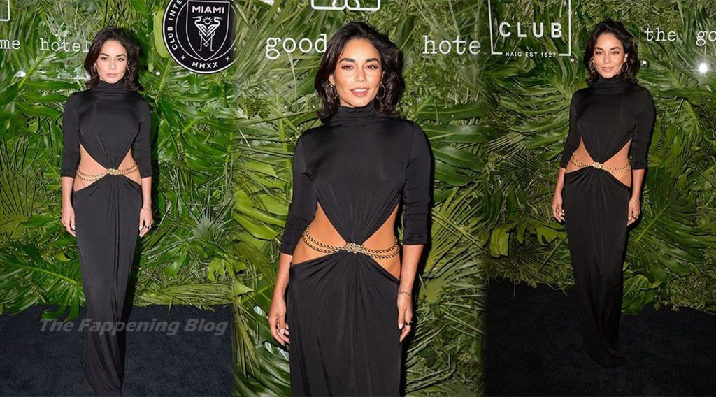 La estrella de The Fappening Vanessa Hudgens se muestra aquí, mostrando su hermosa figura, vistiendo un vestido negro sin sujetador.