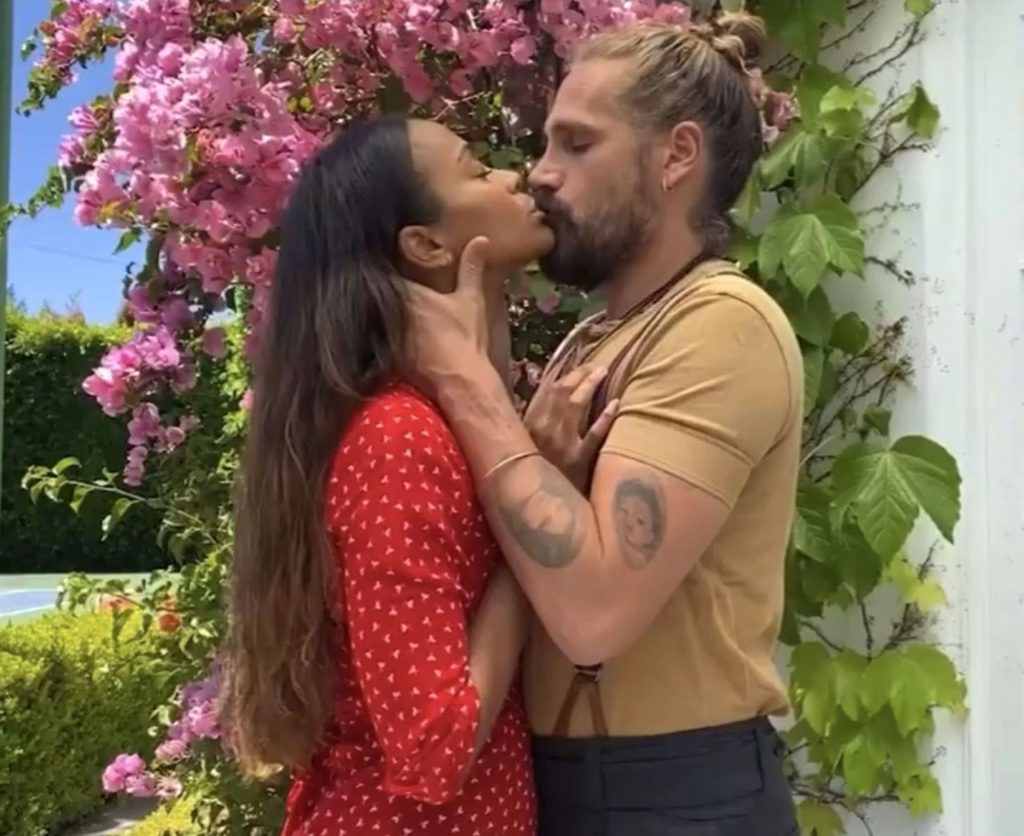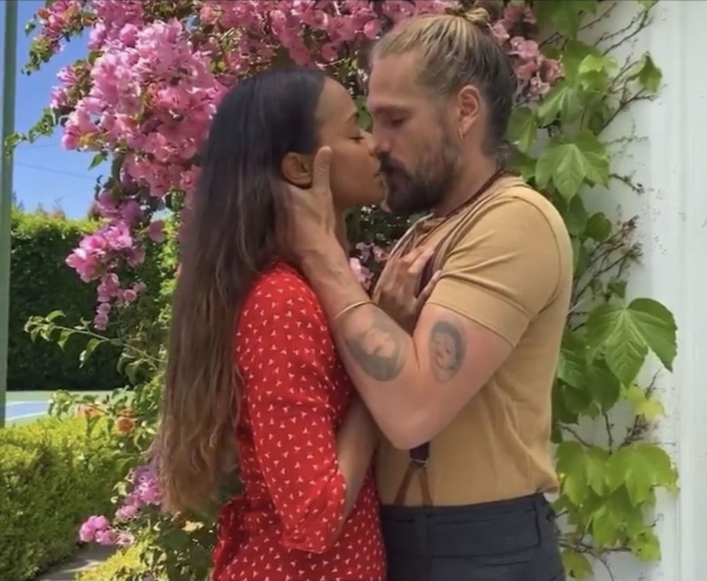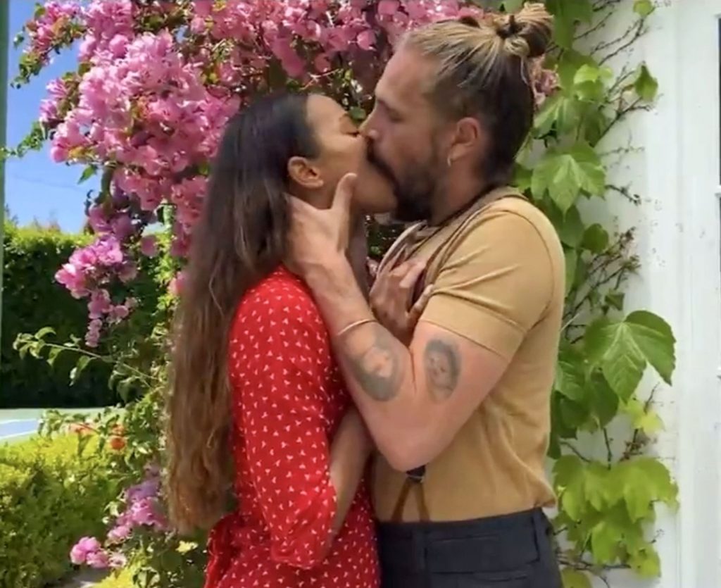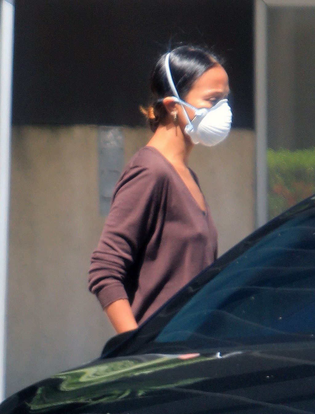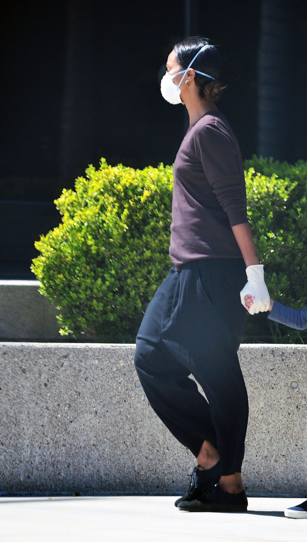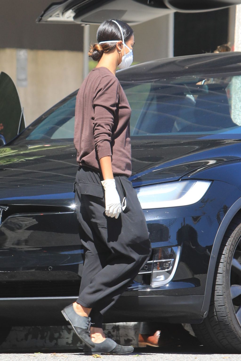 Zoe Saldana y Marco Perego salen en Los Ángeles, 13/05/2020. La actriz de “Avatar” de 41 años llevaba una mascarilla, un suéter burdeos, pantalones holgados y zapatos negros.