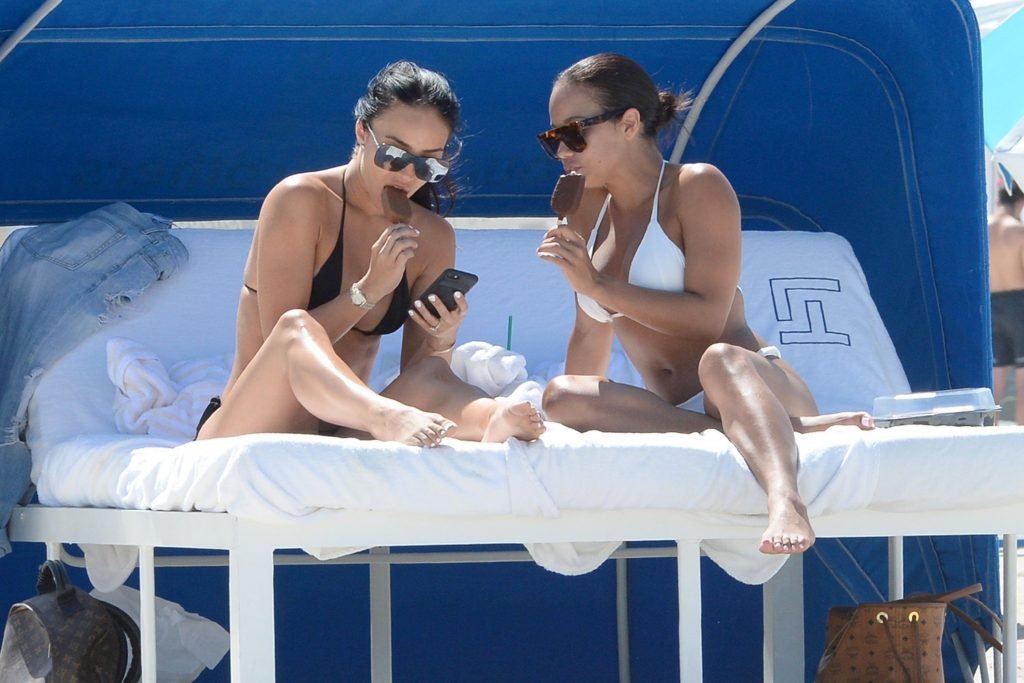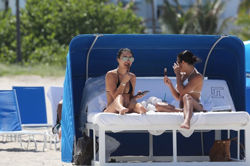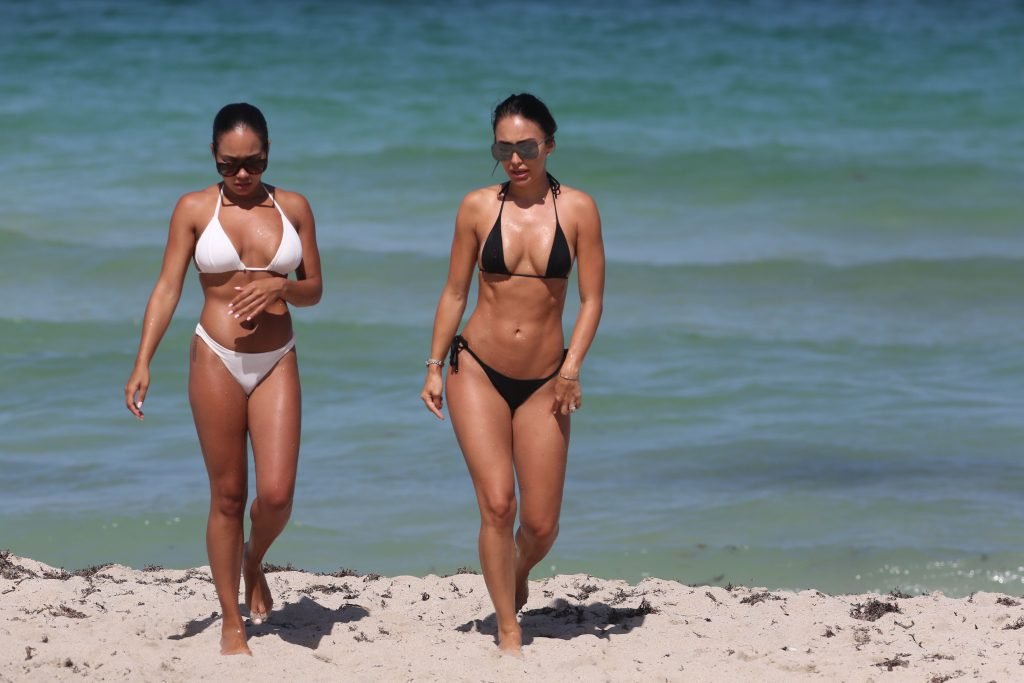 Bre Tiesi, quien está comprometida con la estrella de la NFL Johnny Manziel, plagada de escándalos, mostró su cuerpo en bikini en la playa de Miami, 15/06/2017. Bre Tiesi es una modelo estadounidense. Edad: 26.