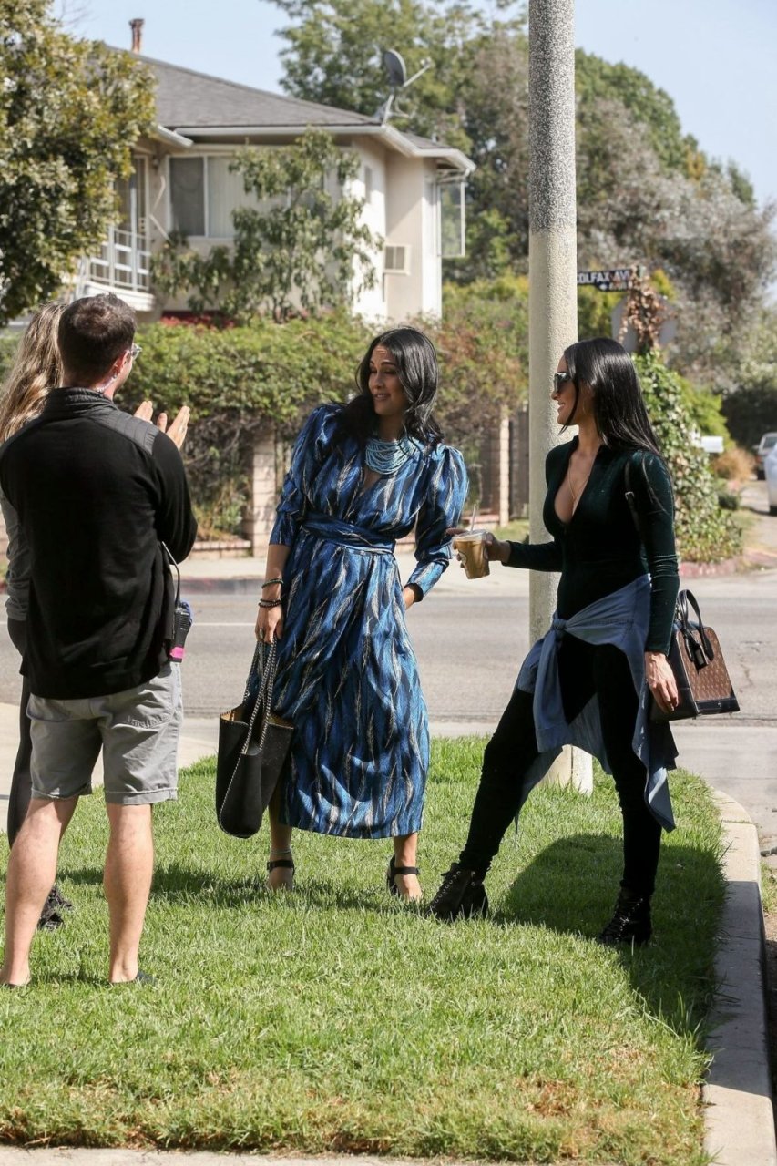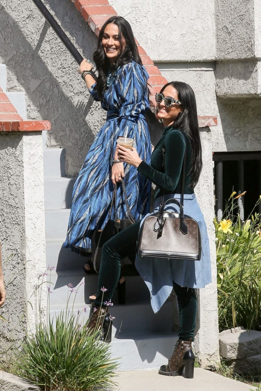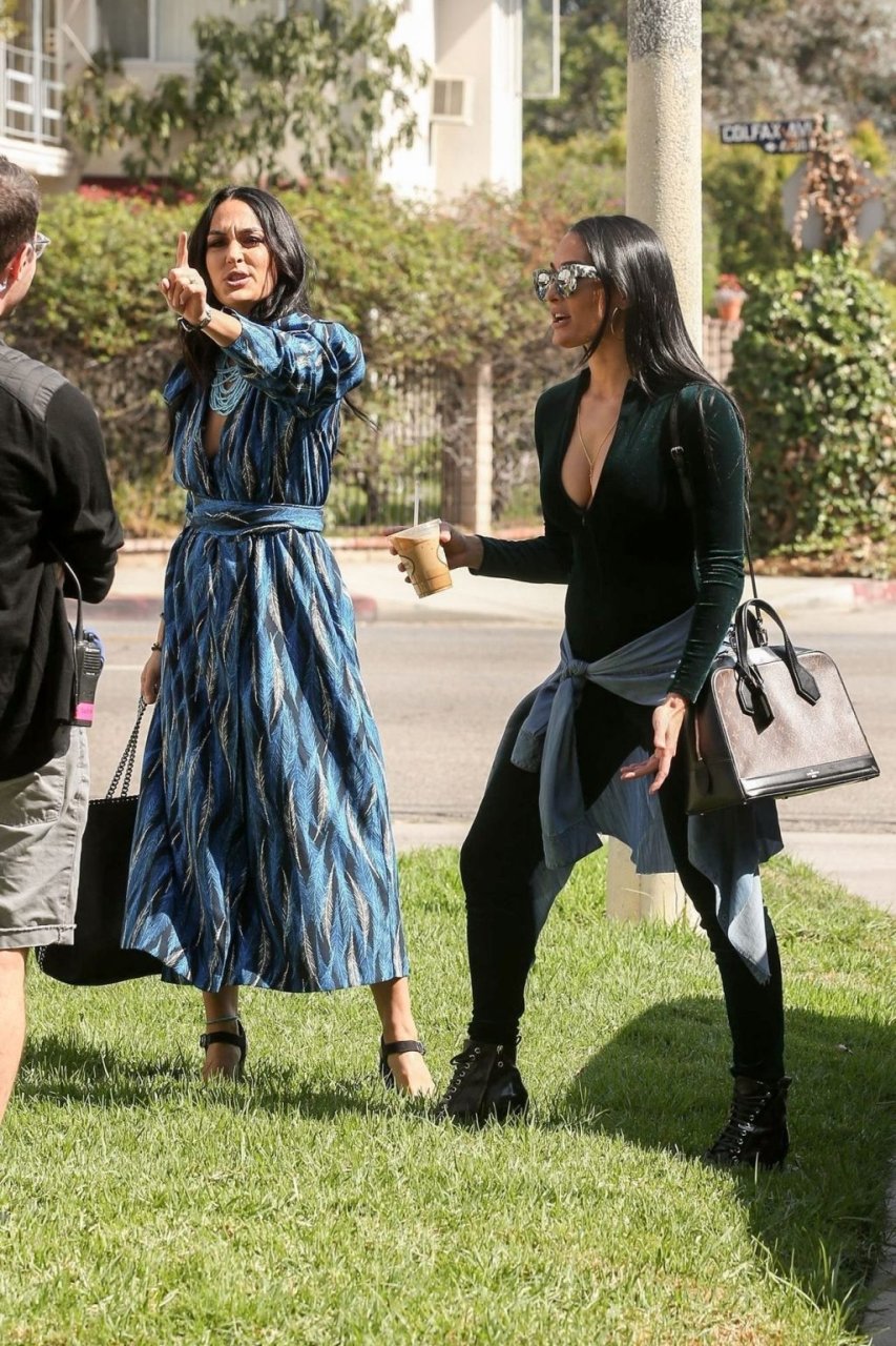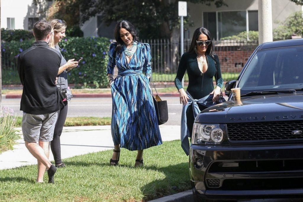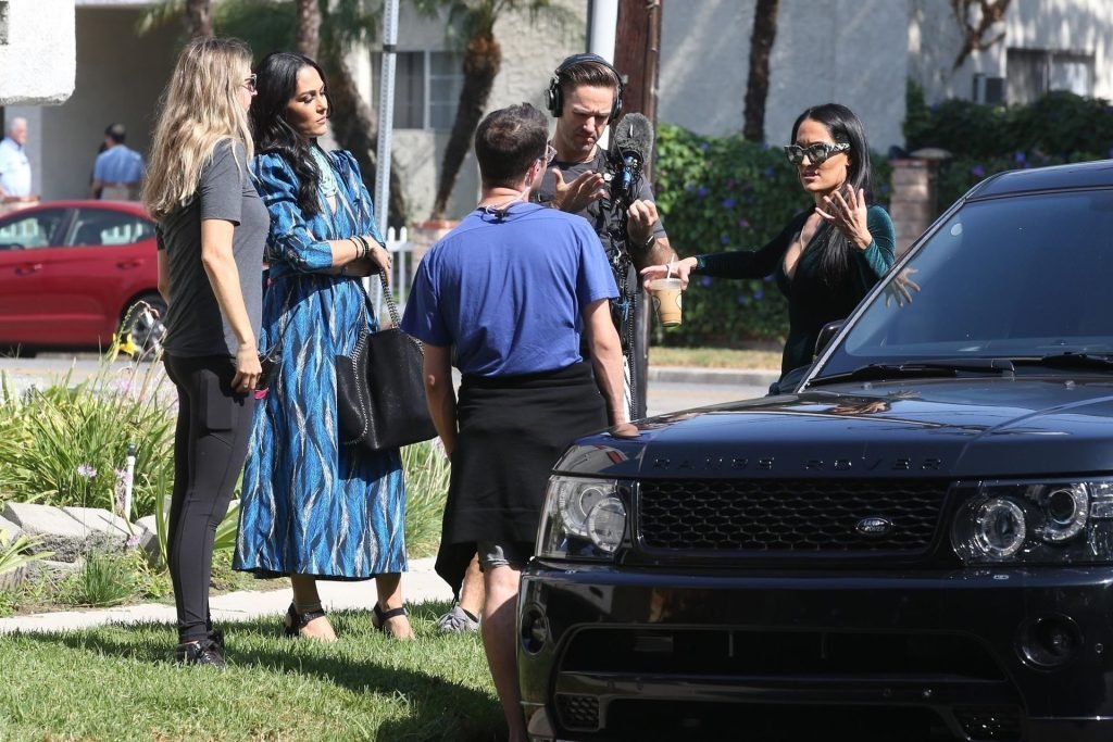 Las hermanas luchadoras profesionales Nikki y Brie Bella llaman la atención mientras graban escenas para su programa de telerrealidad ‘Total Bellas’ en Los Ángeles, 14/10/2019.