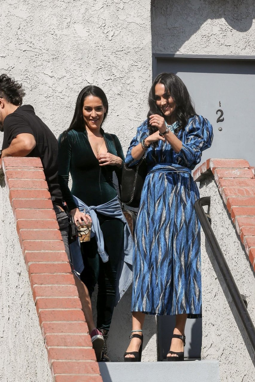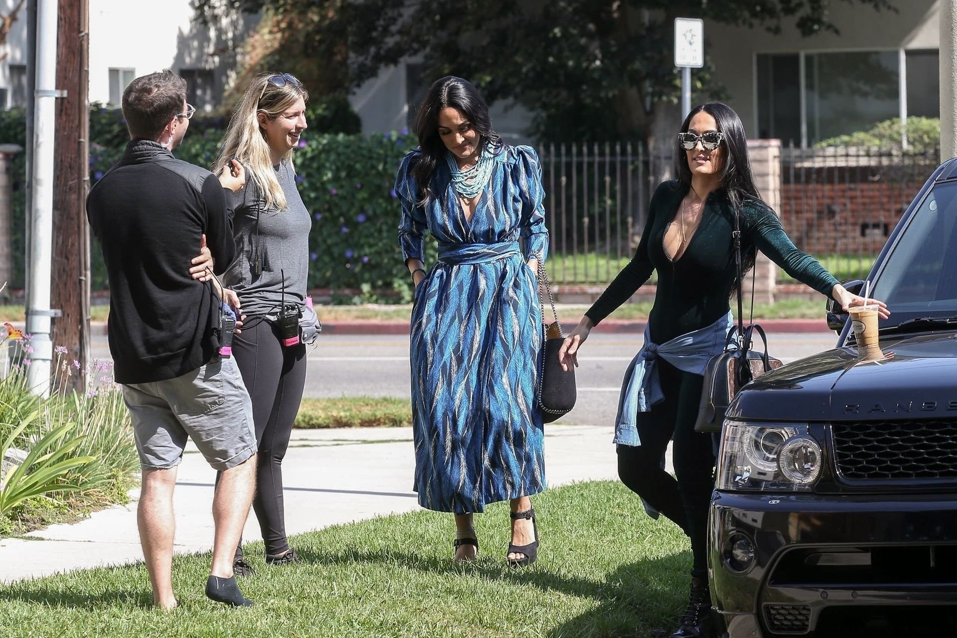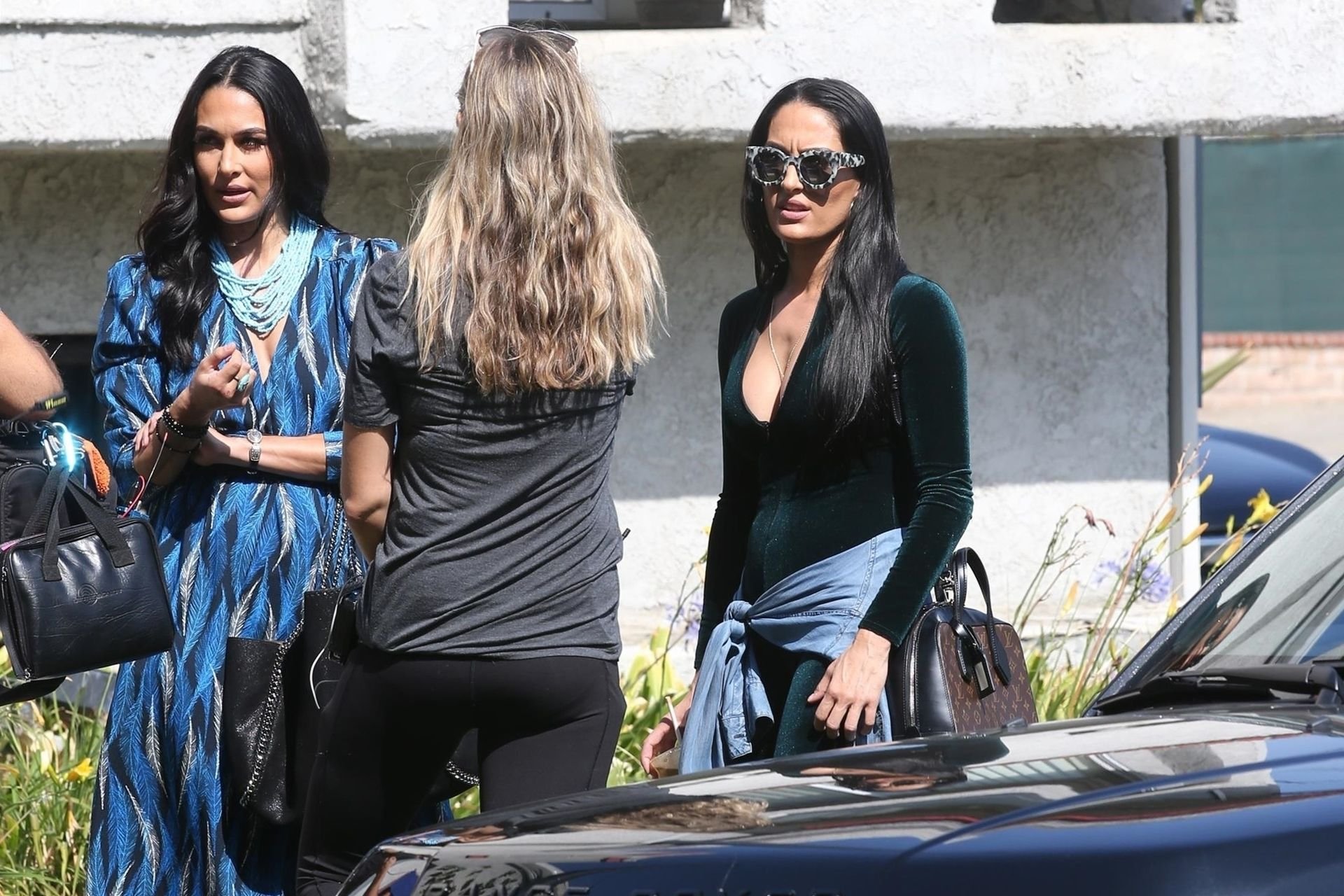 Las hermanas luchadoras profesionales Nikki y Brie Bella llaman la atención mientras graban escenas para su programa de telerrealidad ‘Total Bellas’ en Los Ángeles, 14/10/2019.
