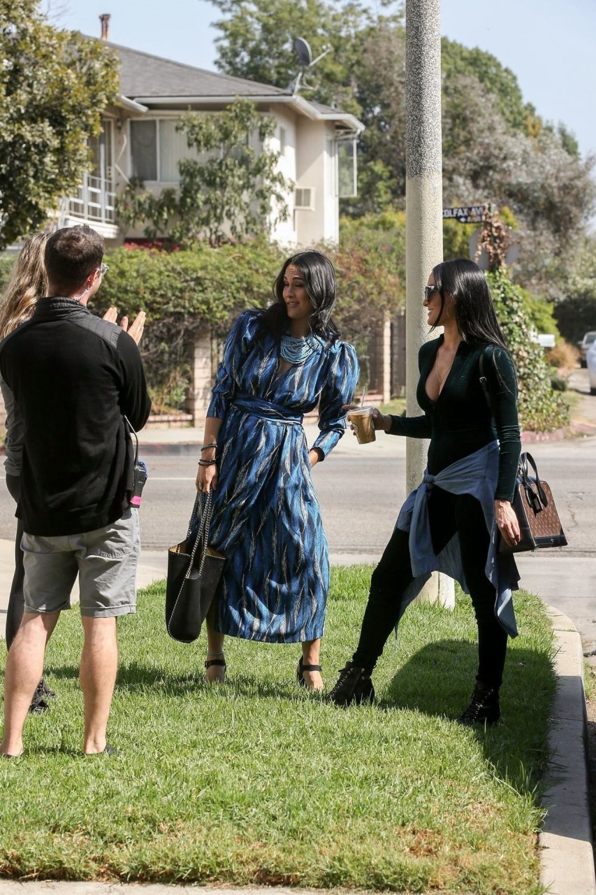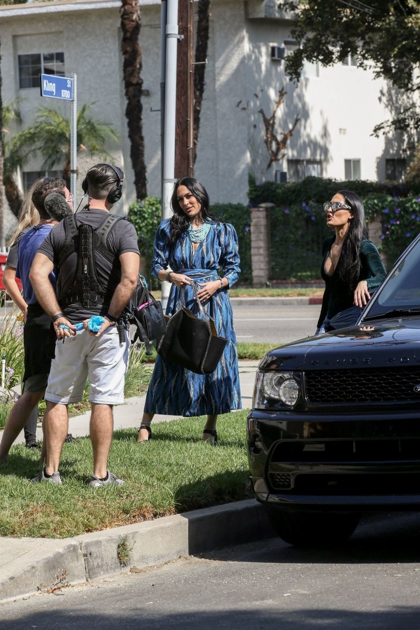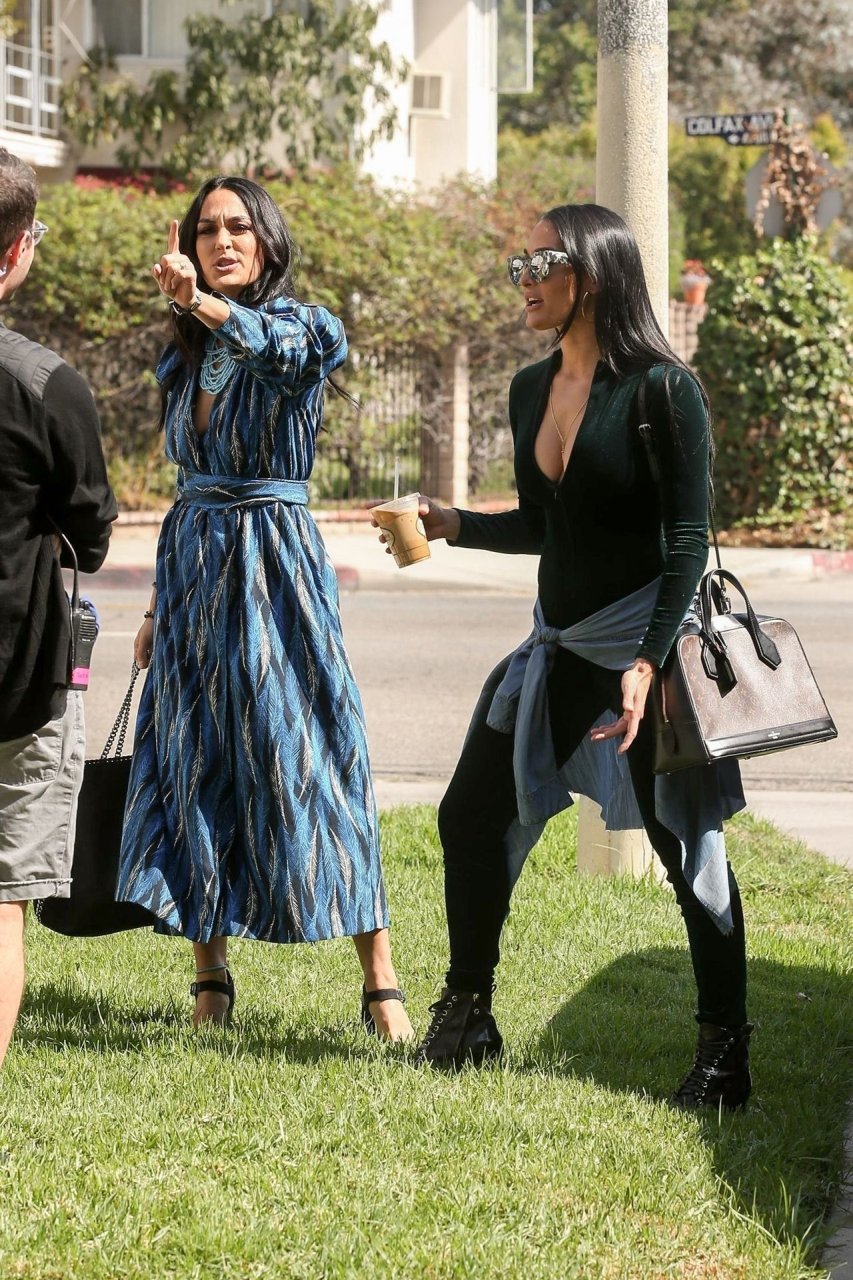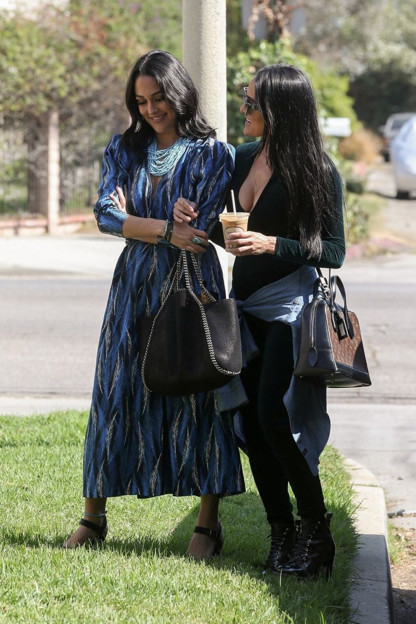 Las hermanas luchadoras profesionales Nikki y Brie Bella llaman la atención mientras graban escenas para su programa de telerrealidad ‘Total Bellas’ en Los Ángeles, 14/10/2019.