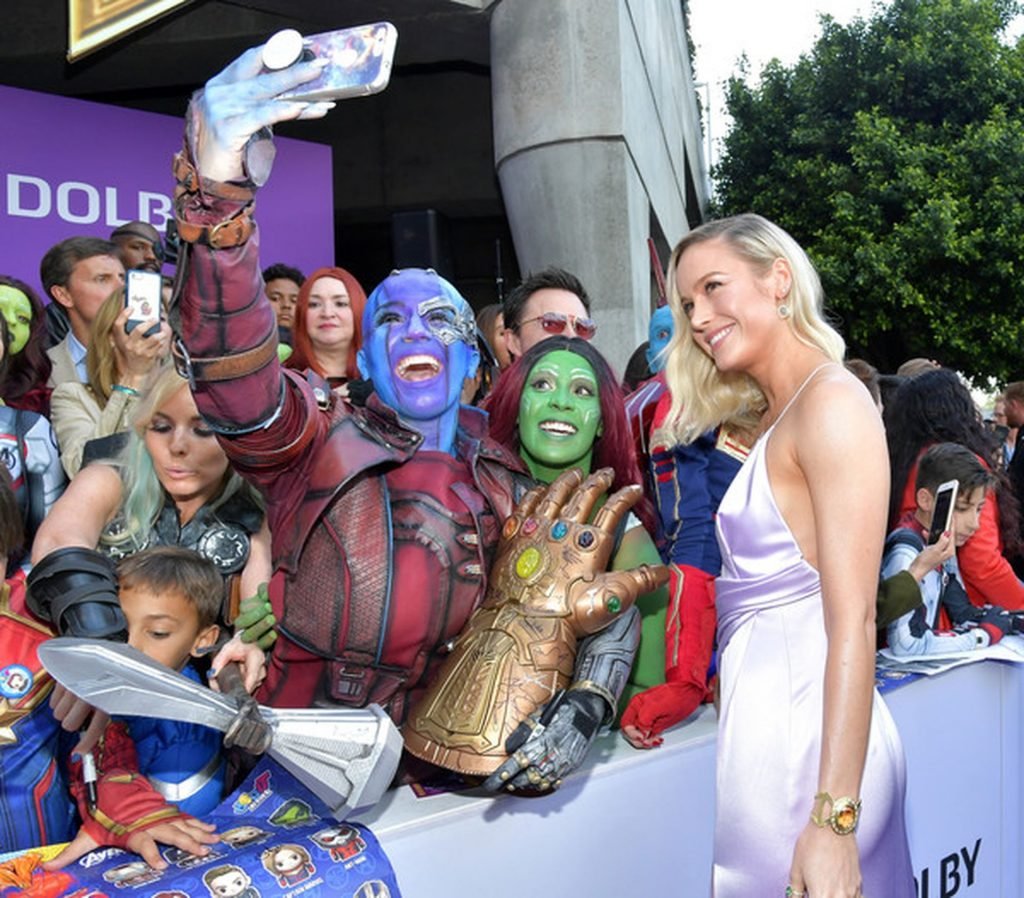 La estrella de The Fappening, la actriz Brie Larson, fue vista en el estreno de “Avengers: Endgame” en Los Ángeles, 22/04/2019. Para el evento eligió un vestido clásico de Celine en tonos violetas.