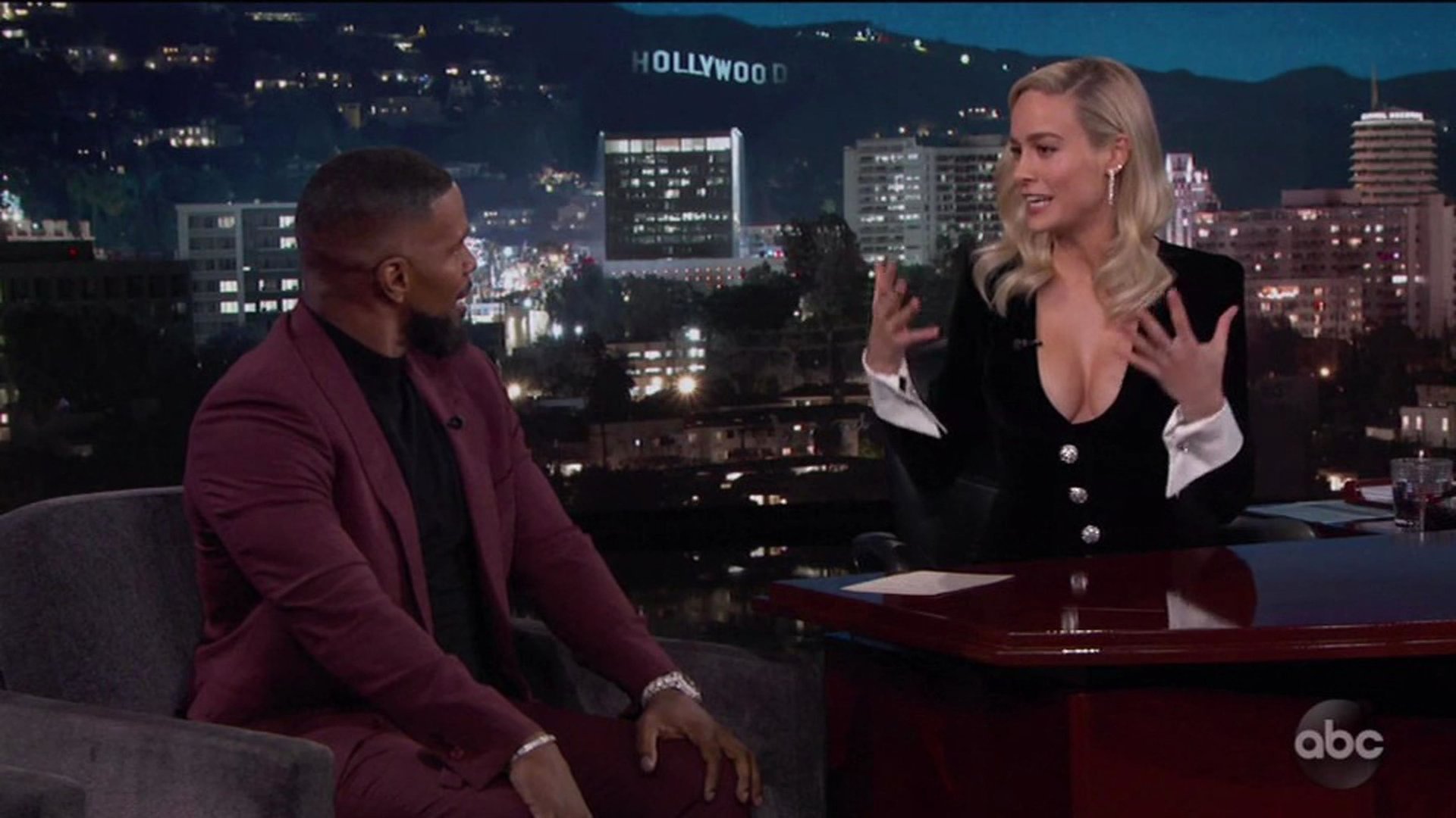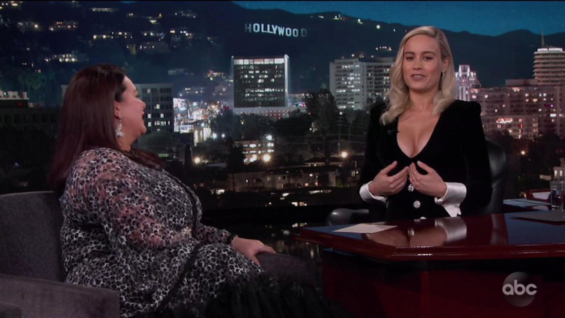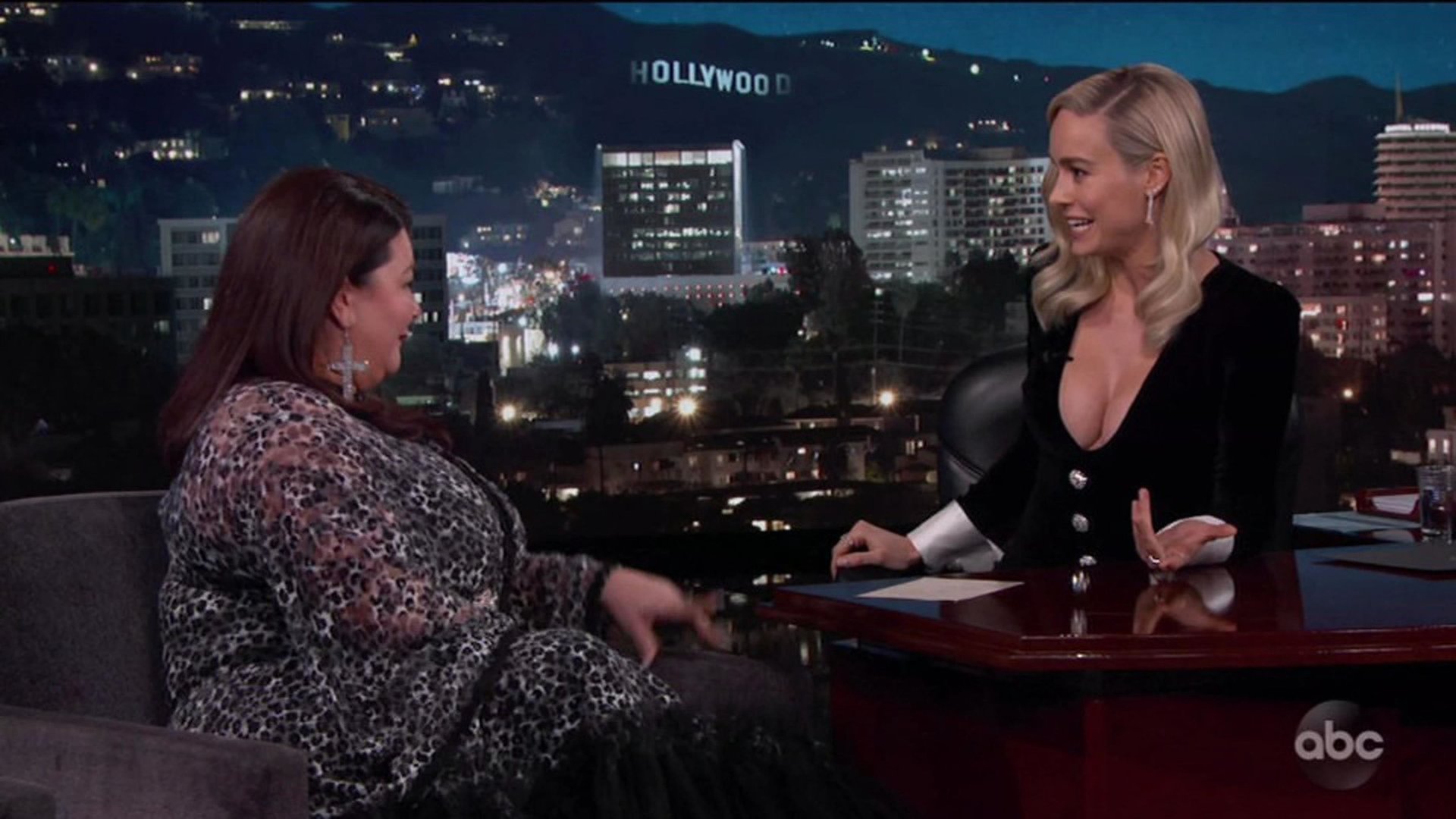 Molly confirmó que ese era su superpoder, lo que llevó a Brie a señalar su vestido y bromear: “¡Te lo puse muy fácil! ¡Aquí tienes!” Molly entonces le dijo: “Eres una 30F, que es de triple D a G, pero no es lo que compras.” Una sorprendida Brie respondió: “¡No compro eso!” Molly añadió: “Compras como 34Ds,” a lo que Brie respondió: “¡Santo cielo!” Molly luego le preguntó: “¿Eso es lo que compras?” y la estrella confirmó: “¡Sí!” Después de que Molly se quejara de que “nadie en América sabe las tallas de sujetador”, Brie sacó una foto de Taylor Swift en la nueva película Cats y dijo: “Tengo una pregunta difícil para ti. ¿Cuál es la talla de sujetador de esta?” Molly respondió riendo: “Ella es un poco más pequeña, es una D.” Brie, que se había burlado de la nueva película Cats en el monólogo de apertura del programa, preguntó: “¿Estás teniendo en cuenta el pelaje?” a lo que Molly dijo: “Oh sí.” También en el programa Brie entrevistó a su compañero de Just Mercy Jamie Foxx, quien también comentó sobre su apariencia, diciéndole: “¡Te ves increíble, eres hermosa!”